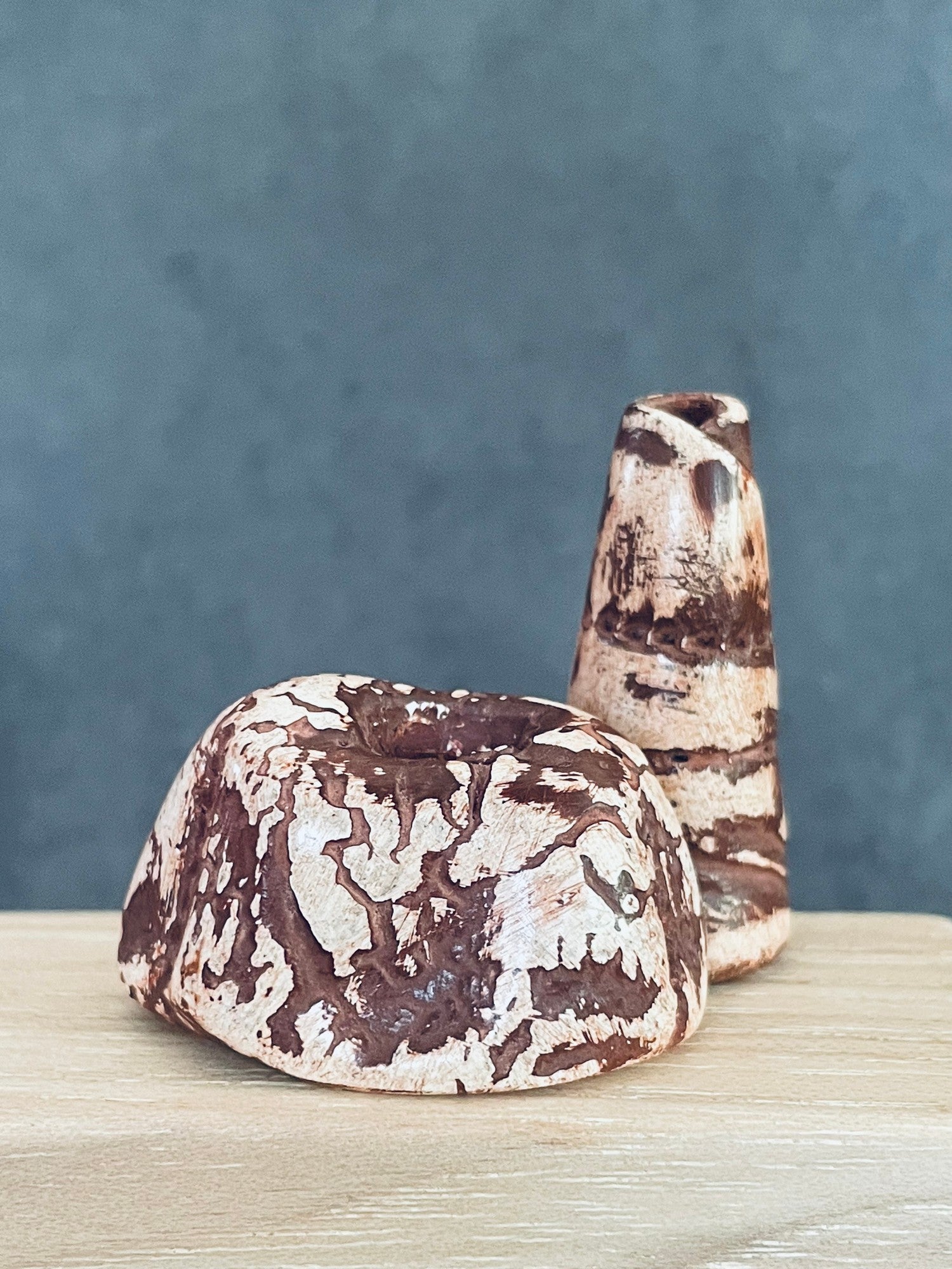 Each vase is handmade and truly one of a kind. Featuring organic, rustic shapes and subtle details inspired by Wabi-Sabi design, these pieces bring natural beauty and character to any room. Display a single vase as a striking accent, or curate a collection to create an artful statement.