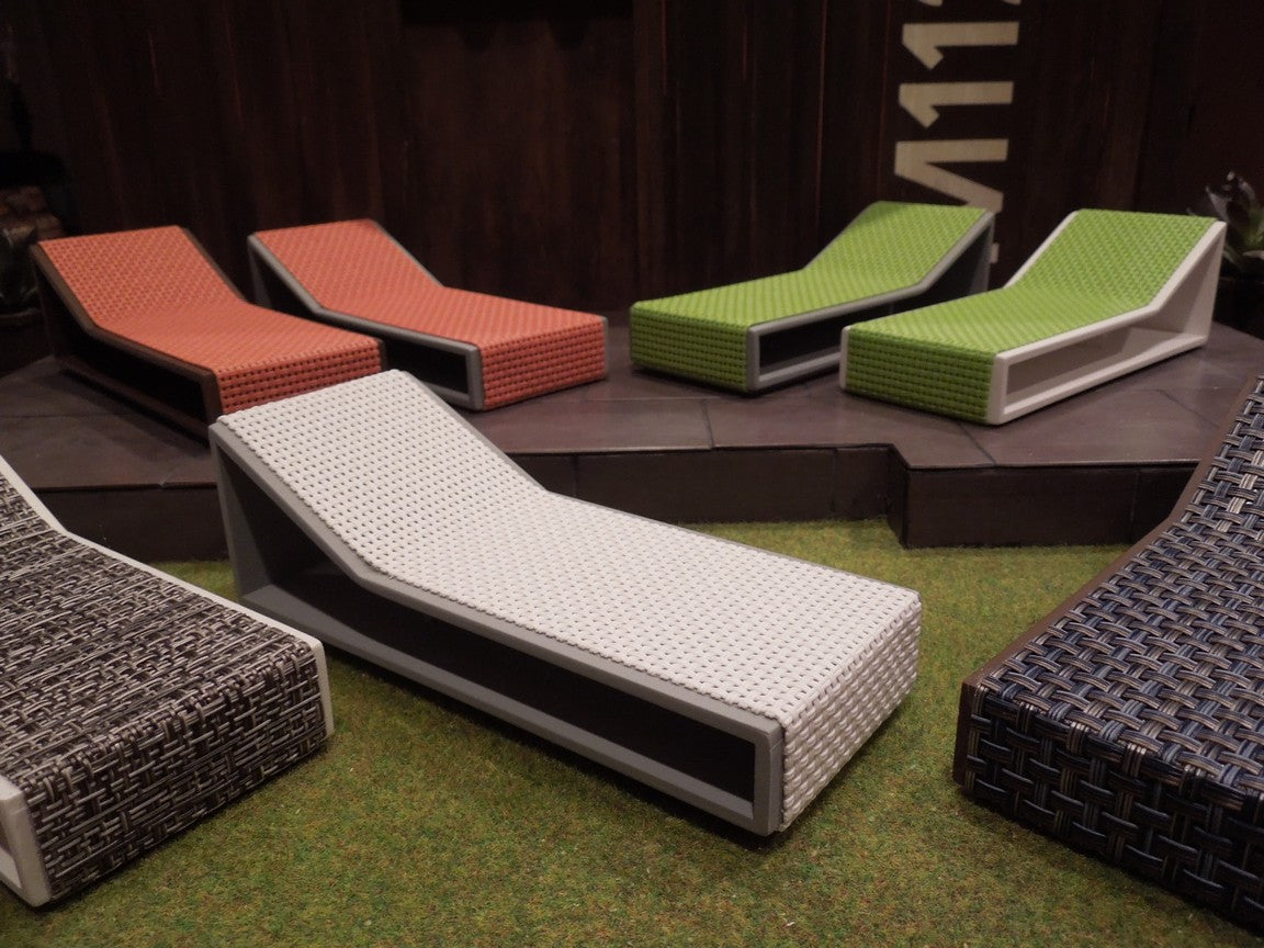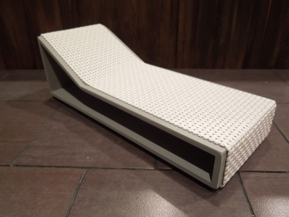 The Aero chaise is constructed of a plastic frame that is open with a woven mesh covering creating a modern and airy feel (NOTE: The back is not adjustable)