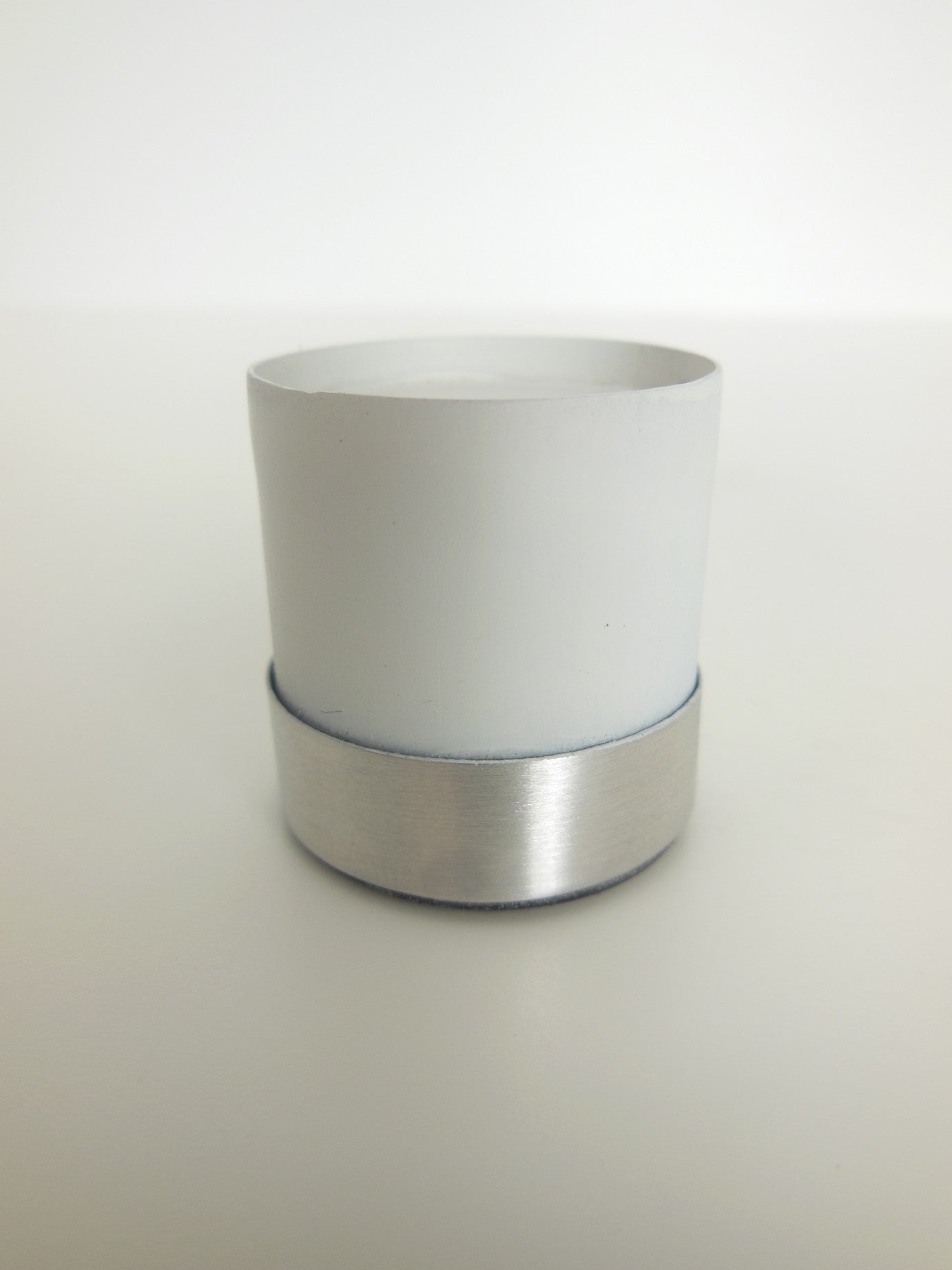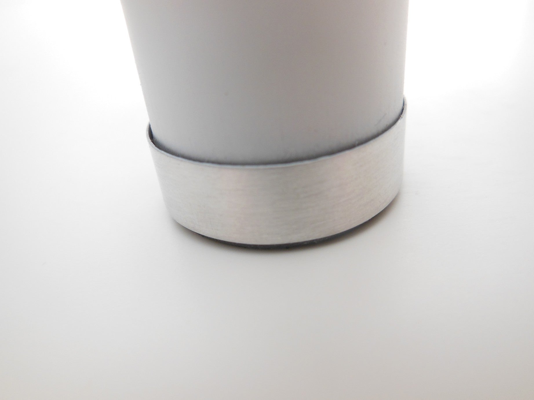 Modern table lamp has a base plate made of stainless steel with a frosted glass cylindrical shade and diffuser on top. (NOTE: This lamp is NOT electrified. If you would like this lamp to have a working light, please Contact Us for more information and pricing.)