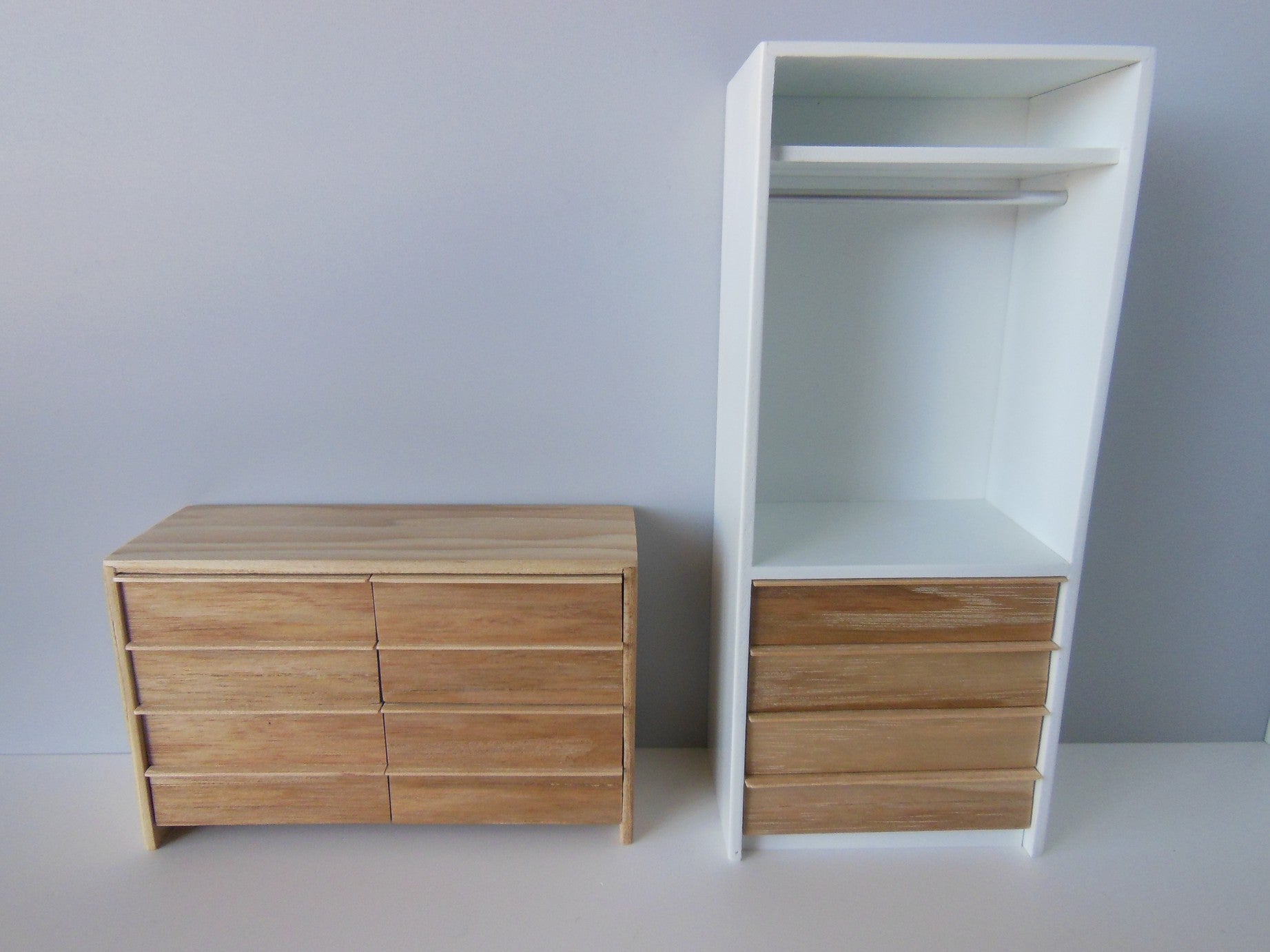 Made of solid wood, each of the drawer fronts are carefully selected for their grain pattern. No two are exactly the same, but I come as close as I can to the original picture. Drawers do not open.