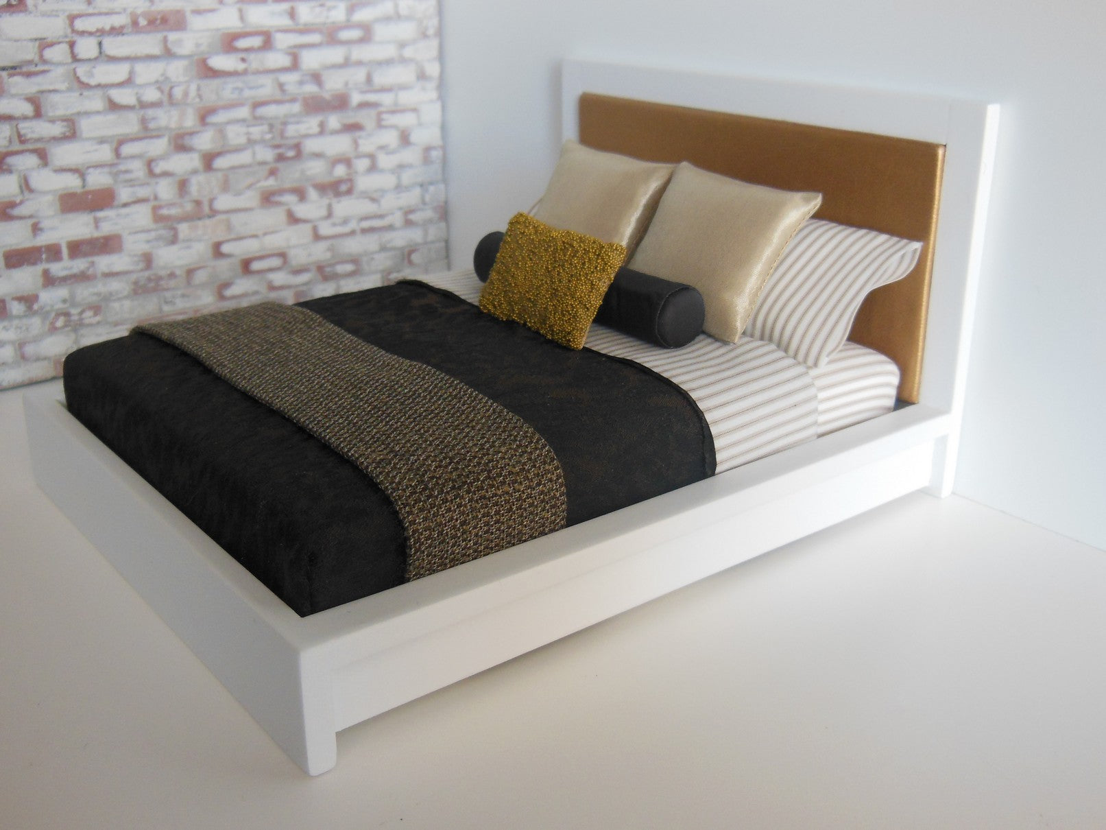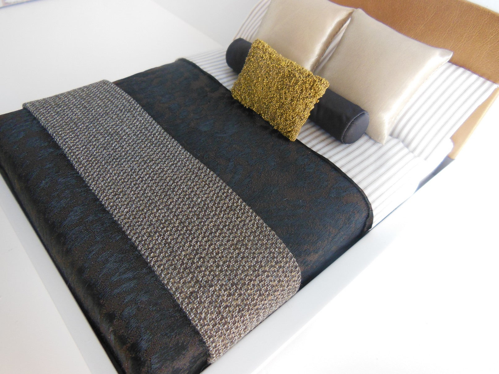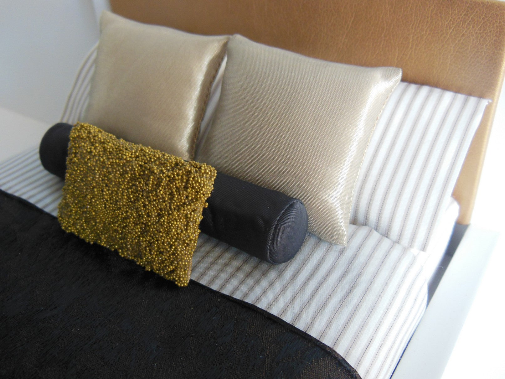 Our Bali Collection includes our umber duvet, cream stripe sheet set, two gold large square pillows, one large smoke bolster, one small gold beaded rectangle pillow, and coffee throw. Mattress, standard pillows and bed frame sold separately.