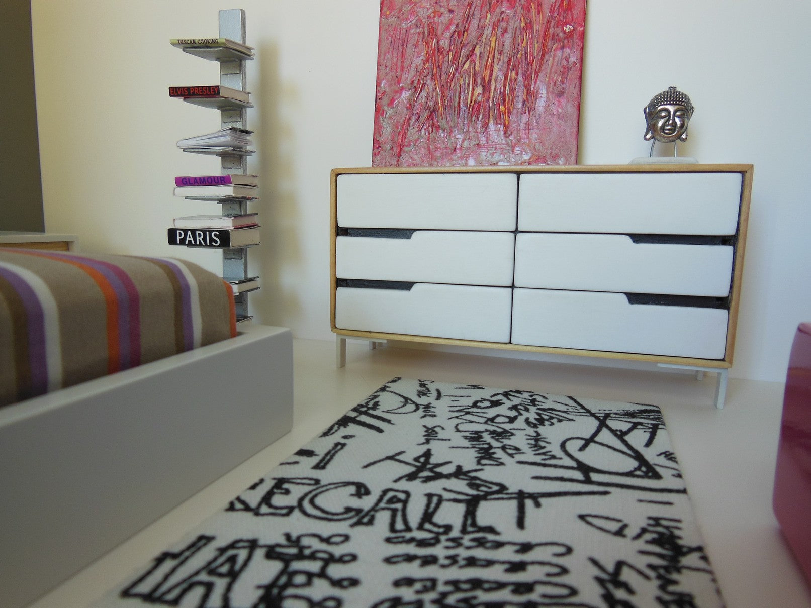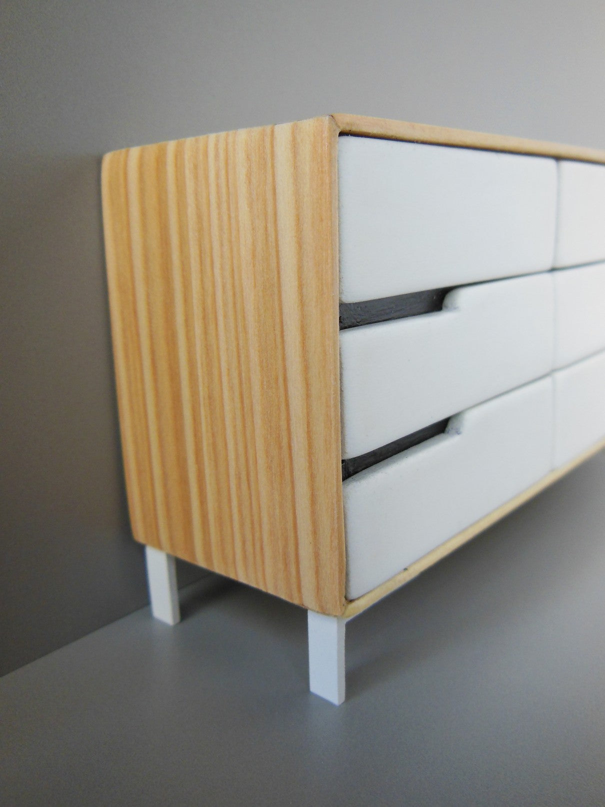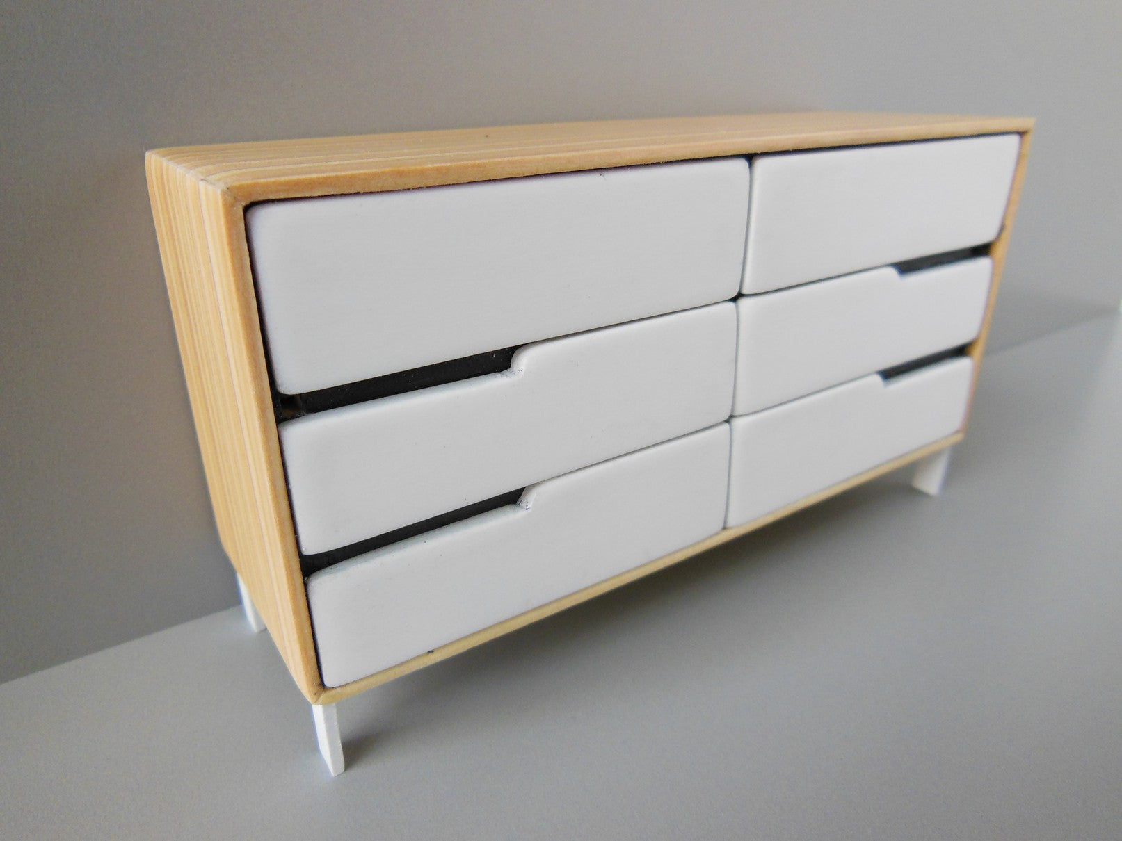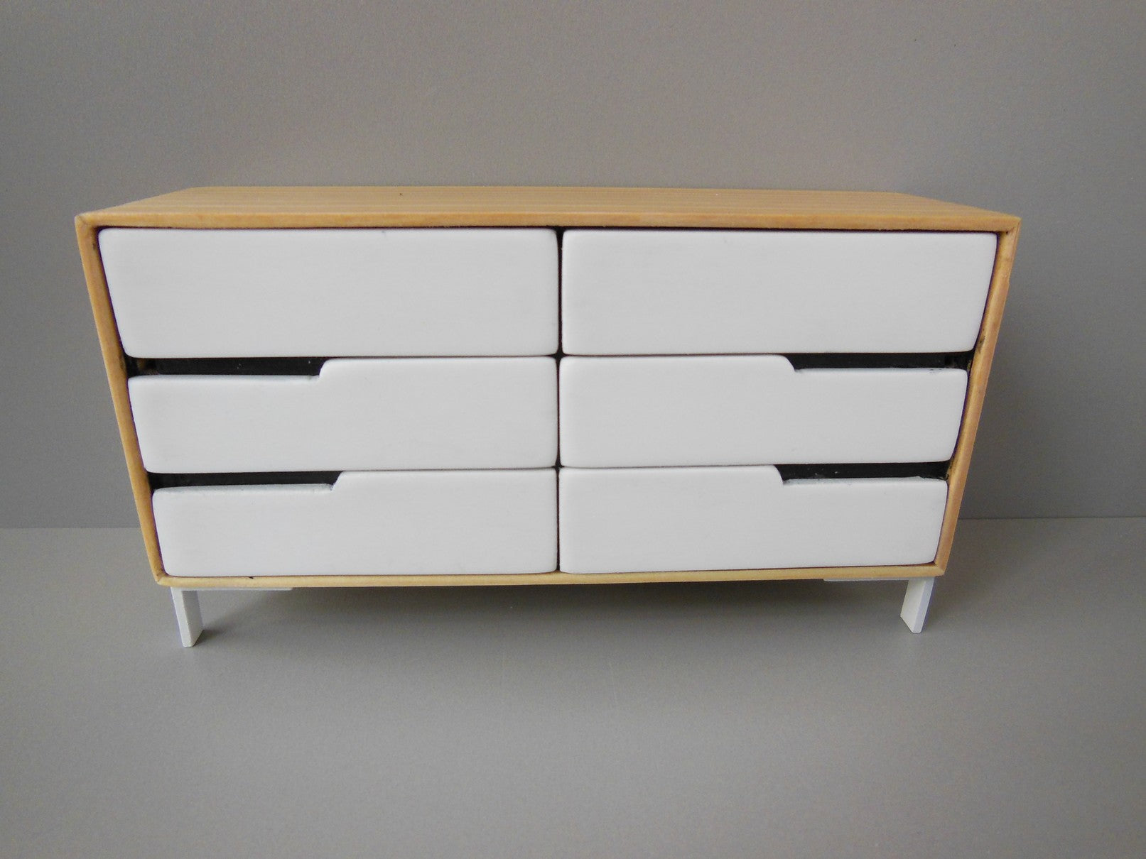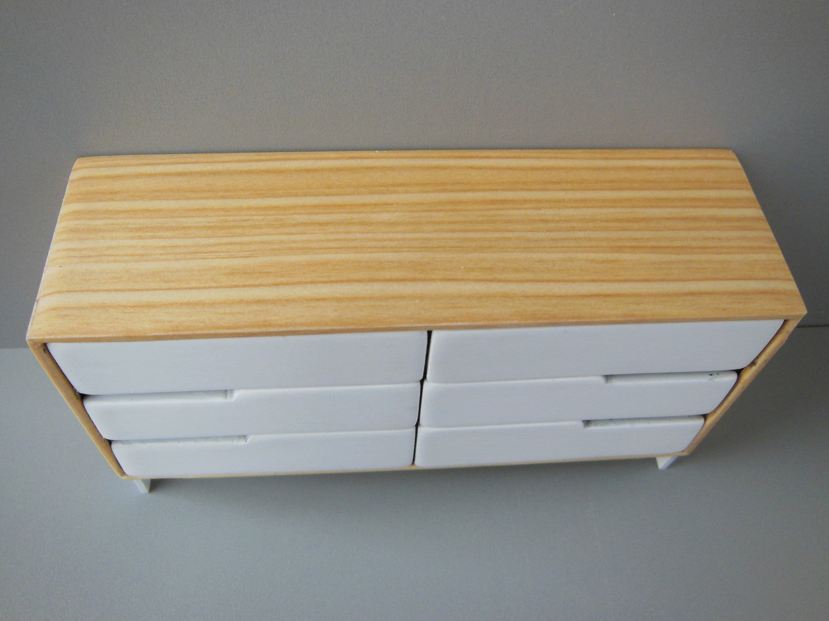 The modern Beech Dresser has a wood surround with 6 White drawer fronts. NOTE: Drawers DO NOT open.