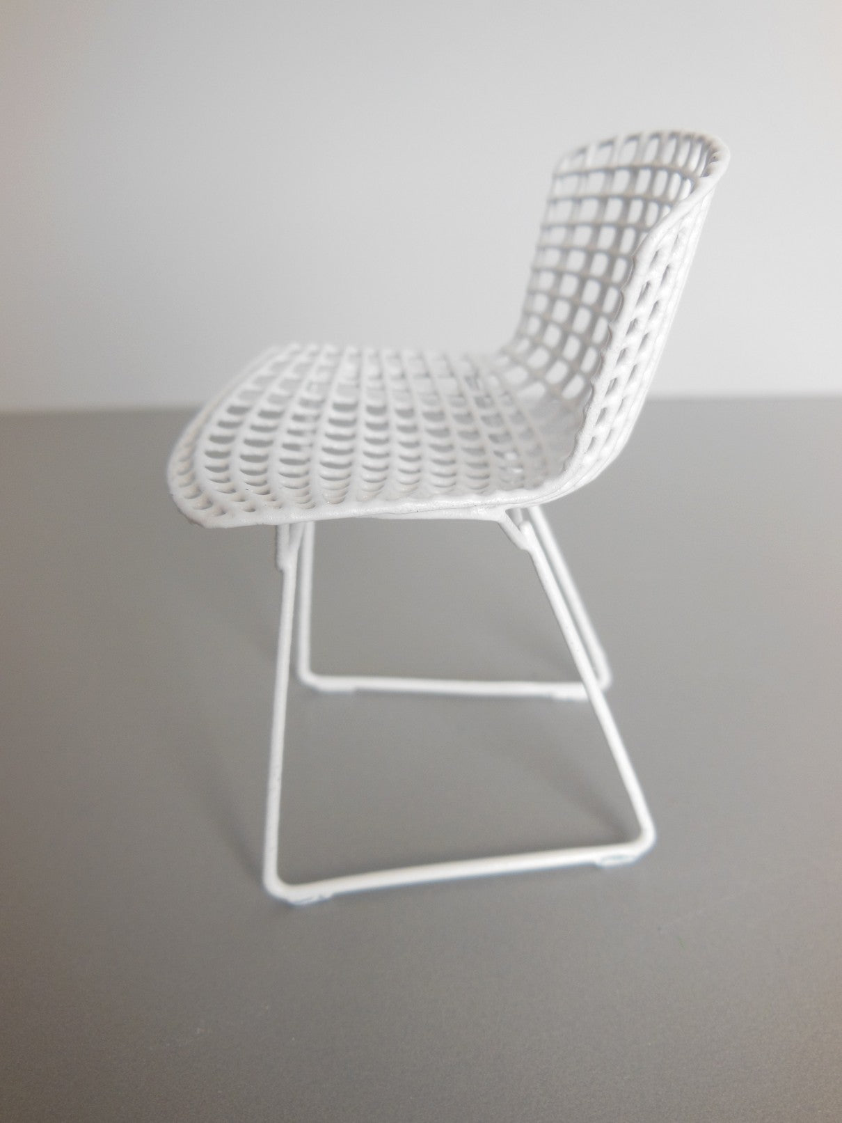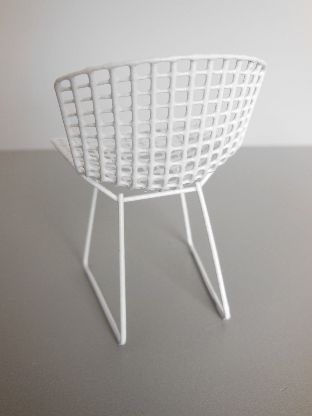The classic wire chair design by Harry Bertoia is now available in miniature as a high-quality 3D print.
