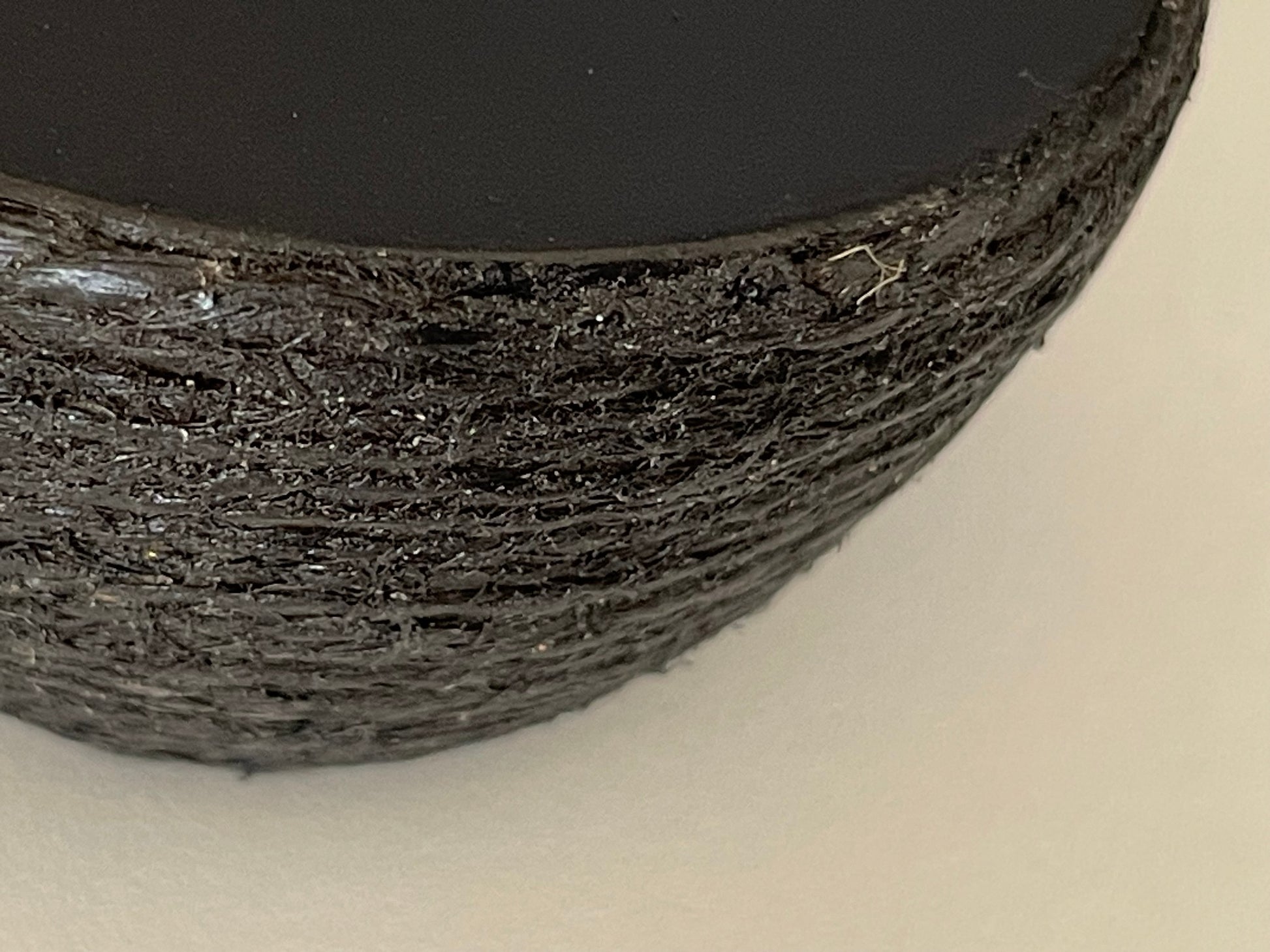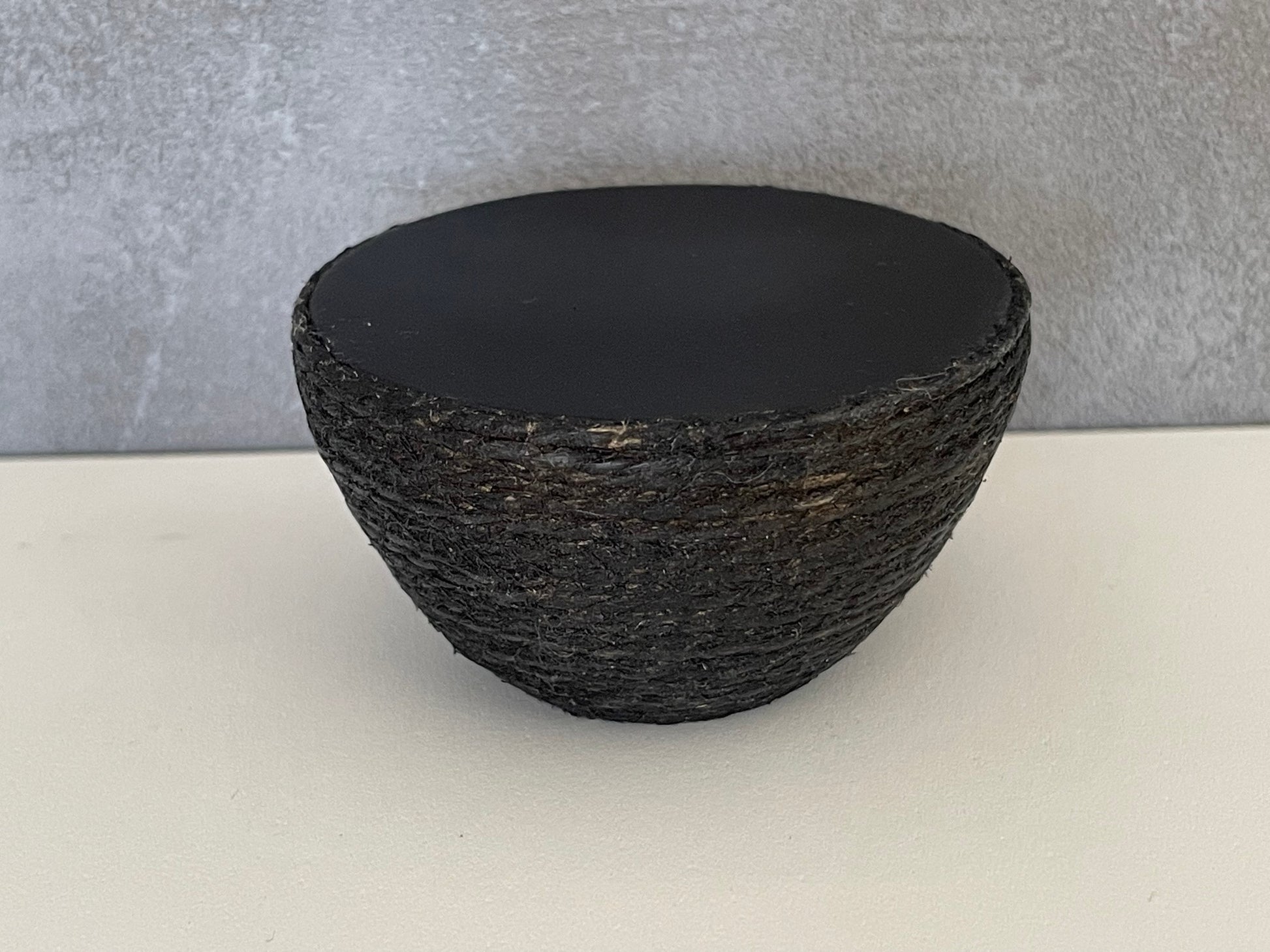 This round black accent side table has a tapered base that is wrapped in a jute twine material with a smooth black finish top. The perfect addition to add a natural texture to your room setting.