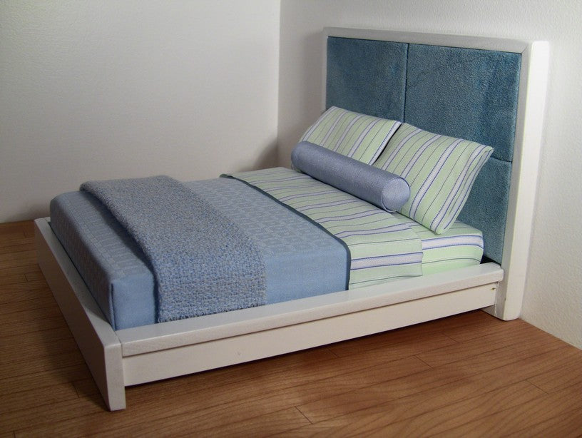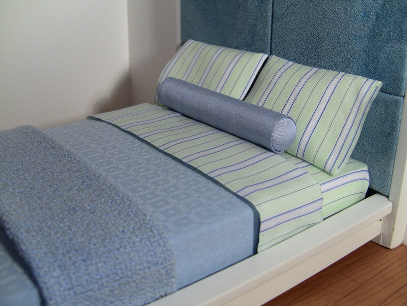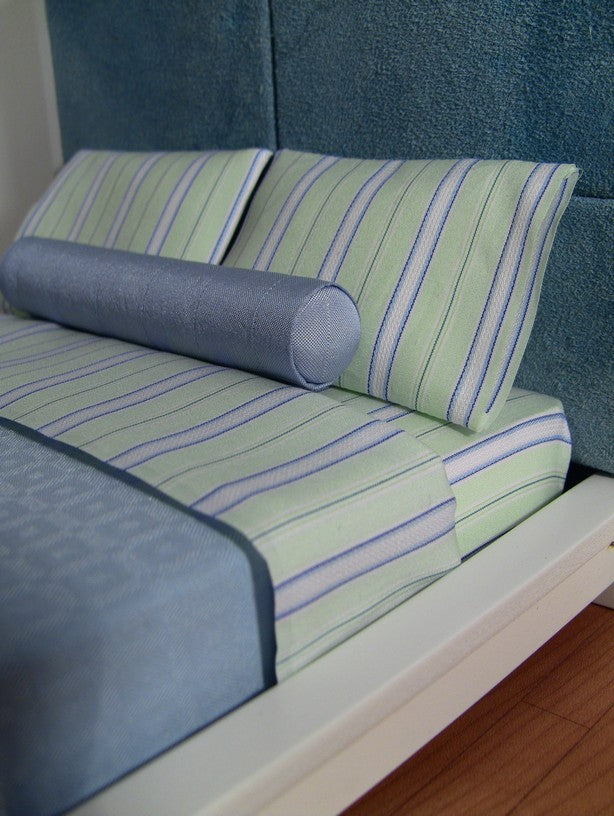 Inspired by the soothing colors of a tranquil spa our Bliss Collection includes our light blue check duvet, fern stripe sheet set, light blue long bolster pillow and basketweave blue throw. Mattress, standard pillows and bed frame sold separately.
