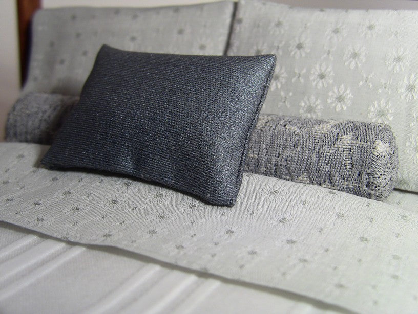 The Blue / Cream Long Bolster Pillow is constructed of a blue floral print on a cream background fabric.