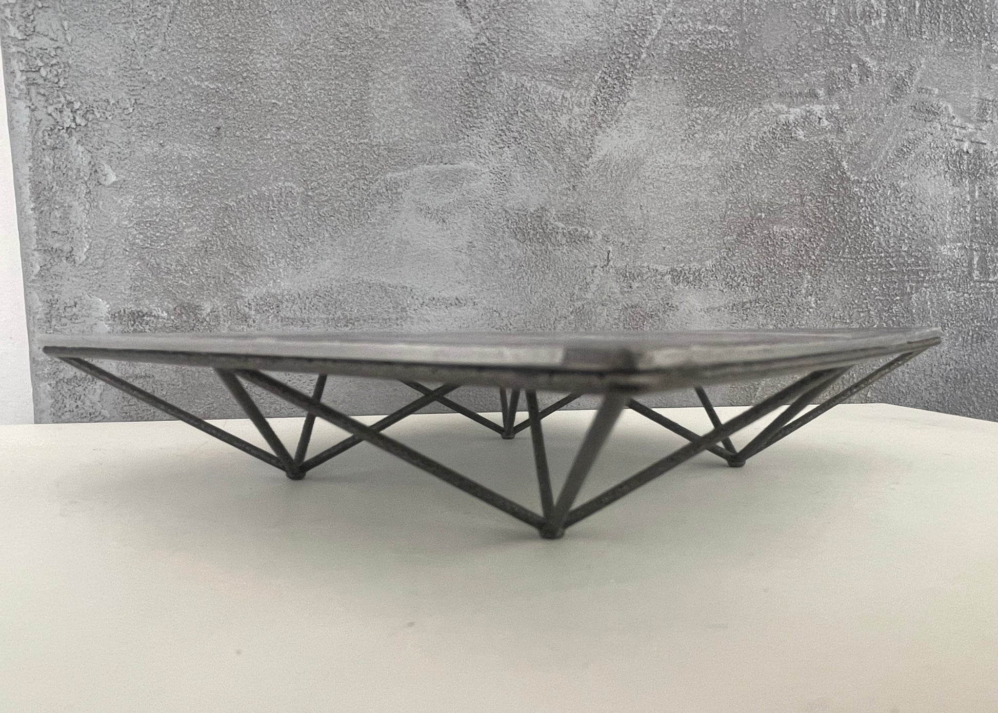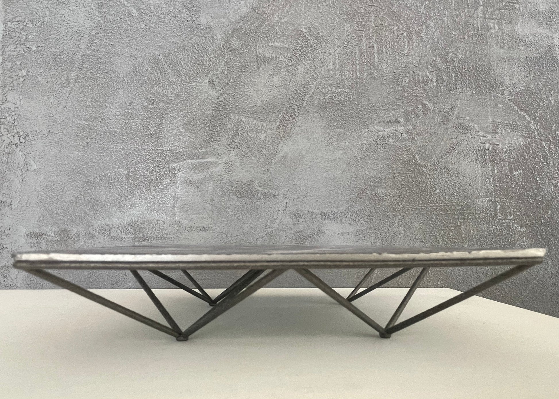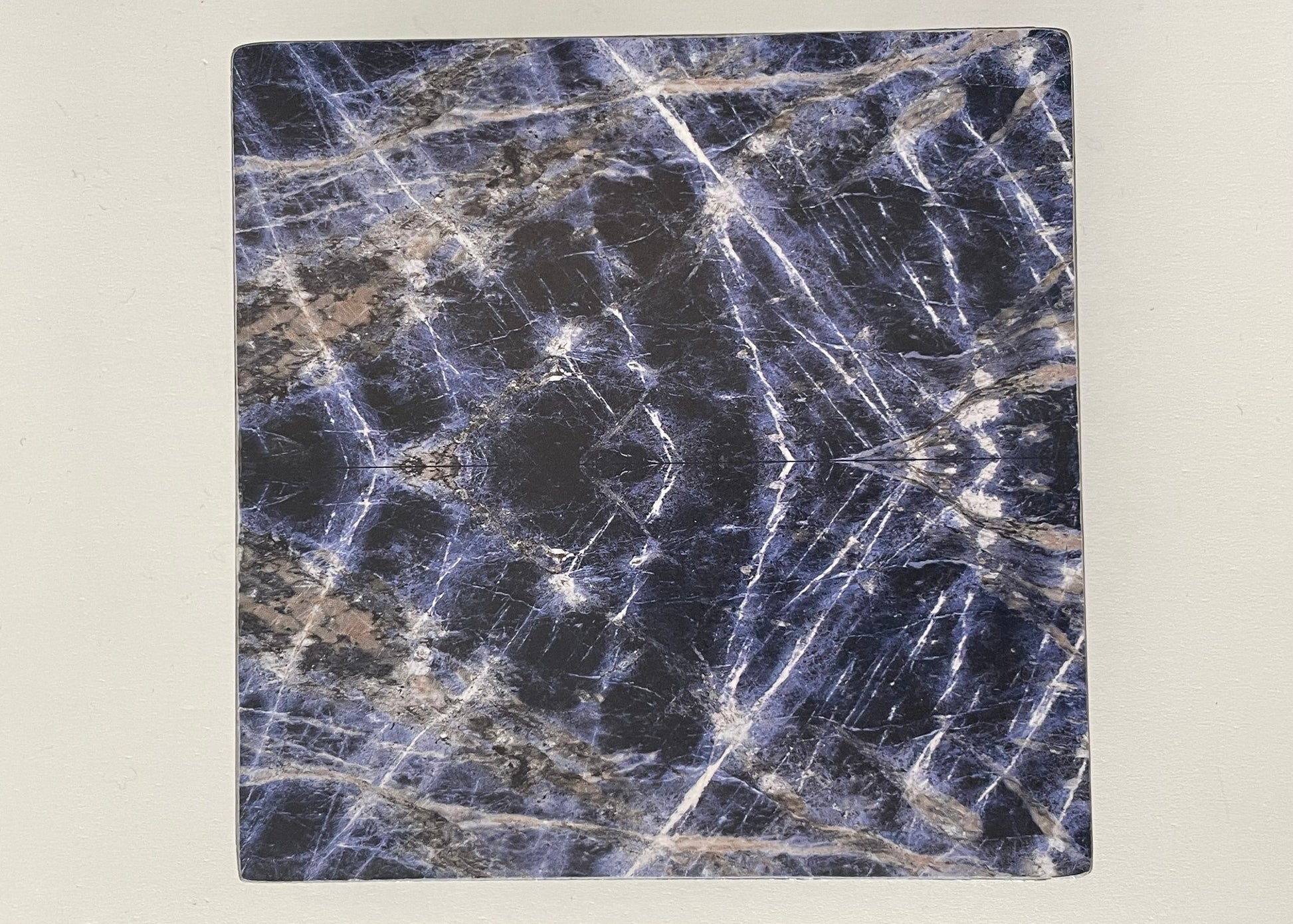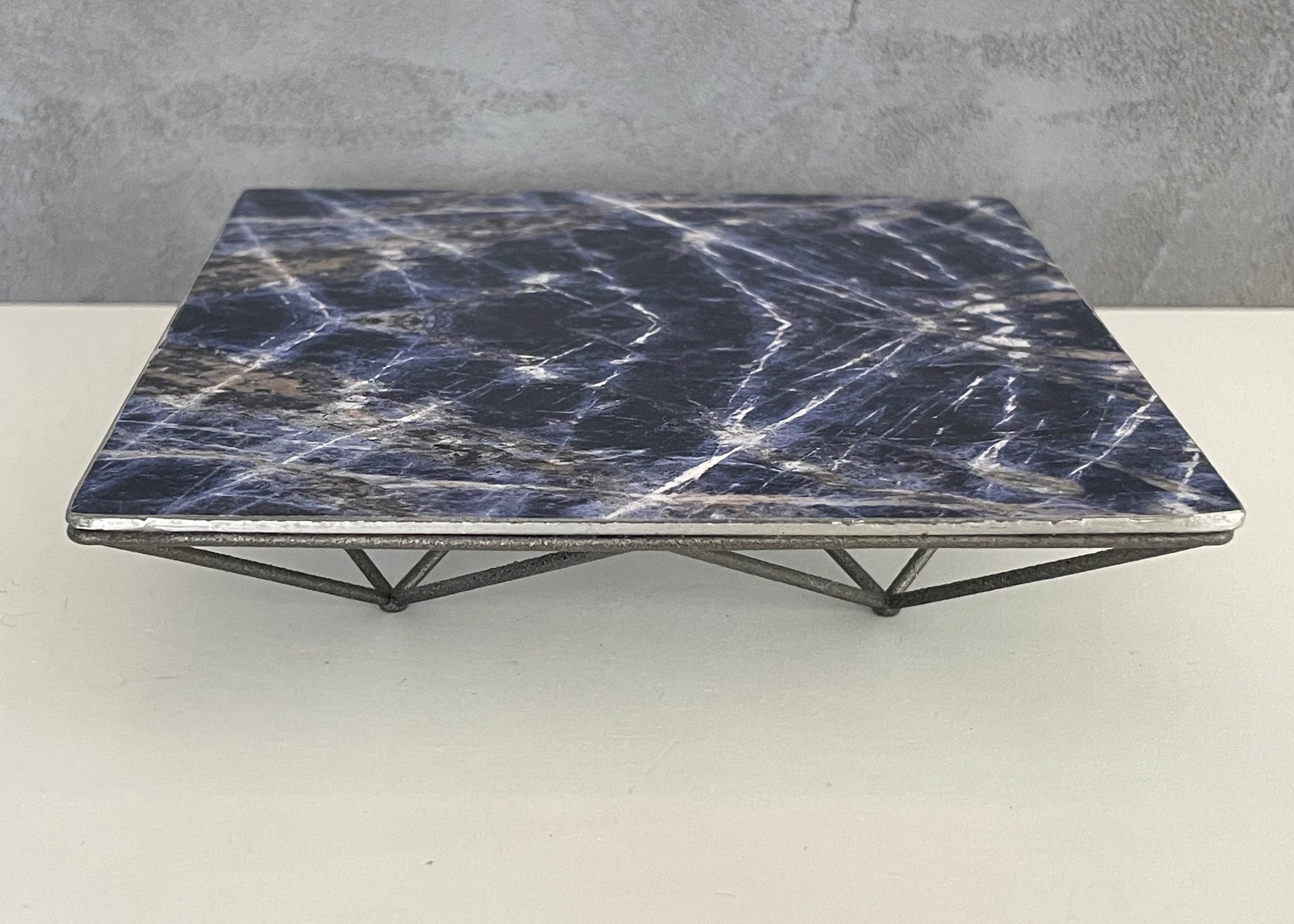 The Porter Coffee Table is perfect for displaying books and accessories in a modern seating area. Finished with a blue graphic top and silver base.