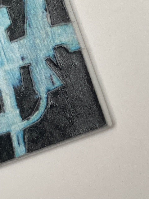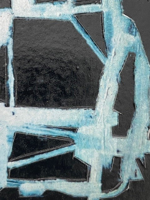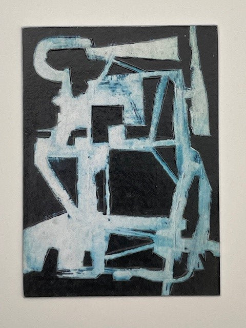 Blue, white and black abstract artwork with no frame. Can be hung horizontally or vertically.