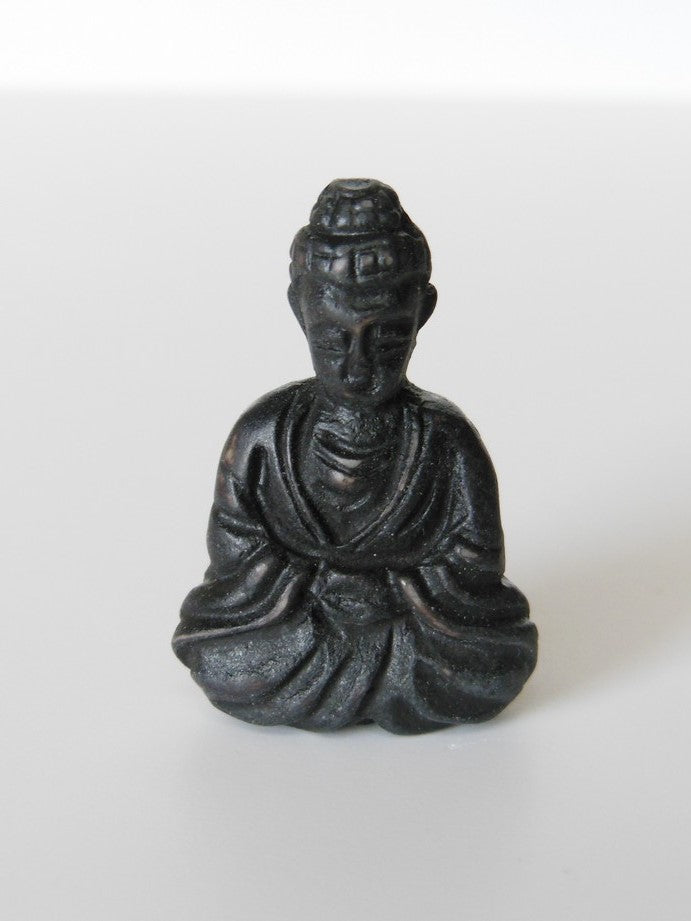 Free standing buddha statue with a black matte finish brings a zen feel to any room.