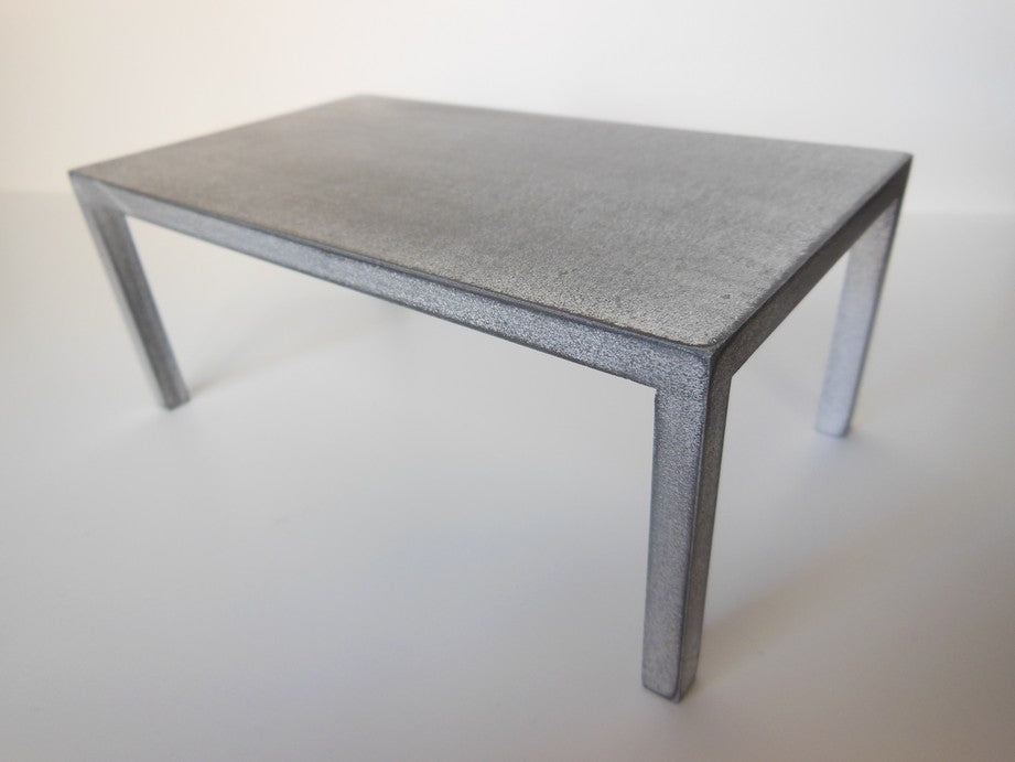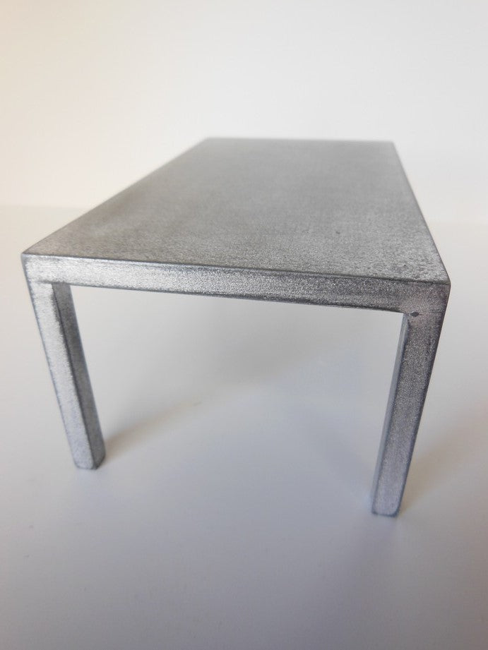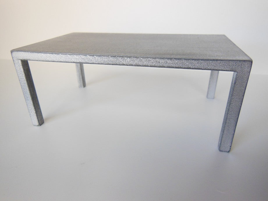 This Parsons-style Dining table is finished to look like burnished metal. NOTE: Each table is unique, and pattern and finish will vary with each piece.