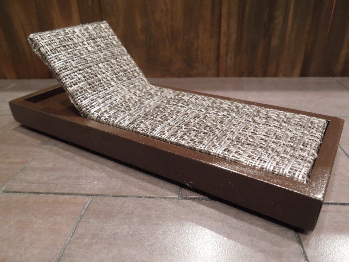 The Cancun chaise is constructed of a wood platformbase with a woven cushion (NOTE: The back is not adjustable)