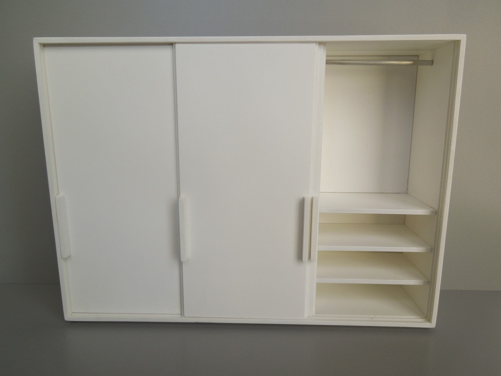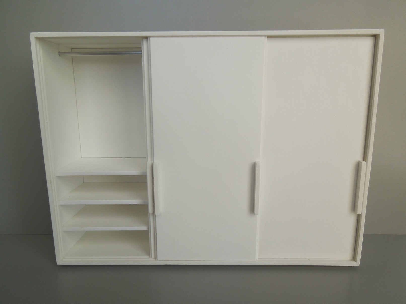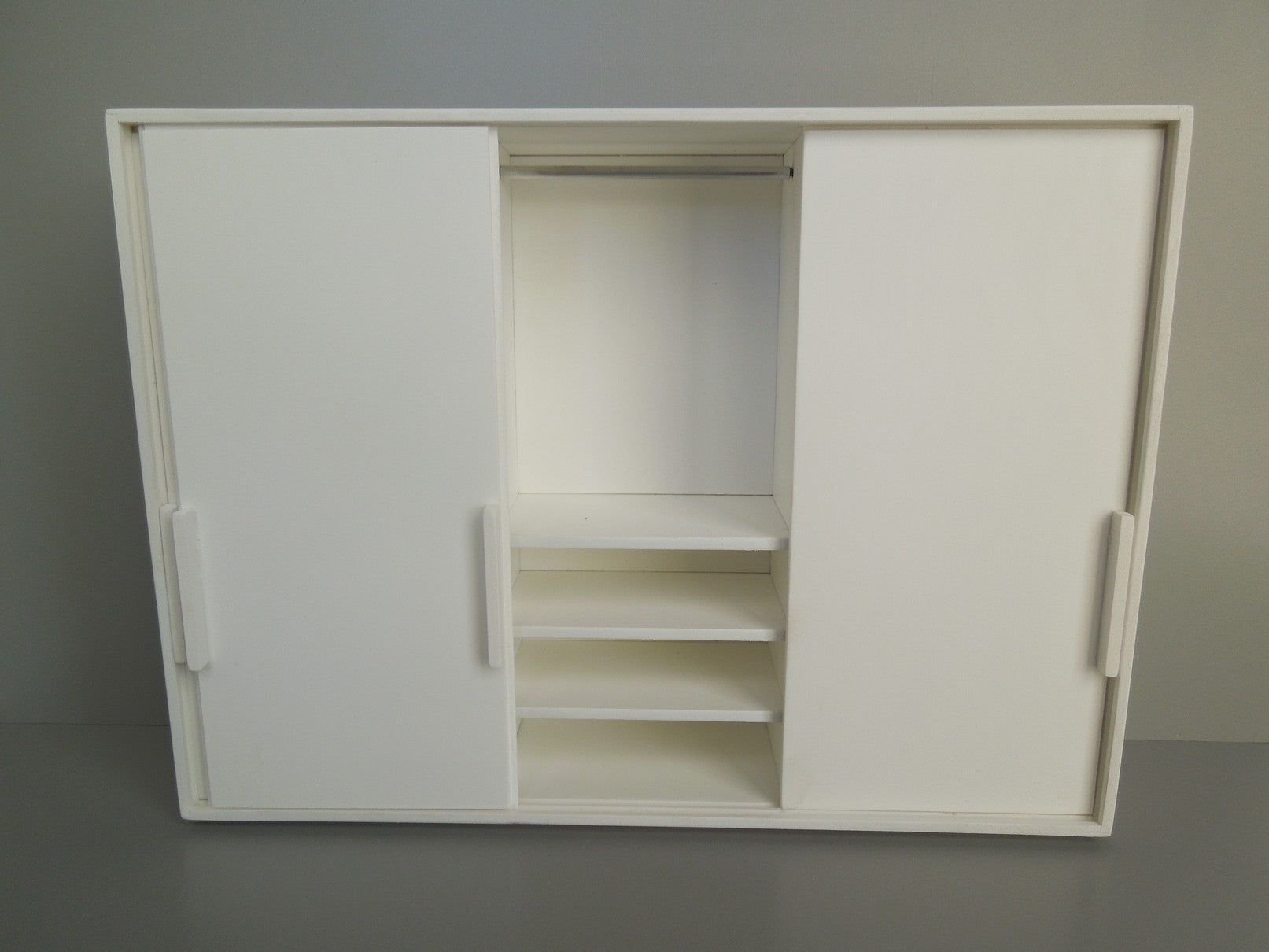 The Canta Wardrobe Unit finished in all white features 3 sliding doors that open to access the metal clothing rail in the upper cabinet and 3 lower shelves. Unit is finished on all sides and can be used as a room divider.