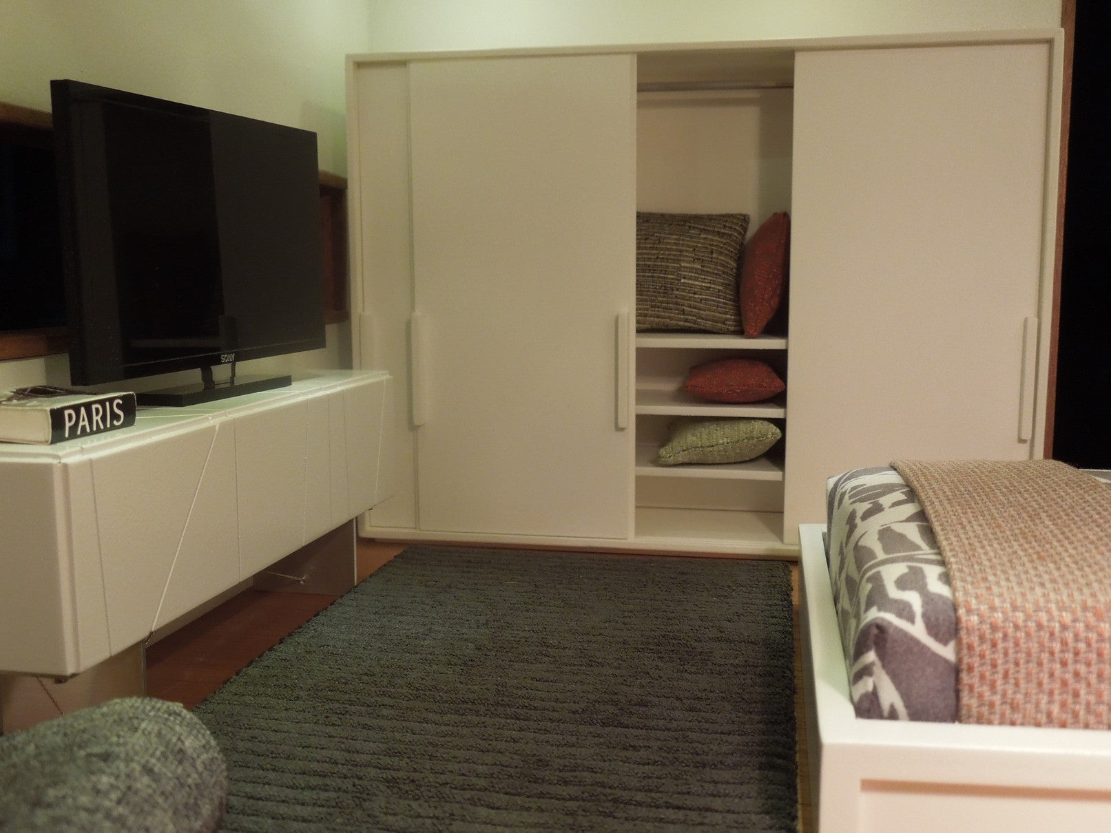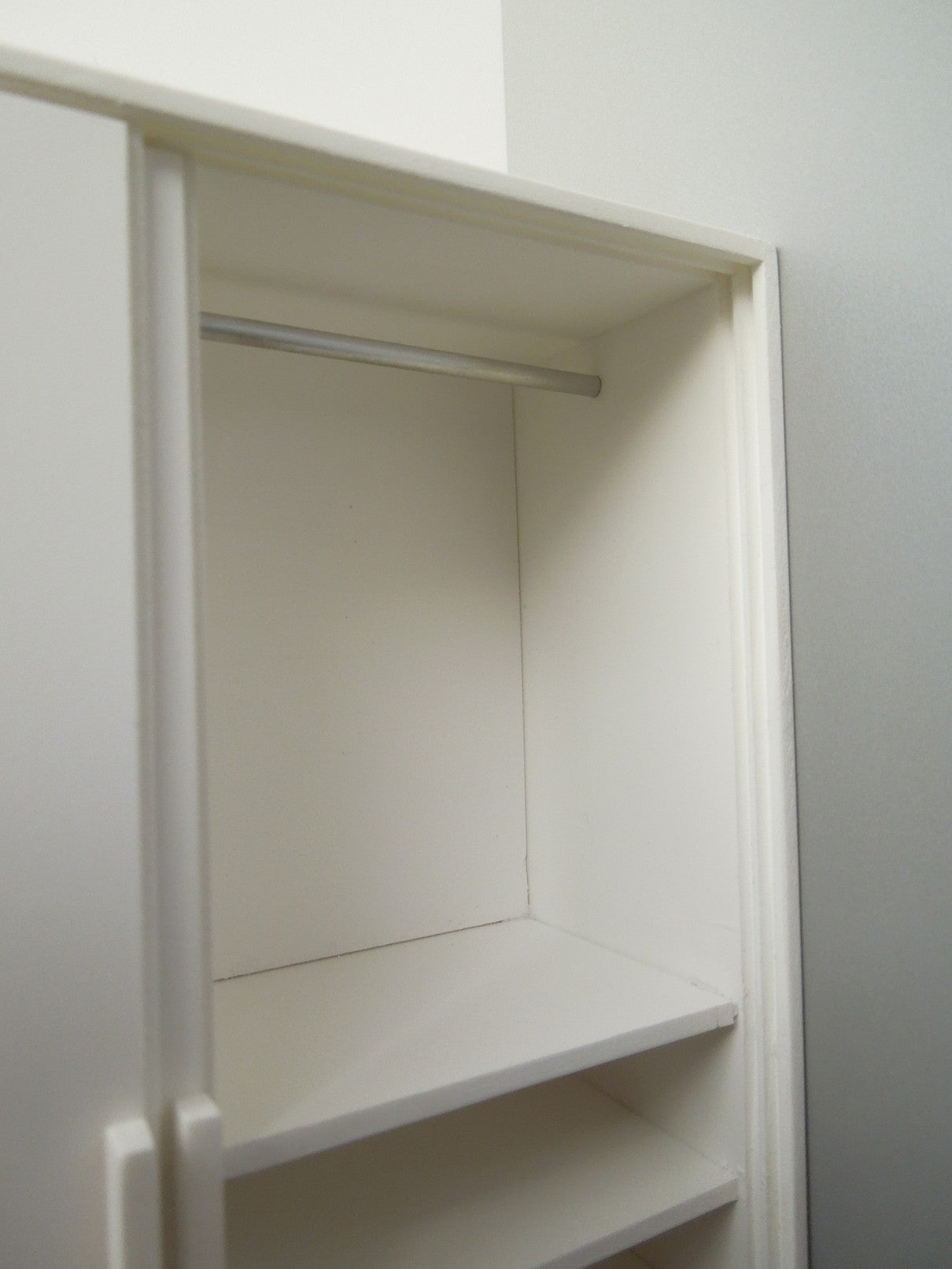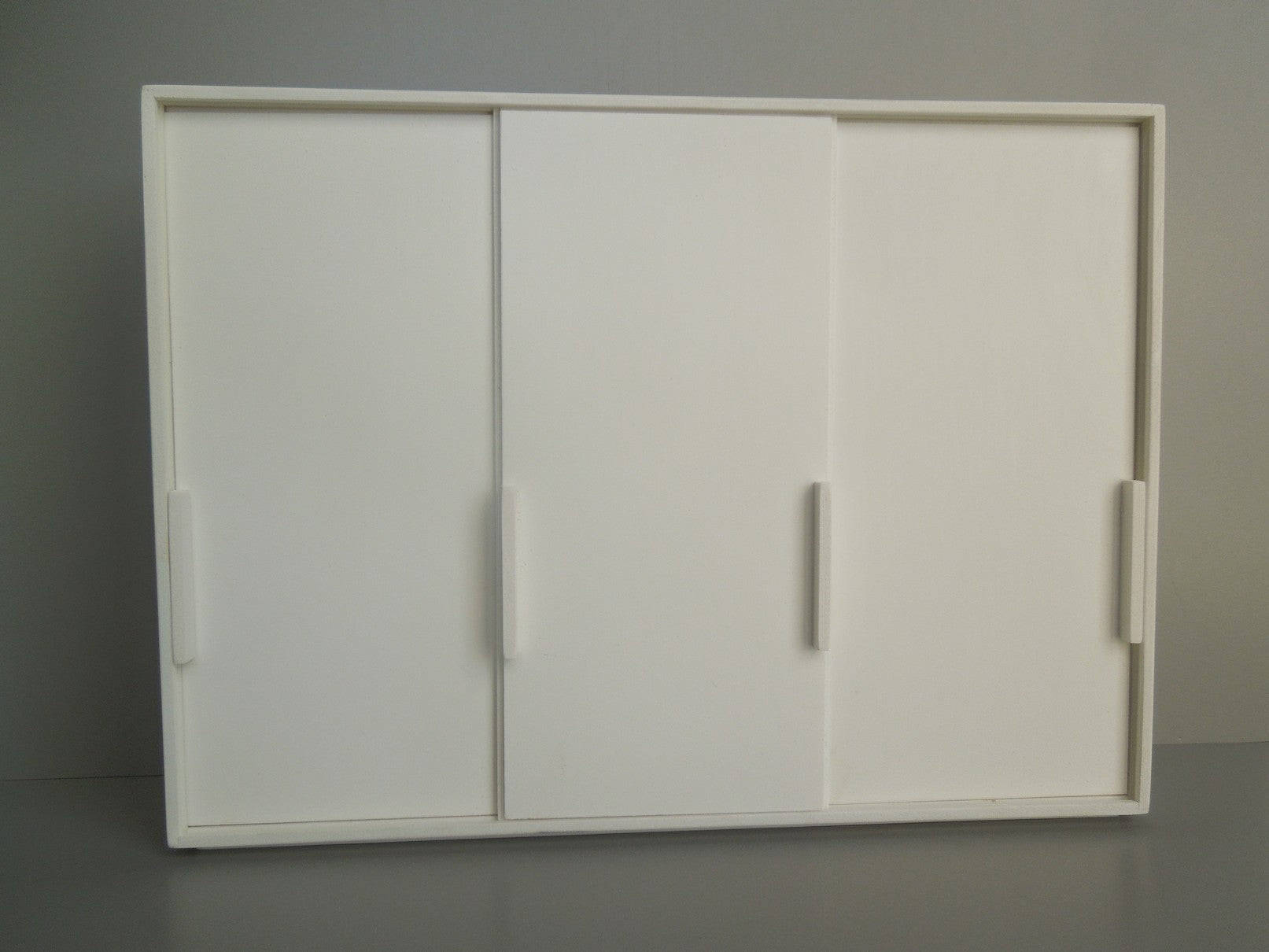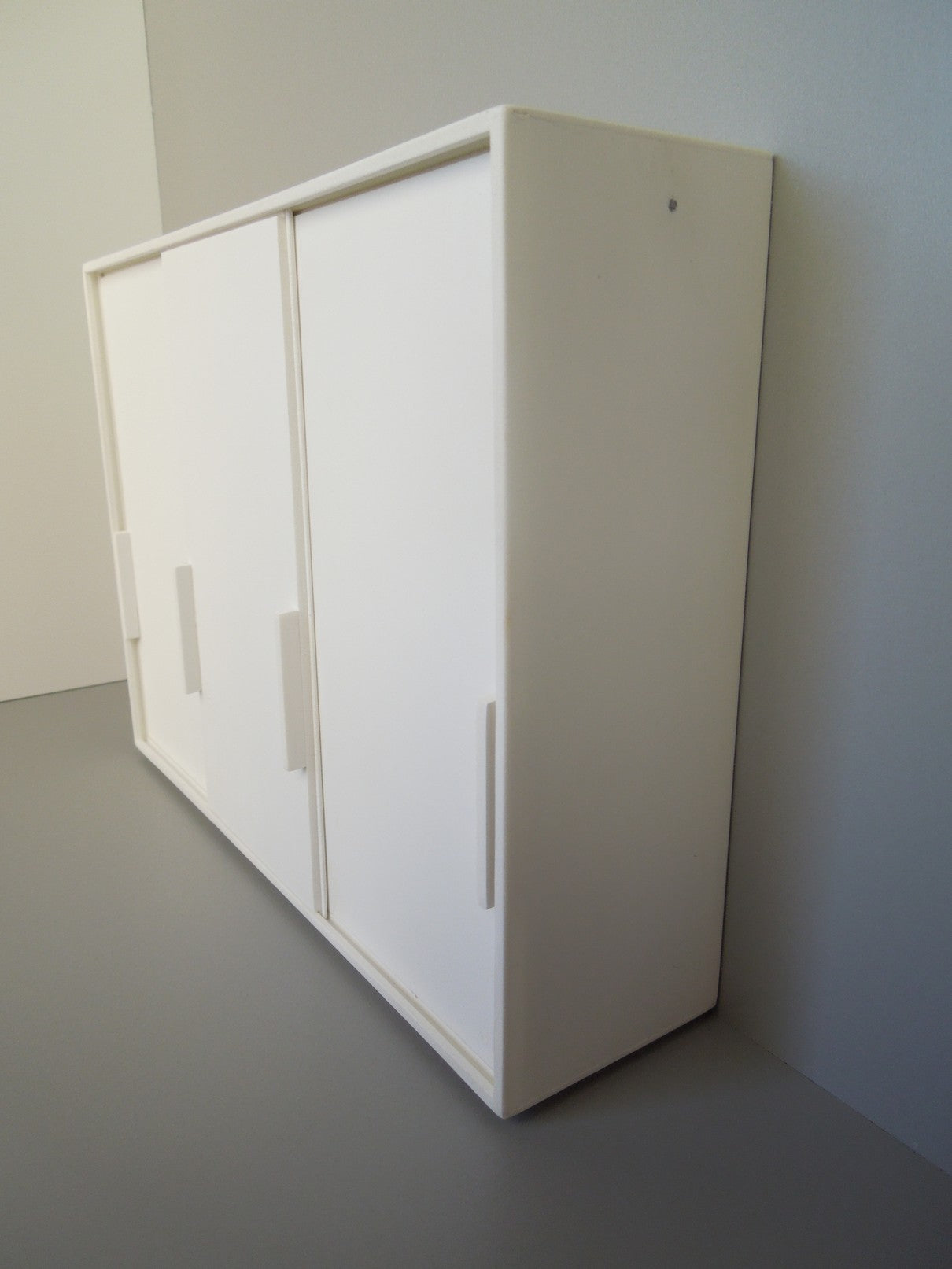 The Canta Wardrobe Unit finished in all white features 3 sliding doors that open to access the metal clothing rail in the upper cabinet and 3 lower shelves. Unit is finished on all sides and can be used as a room divider.