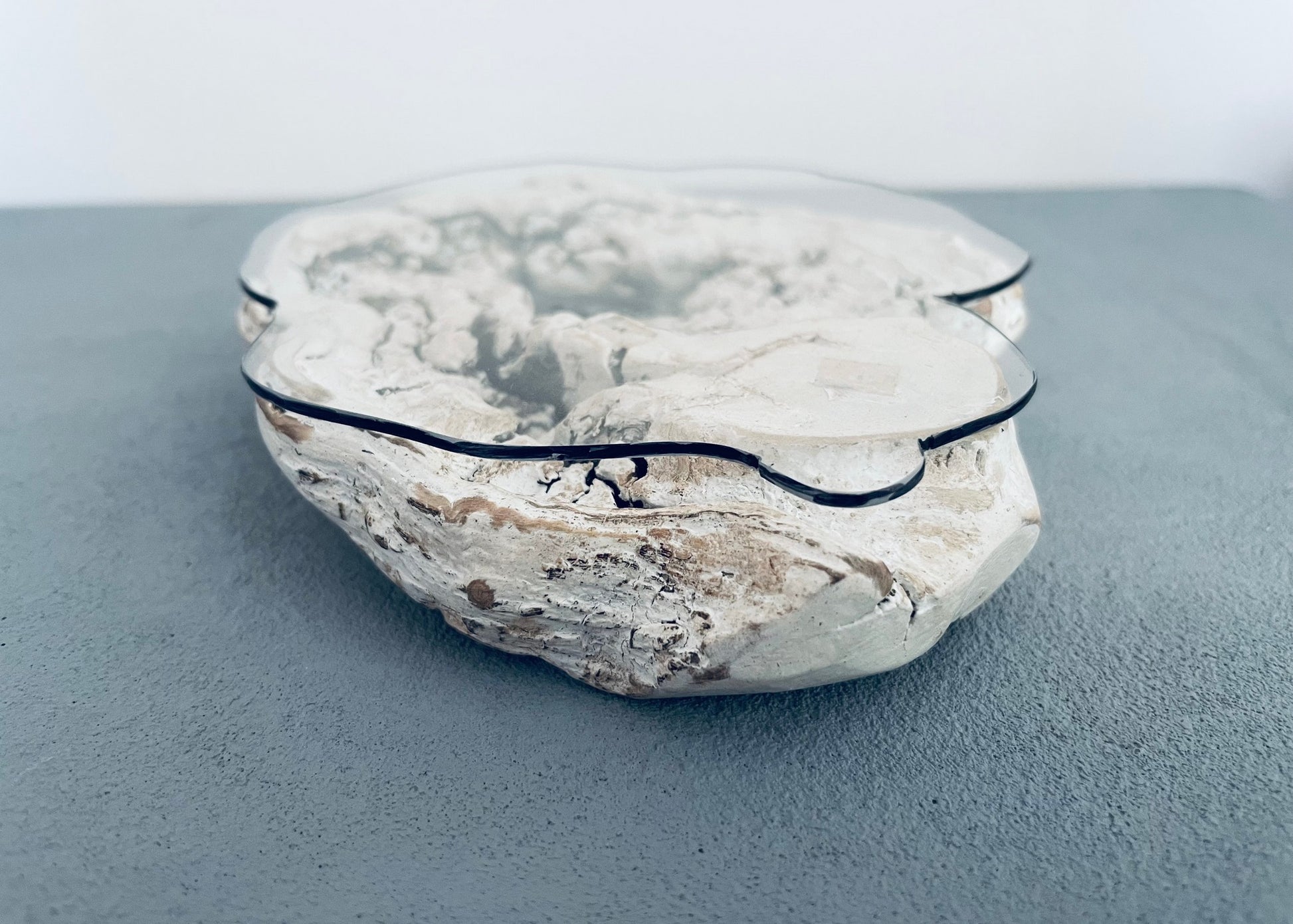 This truly unique coffee table is made from a single piece of driftwood with a white wash finish. The Plexi top follows the curves of the base and is sure to be a statement piece.