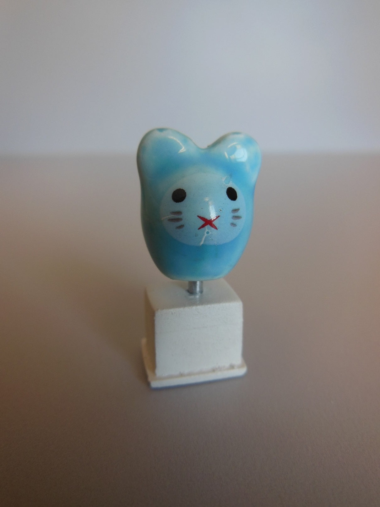 Cat Head Sculpture on White Base