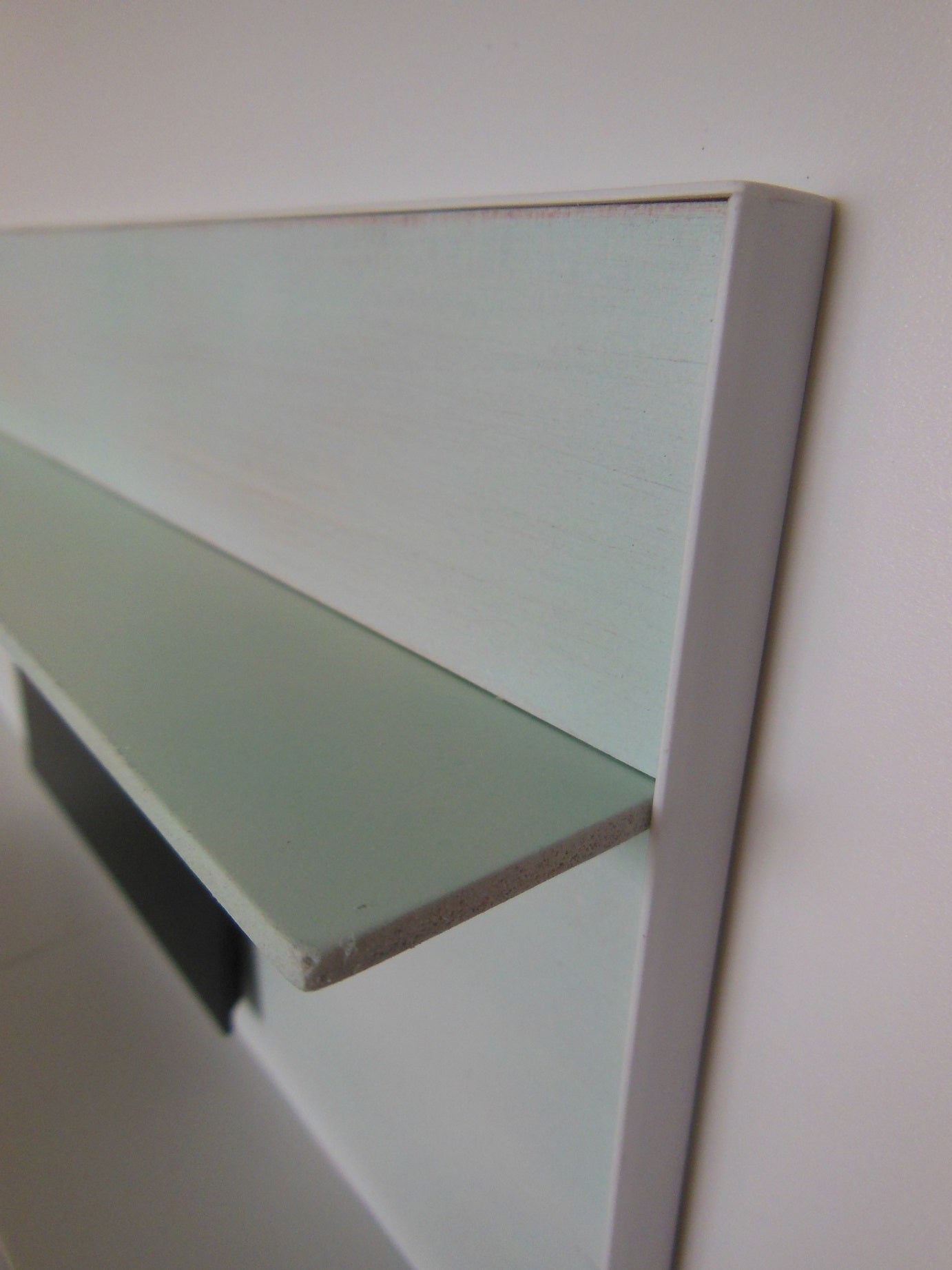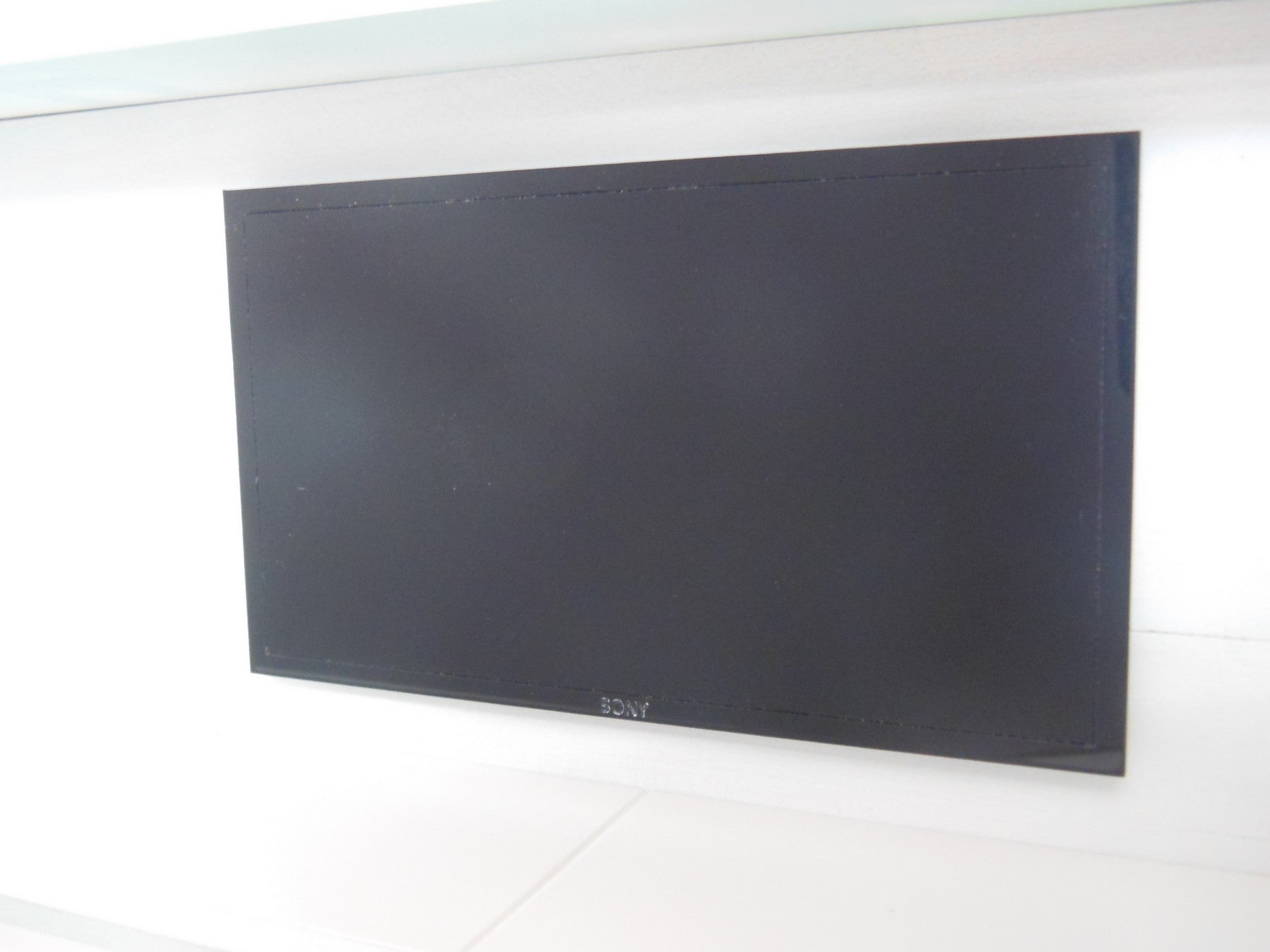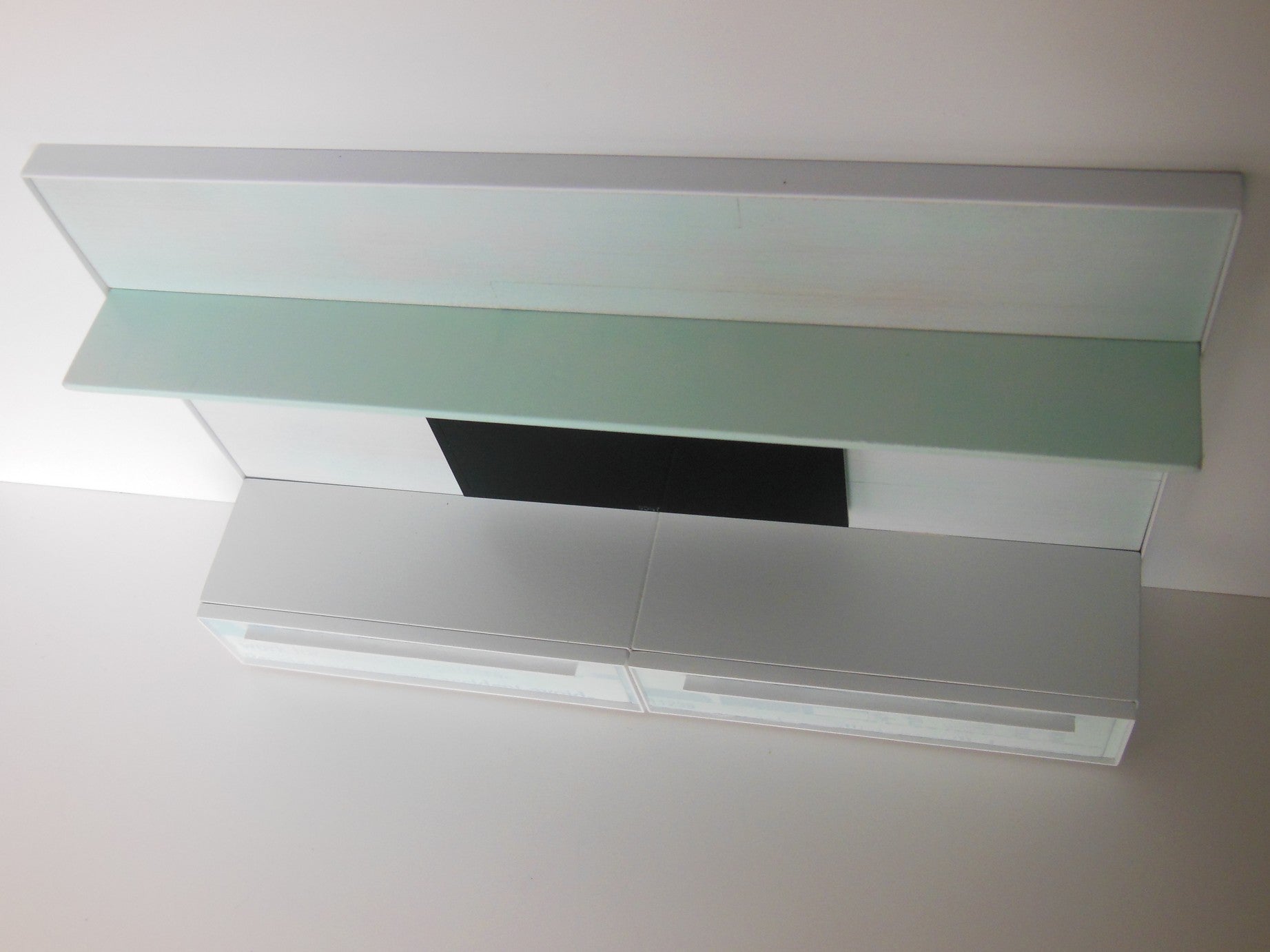 The Chelsea entertainment unit is constructed of aqua blue white washed wood/plastic cabinetry and back wall accented by a shelf on top to display accessories (NOTE: cabinets do not open and accessories shown are not included). The Chelsea unit has an insert in the back of the unit to place an iPhone to play live video. Once the iPhone is in place it looks just like an actual TV! Custom lengths/widths/heights are available, be sure to measure the space before ordering to ensure the custom unit will fit properly.