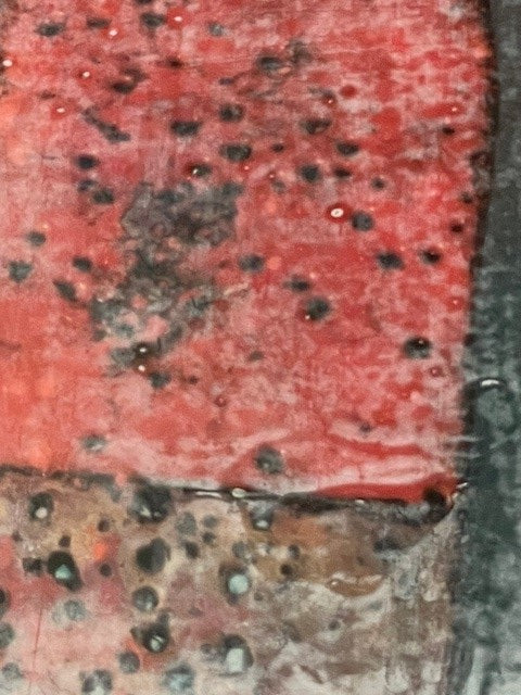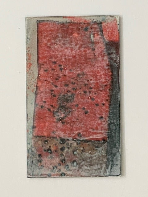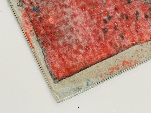 Coral and gray abstract frameless art. Can be hung horizontally or vertically.