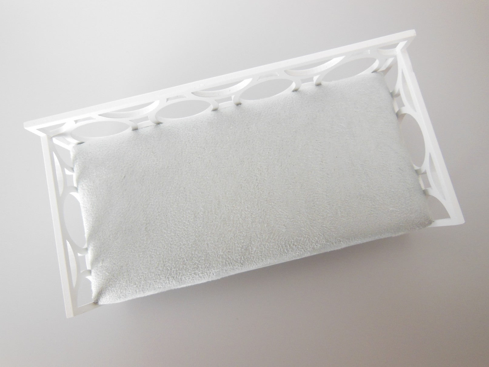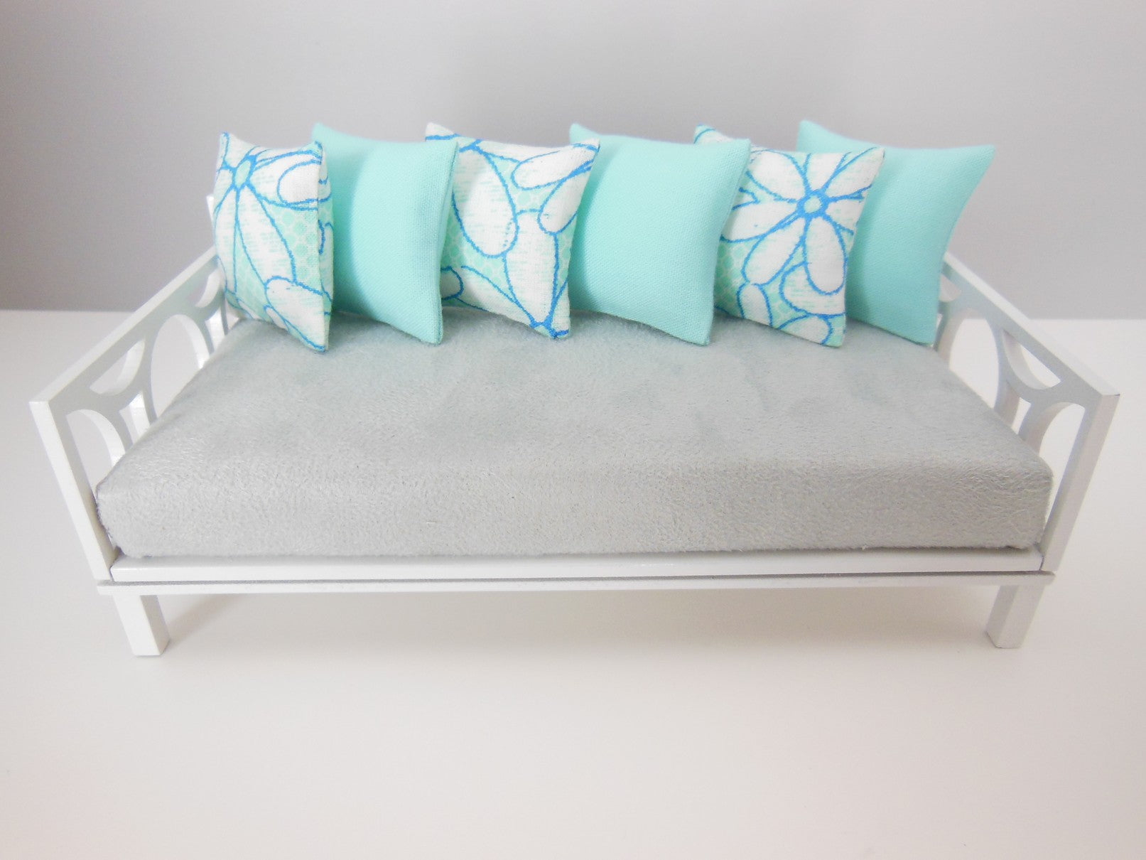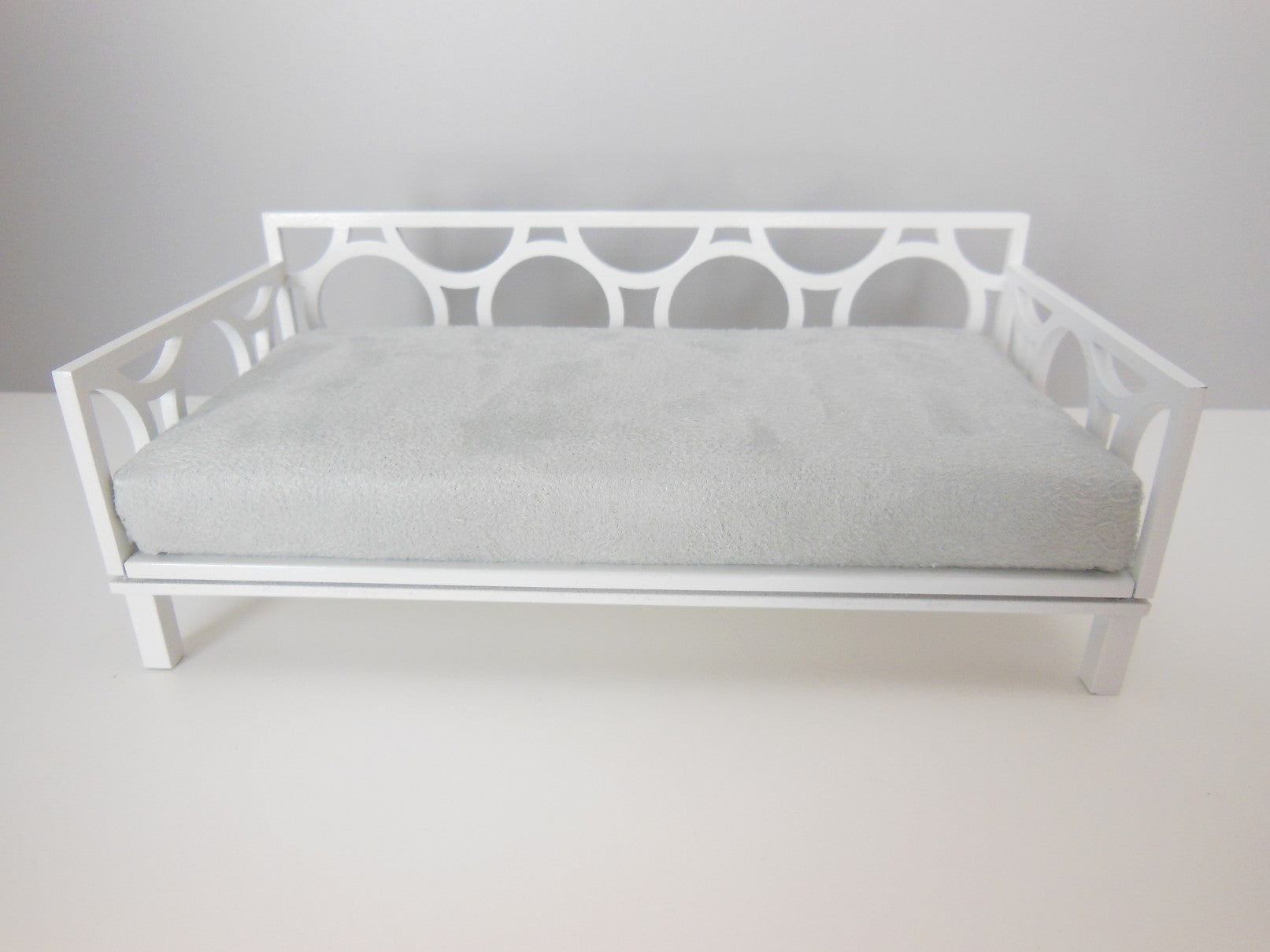The Cortez Daybed is constructed of a white frame with a circle design. The mattress is covered in a light gray micro suede. Accent pillows are not included but can be purchased separately (see our Bedding, Pillows for options - we recommend Medium Square size).
