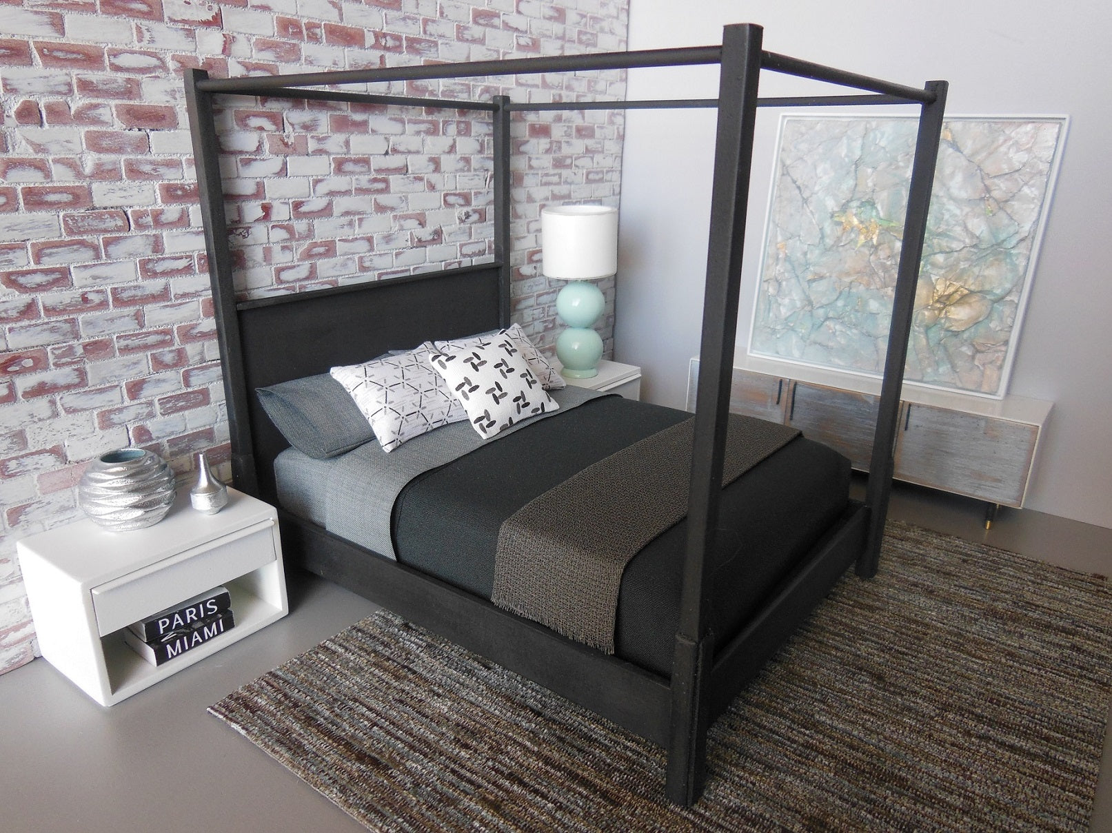 The Danby four poster bed has an elegant yet modern look in a black steel finish. (NOTE: other sizes such as KING or DOUBLE are available as special order); mattress and linens sold separately. MIMOBE Compatible - see our Bedding category for mattress, bedding and accessories.