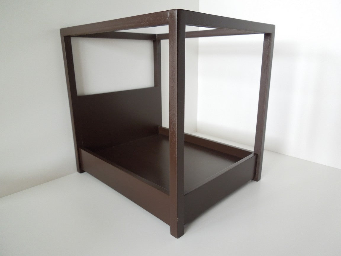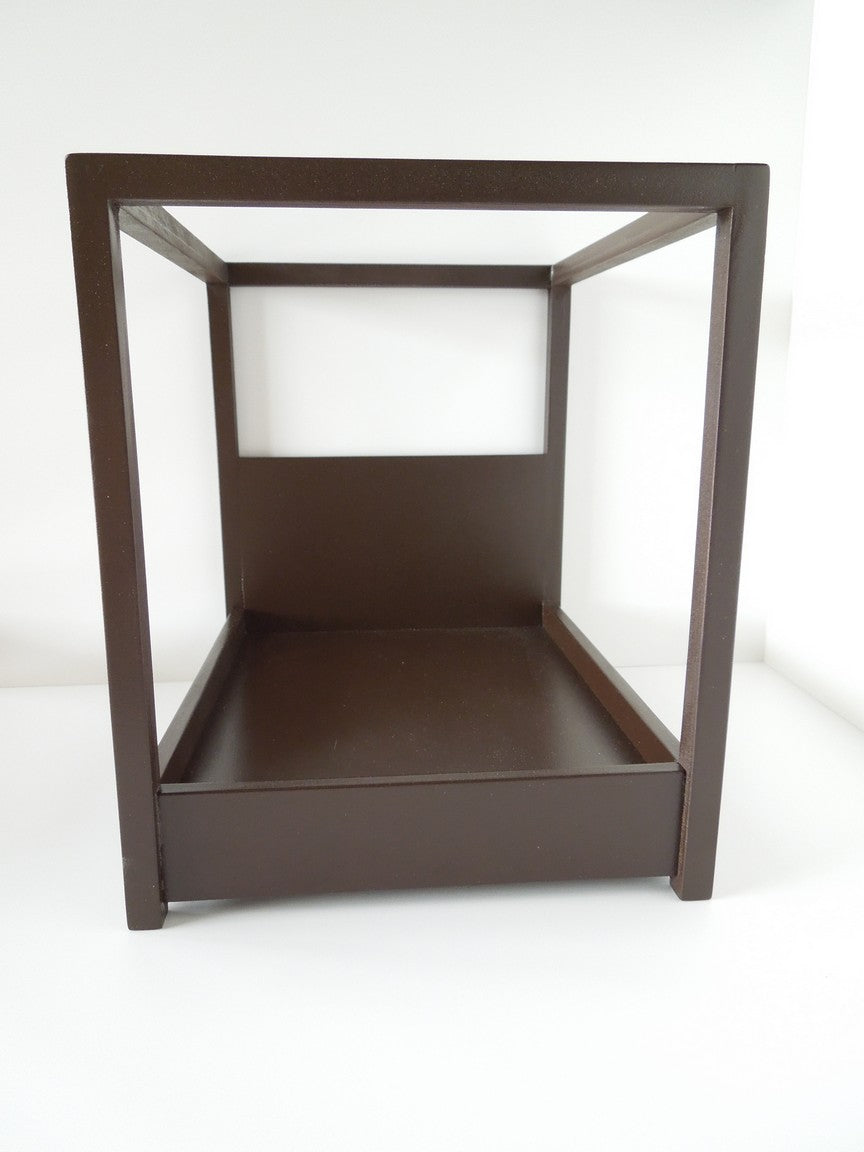 The Devon canopy queen size bed in espresso brown (NOTE: other sizes such as KING or DOUBLE are available as special order); mattress and linens sold separately. MIMOBE Compatible - see our Bedding category for mattress, bedding and accessories.