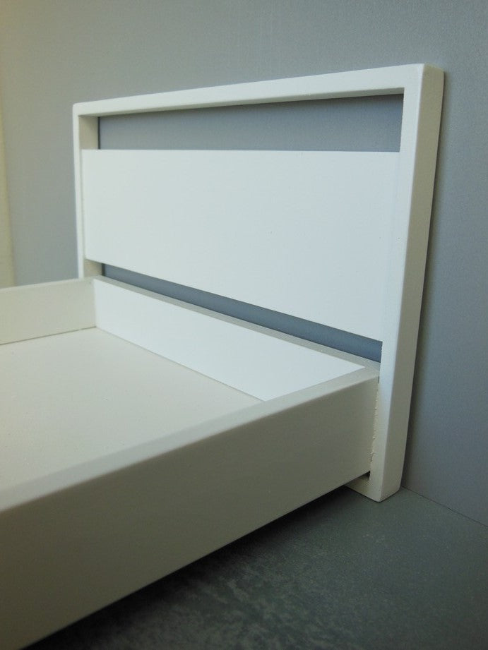 The Dormi Bed High is a beautiful bed frame finished in bright white (also available in a solid wood); mattress and bedding sold separately (NOTE: other sizes such as KING or DOUBLE are available as special order) MIMOBE Compatible - see our Bedding category for mattress, bedding and accessories.