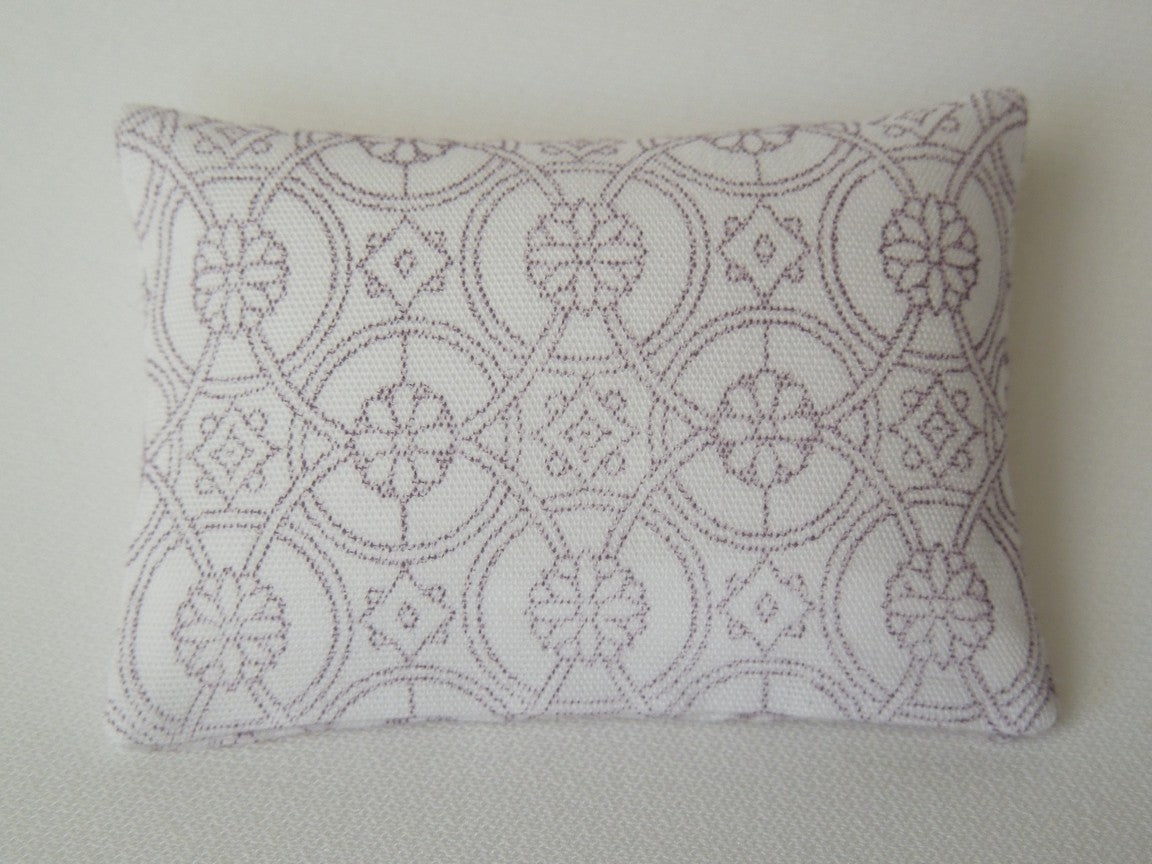 The Kravit Medium Rectangle Pillow is constructed of a white fabric hand-printed with an eggplant ink.