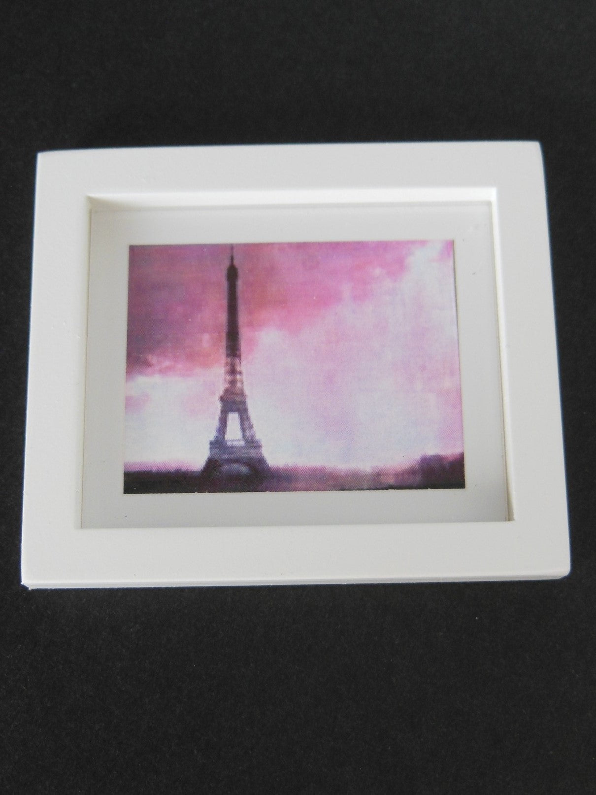 Eiffel tower print with white matte and thick white frame.