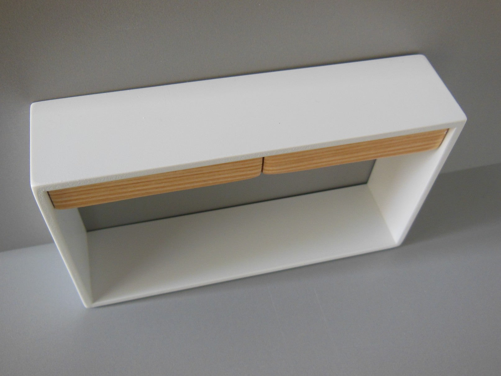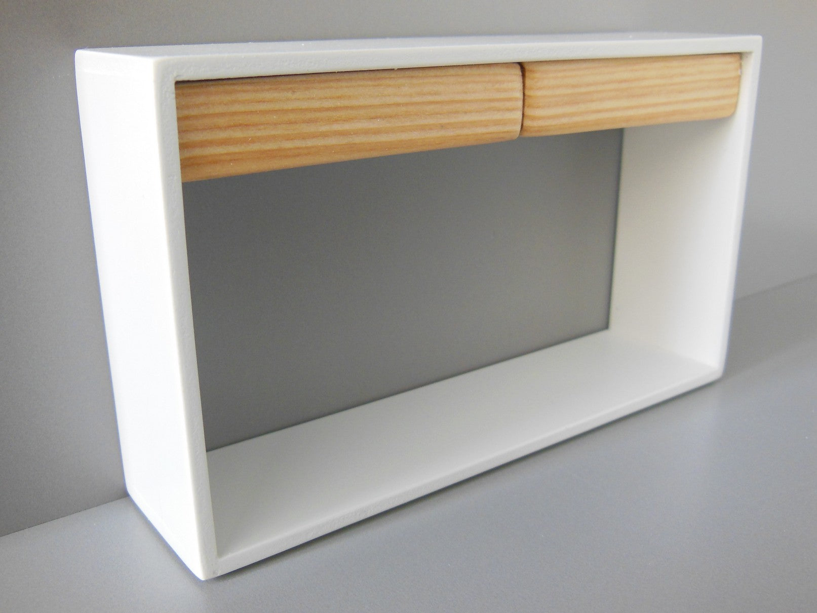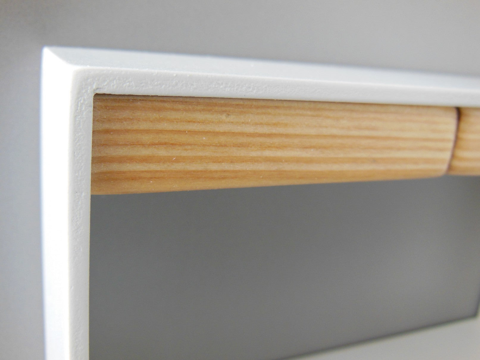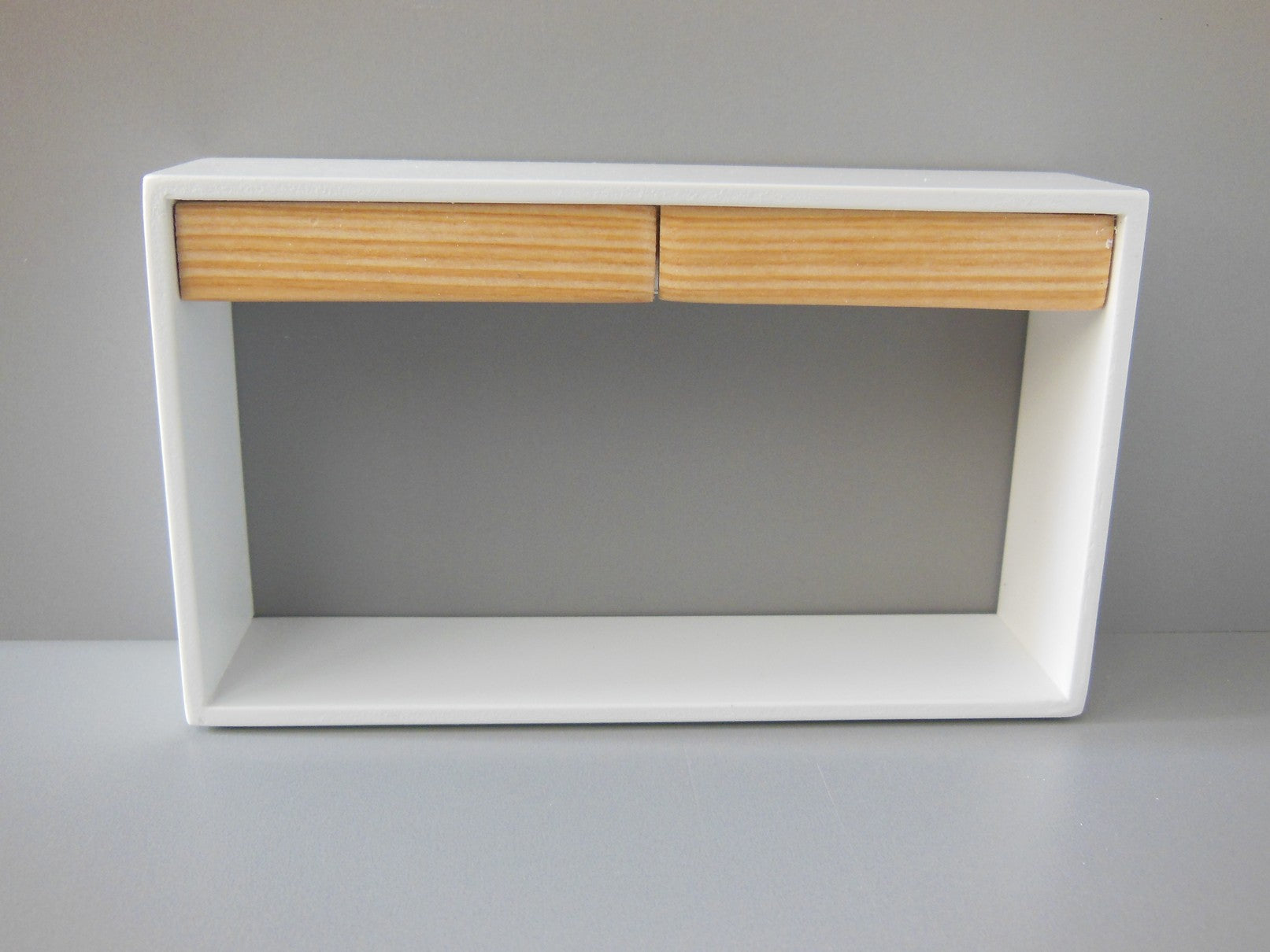 The Emerson Console Table with White Base has a cypress wood drawer fronts. NOTE: Drawers do not open.