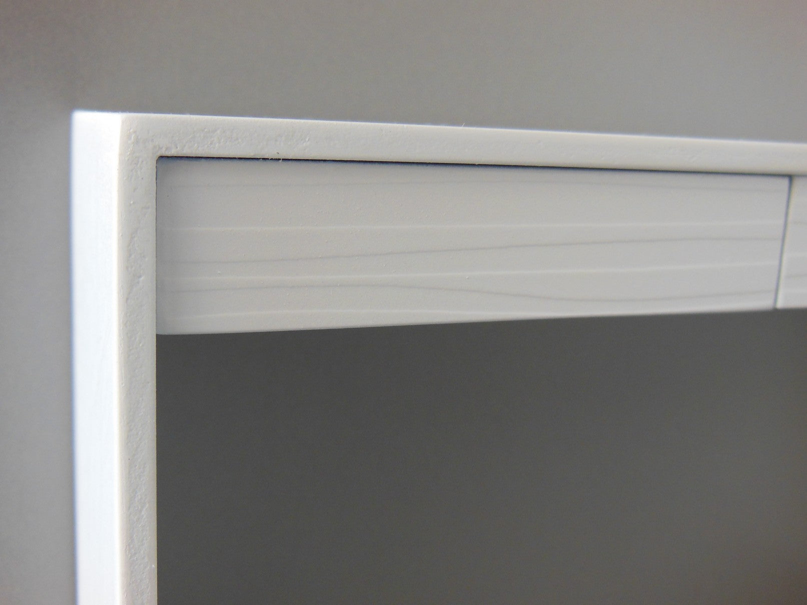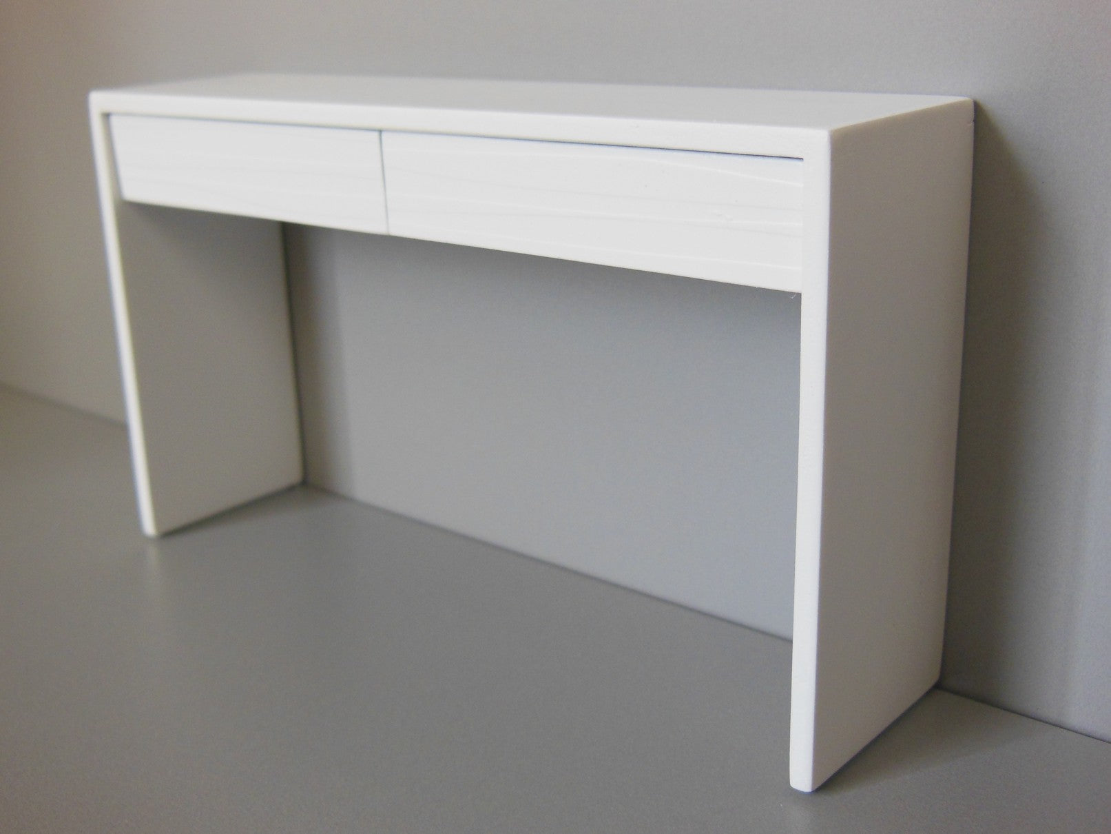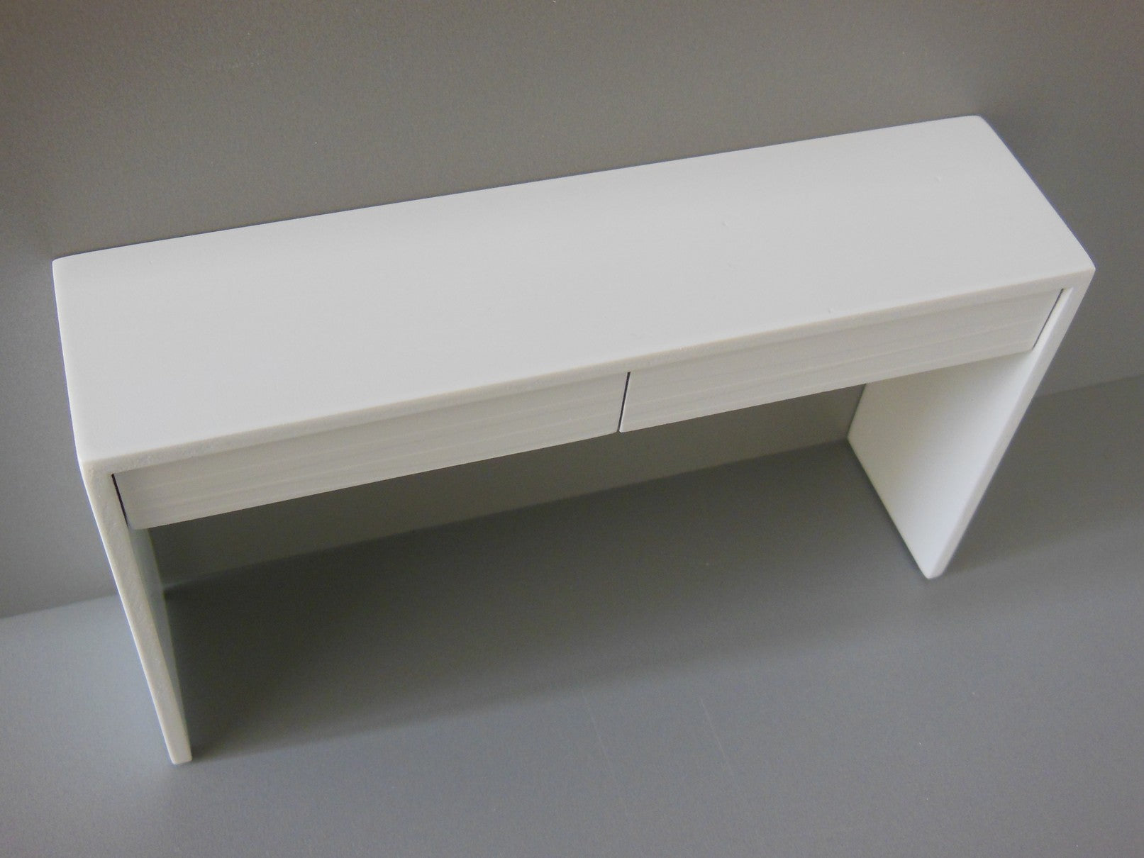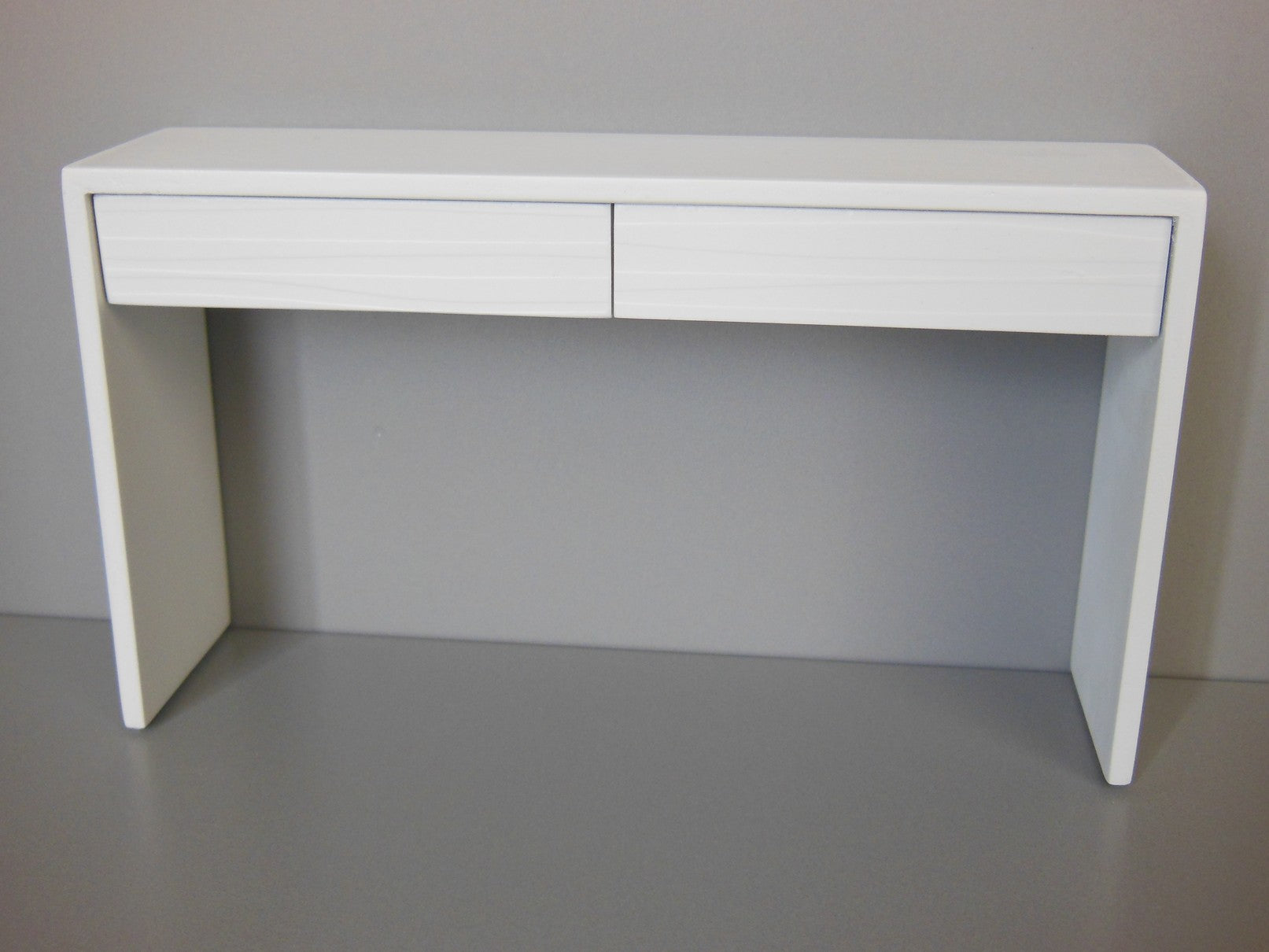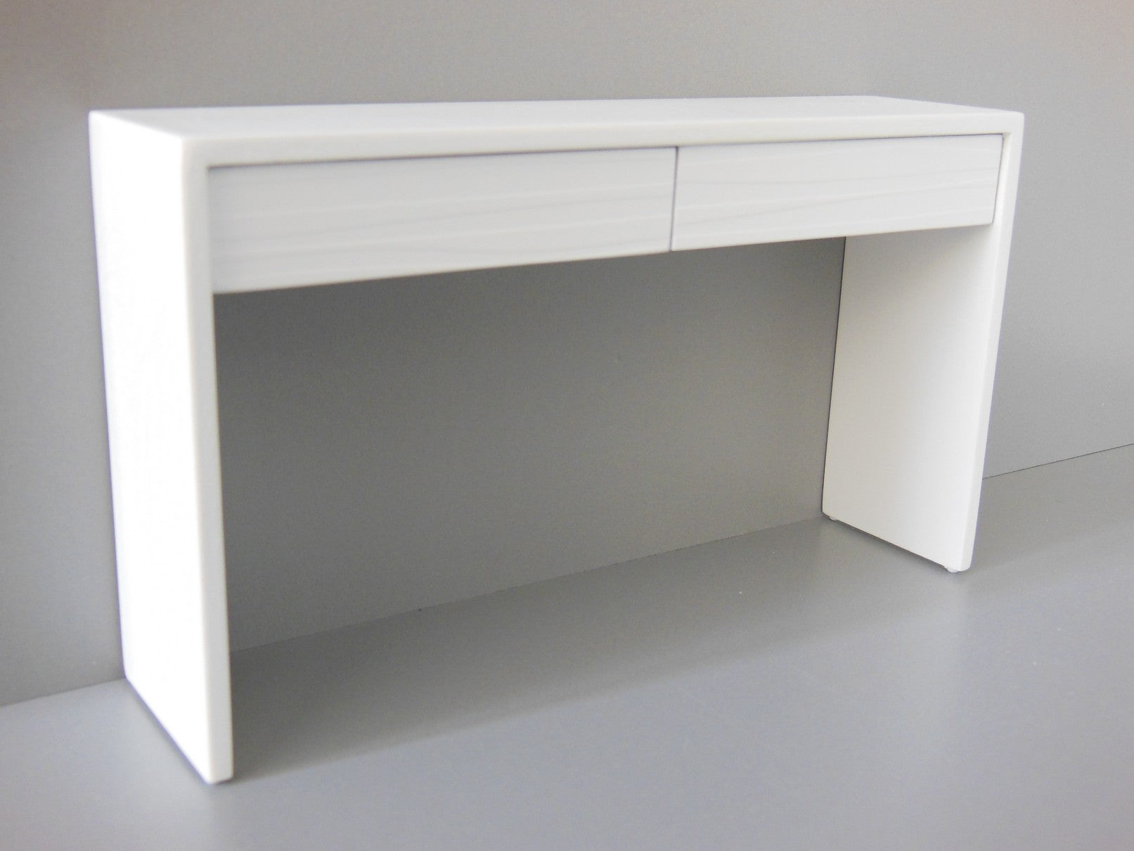 The Emerson Console Table with White Base has a contoured wave pattern drawer front in white. NOTE: Drawers do not open.