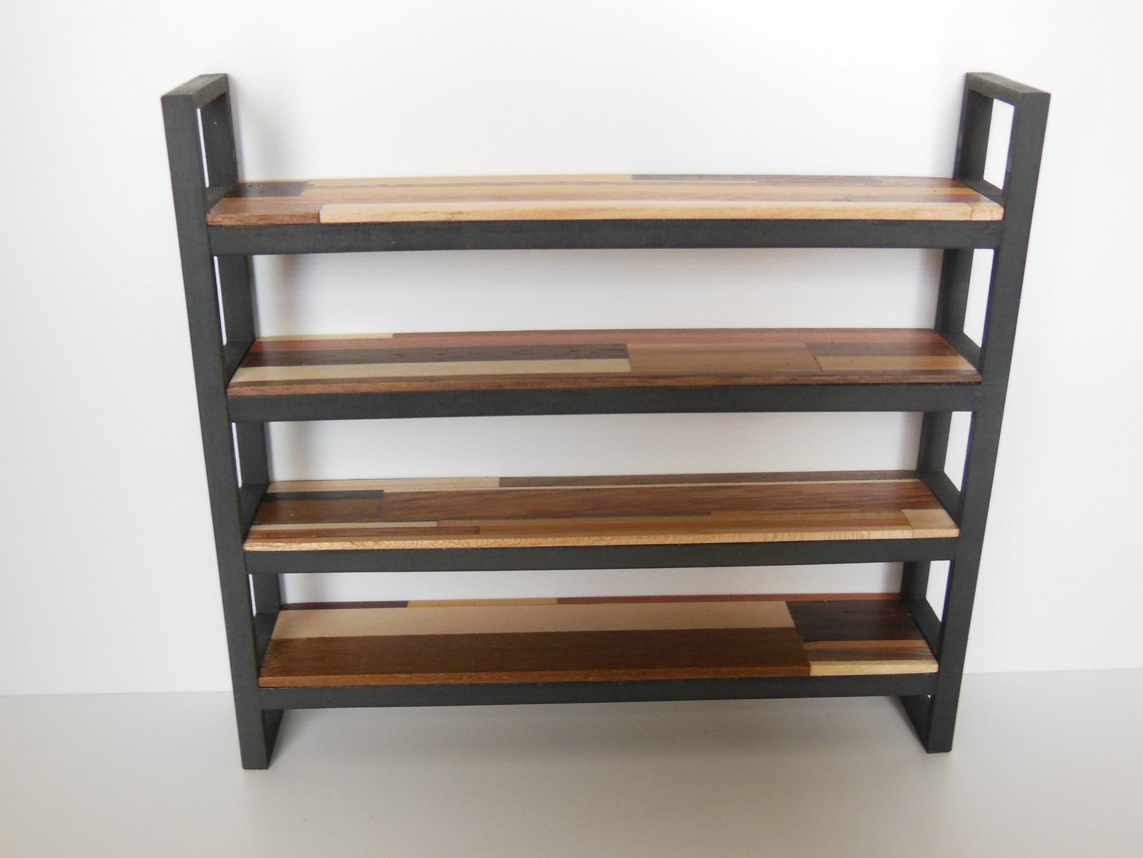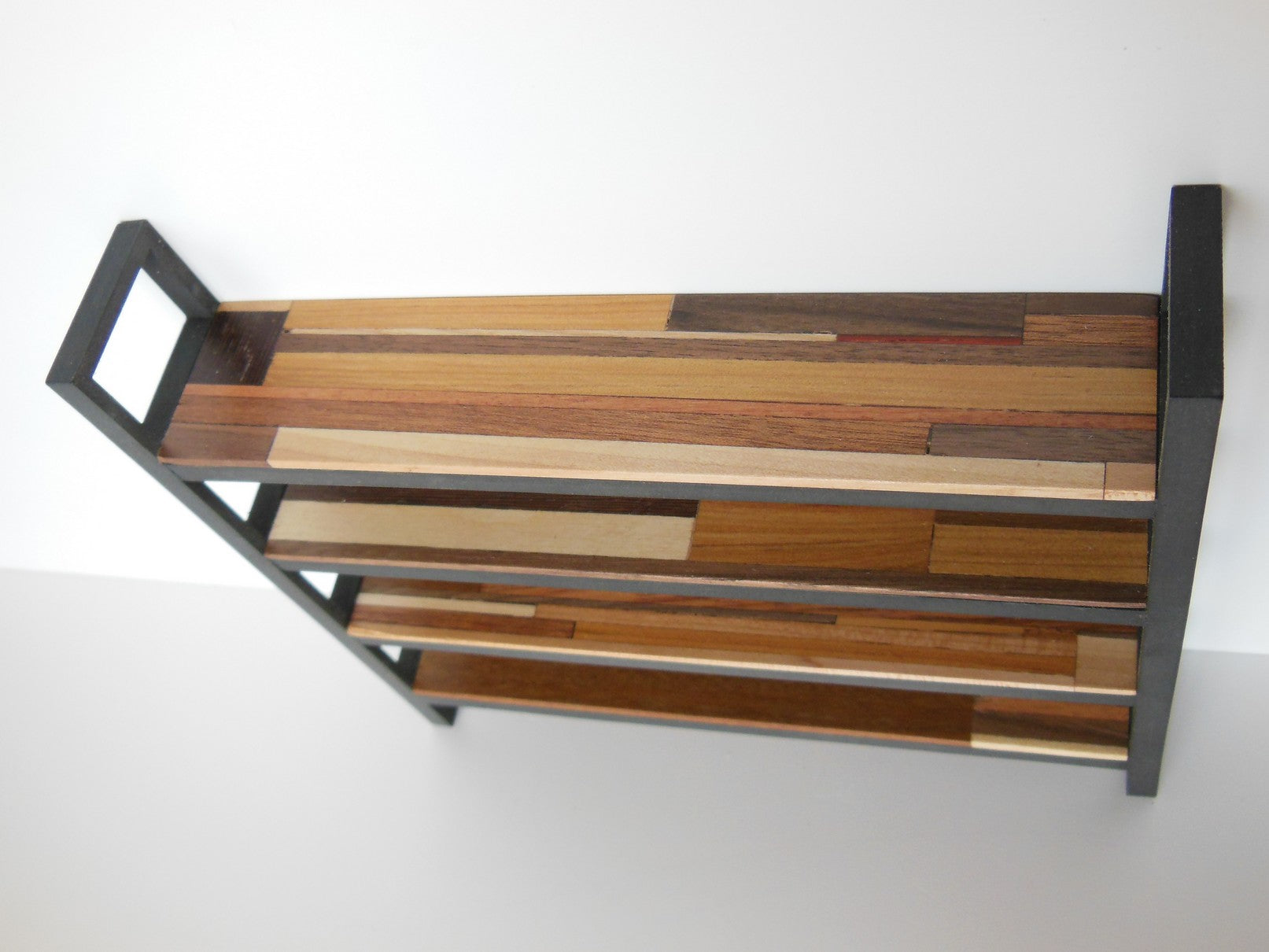 Part of the M.U.T.T line, this shelving unit works in any vintage, farm house, industrial, or modern room setting. Each shelf is uniquely selected out of the larger sections of assembled M.U.T.T. planks so no two shelfs are alike.
