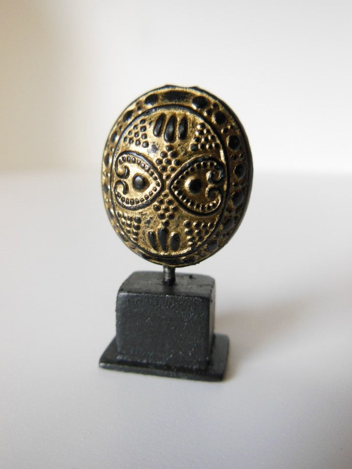 Gold/Black Tribal Sculpture on Dark Wood Base