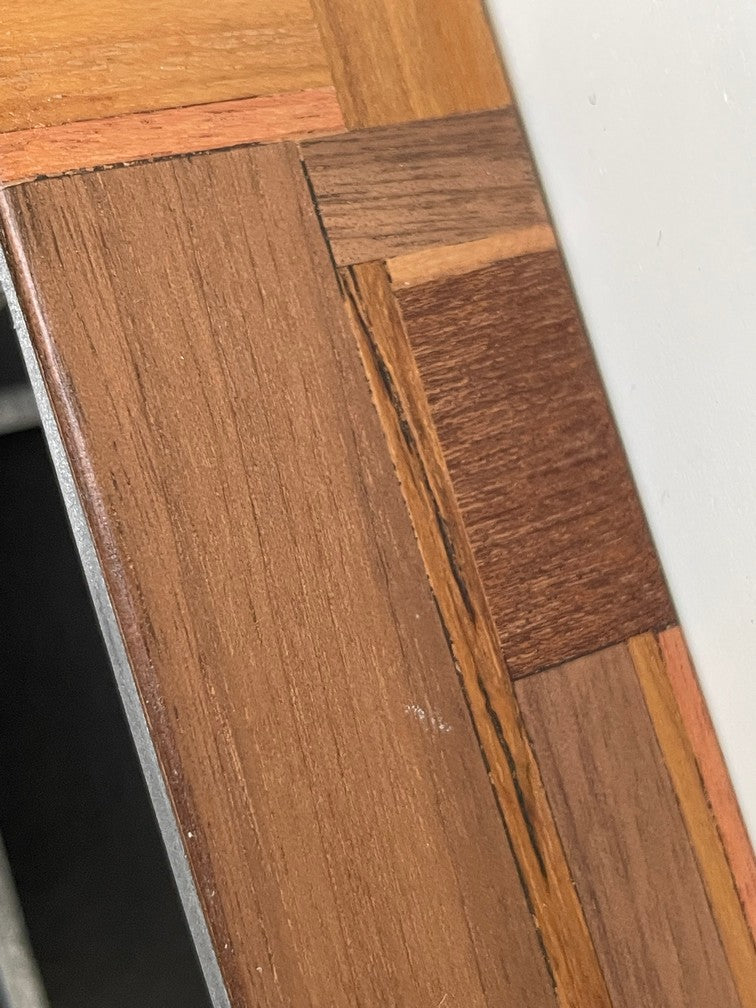 The industrial design of this console table gives any room that urban look. Finished in a painted silver base with a solid wood M.U.T.T. (Made Using Tossed Trimmings) top.