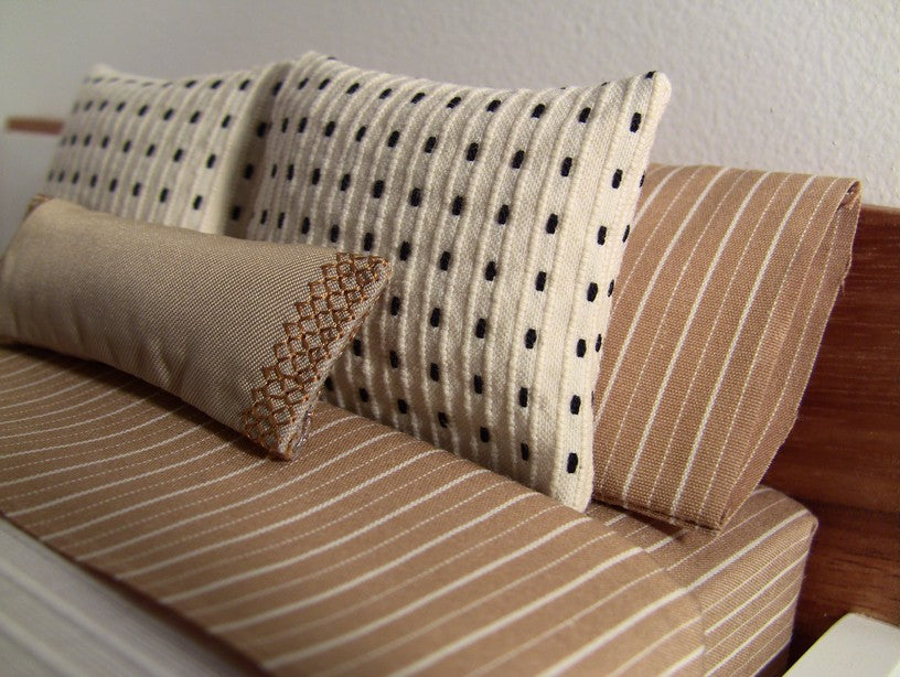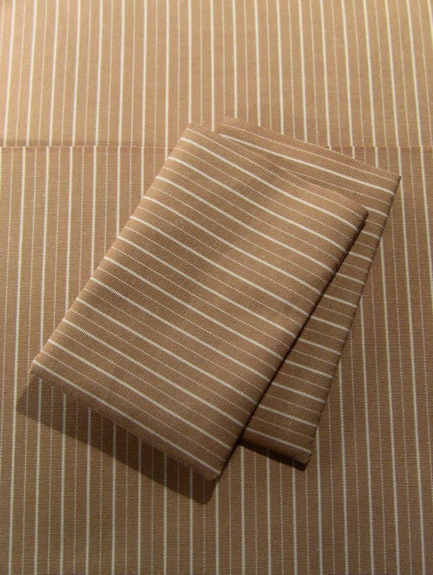 Our khaki and white stripe sheet set includes fitted sheet, flat sheet and two standard pillowcases. Designed to fit our Essentials queen mattress and standard pillows.