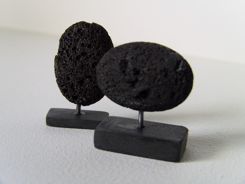 Lava Rock Vertical mounted on a black wood base. NOTE: Each piece varies in size and shape due to the natural rock formation and dimensions may not be exact.