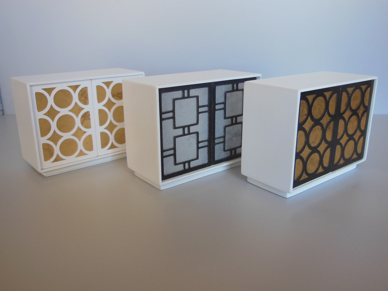 These are a new addition to our ever growing line of sideboards and consoles. A nice blend of classic and modern, they can be used as bar units, buffet cabinets, and even dressers. Our 2 door version is perfect for the smaller rooms, while the 3 door sets anchor on the accent wall in a larger room. We opted for the clean look of no handles. (NOTE: Doors do not open)