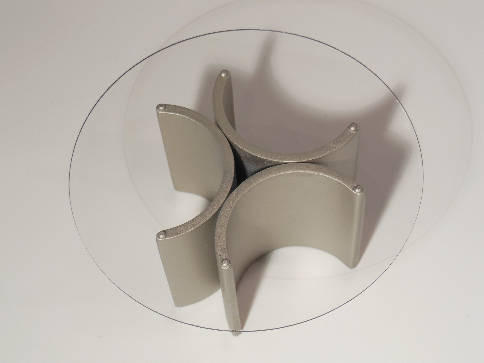 The Lotus dining table features a curved leg base arranged in a symmetrical pattern. This makes for an elegant dining table. Pairs well with our Wishbone chairs.