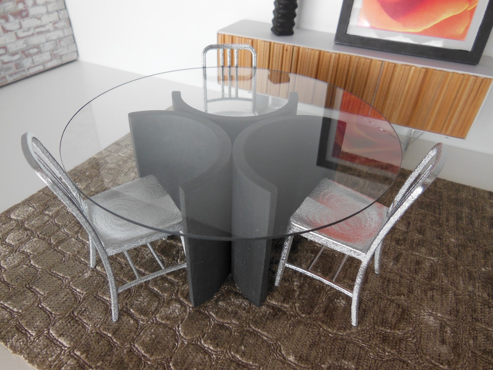 The Lotus dining table features a curved leg base arranged in a symmetrical pattern. This makes for an elegant dining table. Pairs well with our Wishbone chairs.