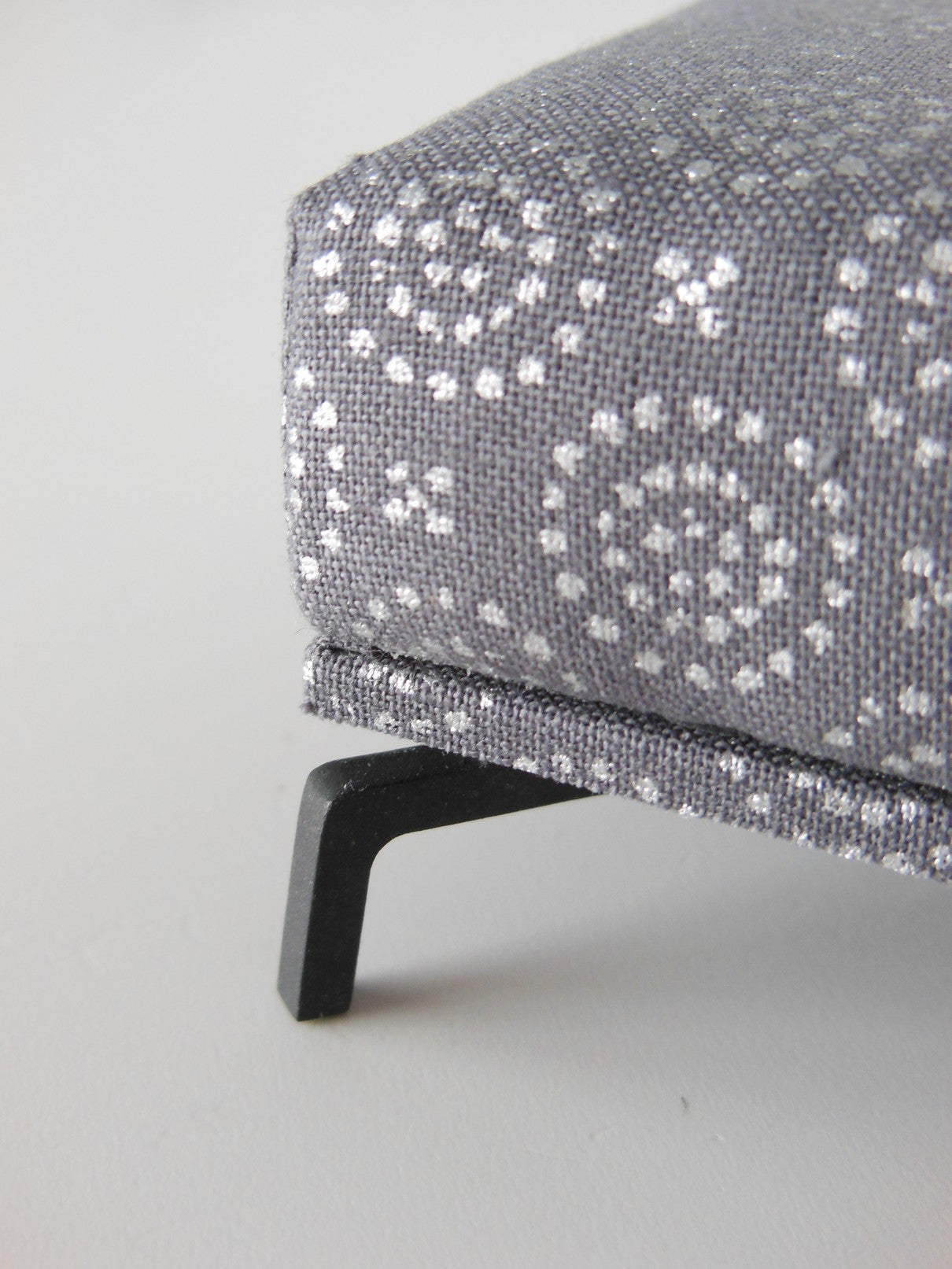 Inspired by the trendy boutique hotels, the Lusso ottoman creates a statement of its own. Use it as an ottoman or coffee table, or pair it with one of our Lusso sofas or chairs. It rests on 4 'J' legs in black (white is also available), giving it a sleek, floating appearance. We also make pillows of the same fabric so you can have a solid fabric on your sofa of choice but have pillows that coincide with the ottoman fabric.