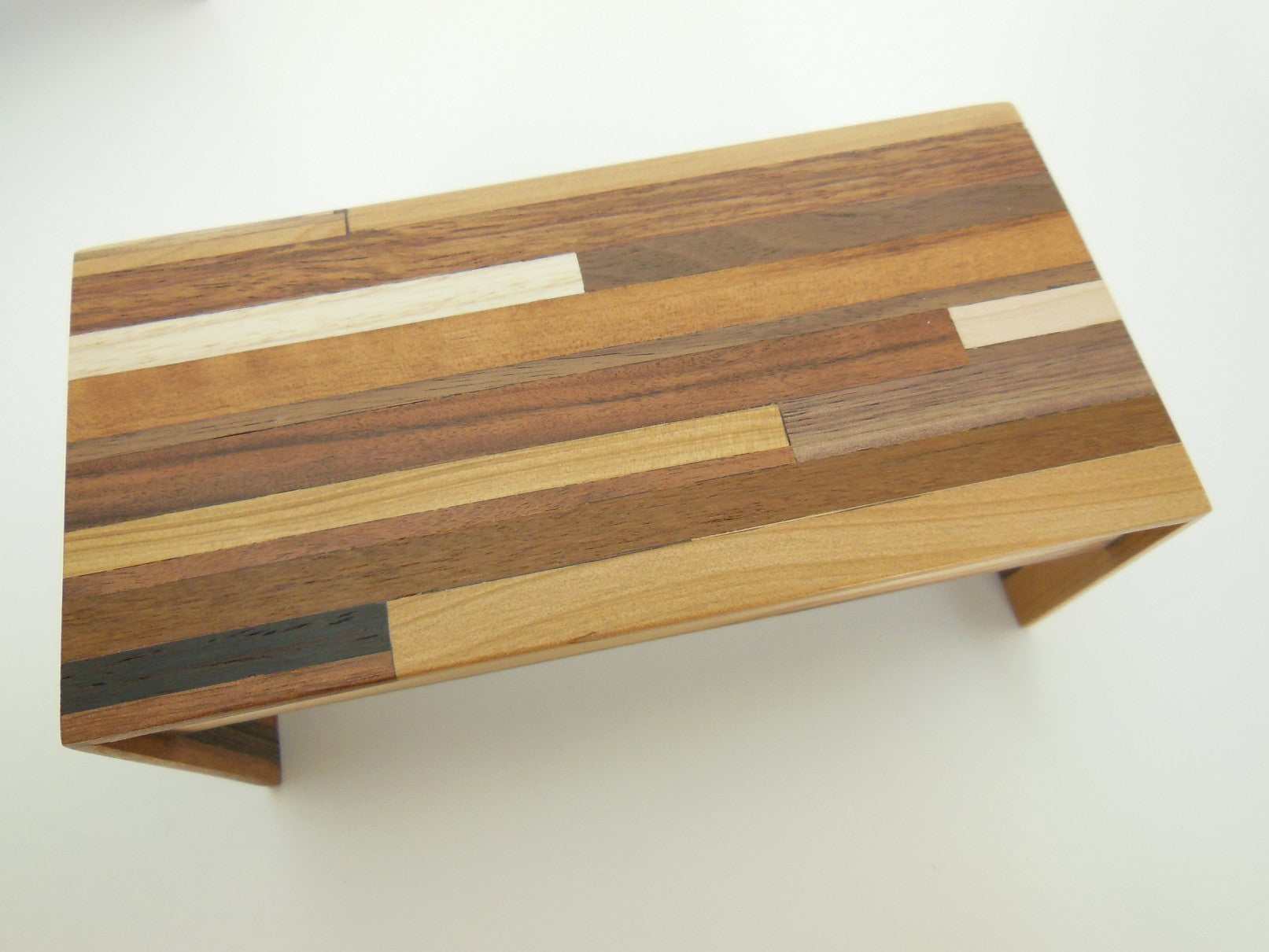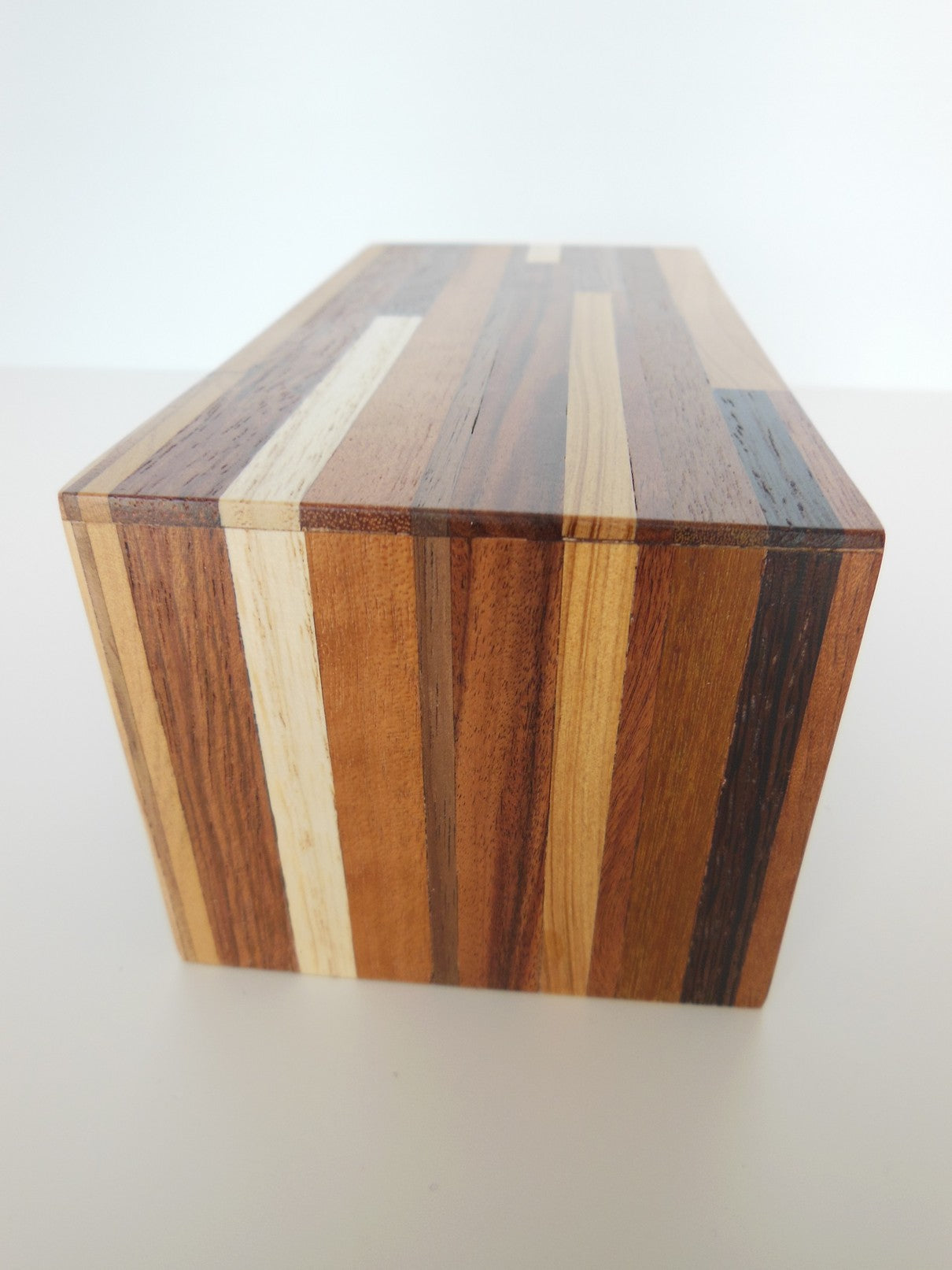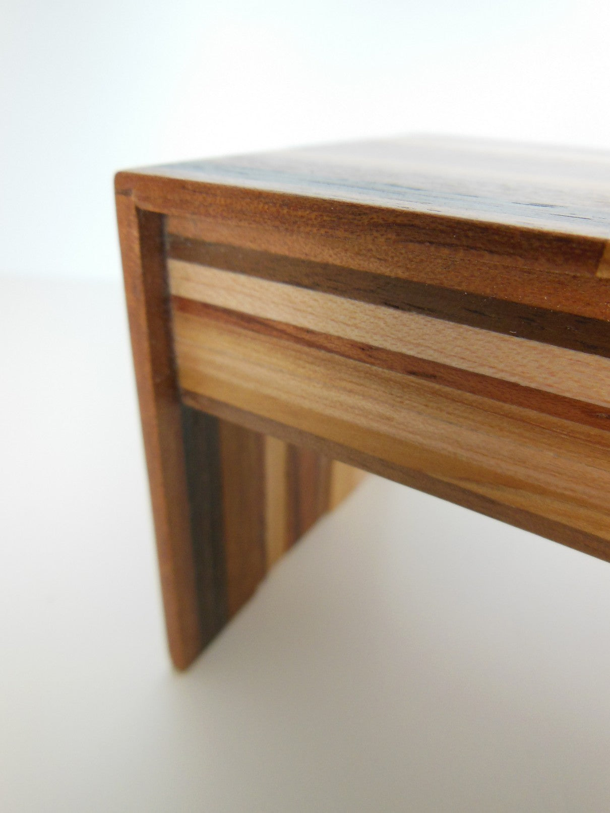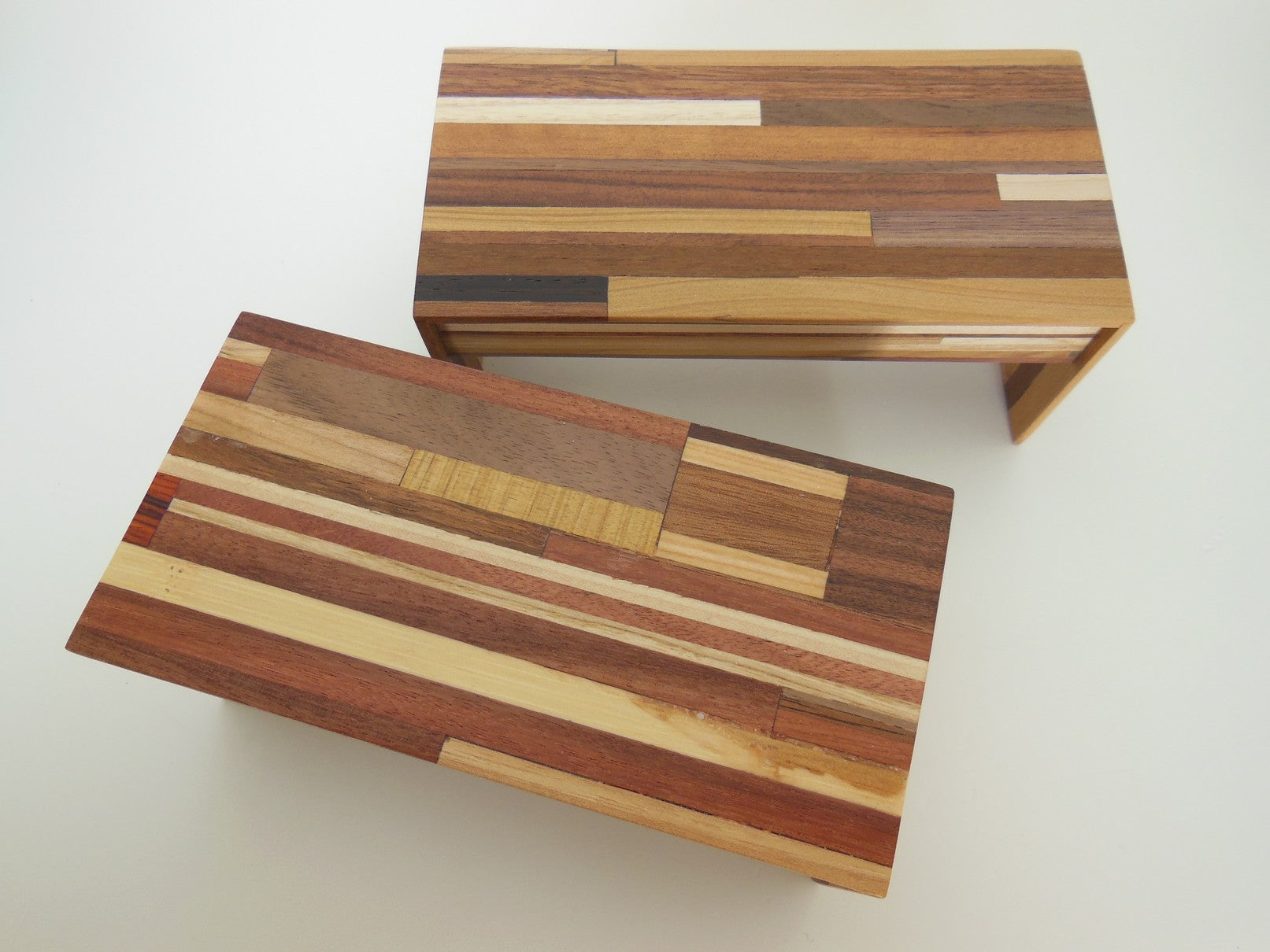 Part of the signature M.U.T.T. (Made Using Tossed Trimmings) line, thisDeskin a classic waterfall style is made of an assortment of scrap woods laminated together to create a recycled urban look. Each piece will vary.