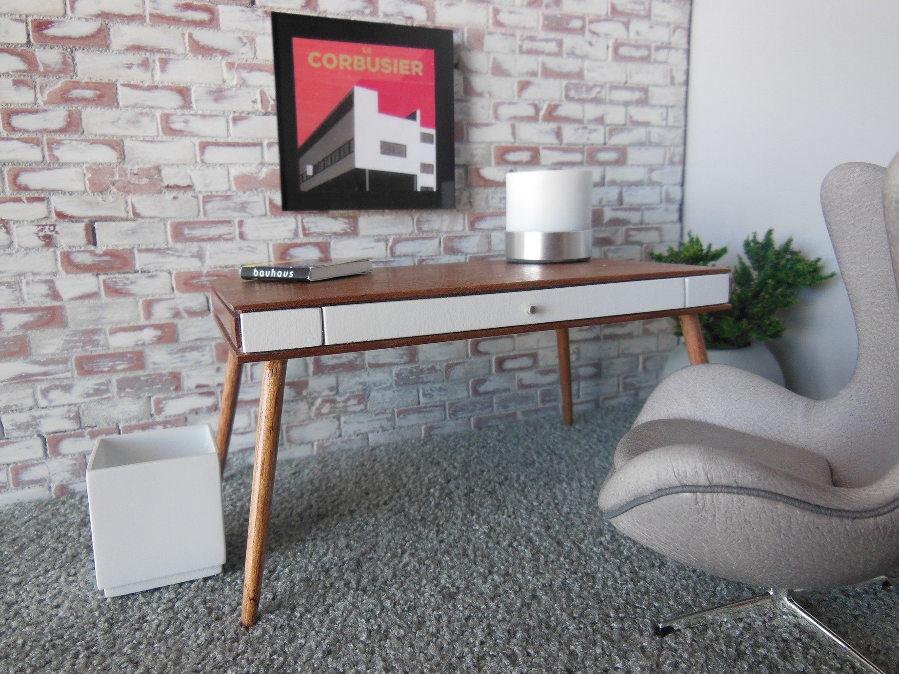 The Martin Desk has all the clean and distinct lines of the mid-century modern era. Made of jatoba wood and painted white drawer fronts. (NOTE: Drawer does not open. Inquire about opening parts or custom colors. Typically we charge $20 per drawer on top of cabinet price for opening parts.)