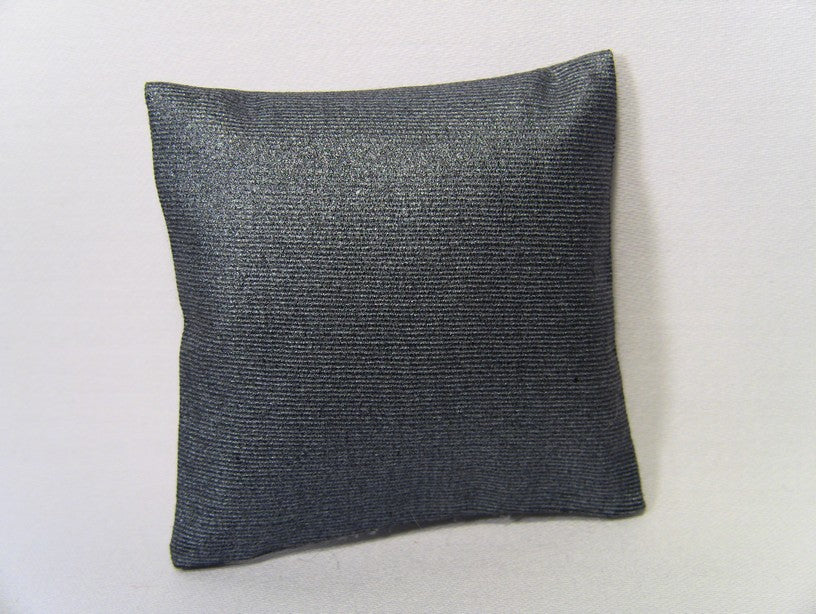 The Metallic Blue Large Square Pillow is constructed of a metallic blue fabric.