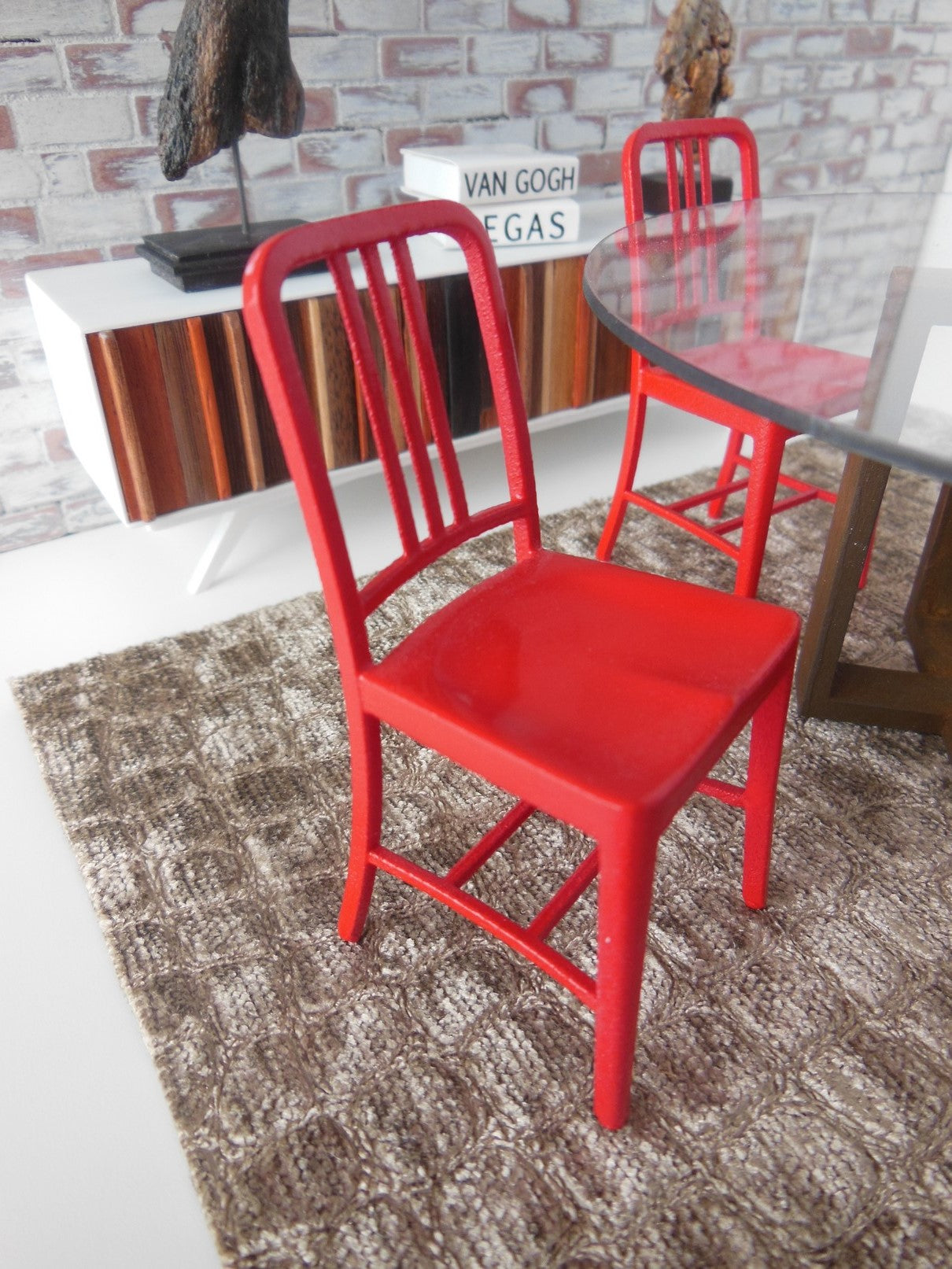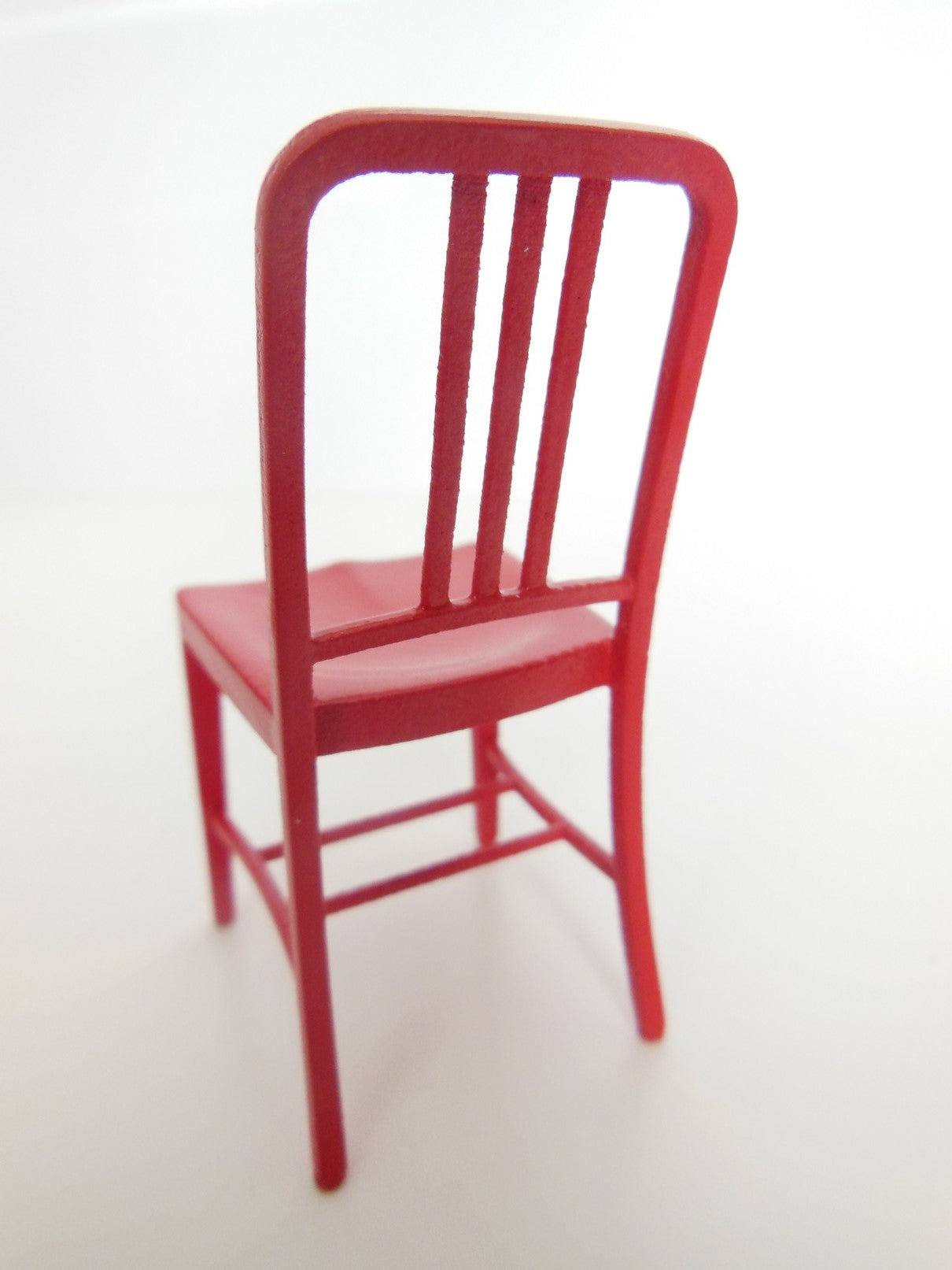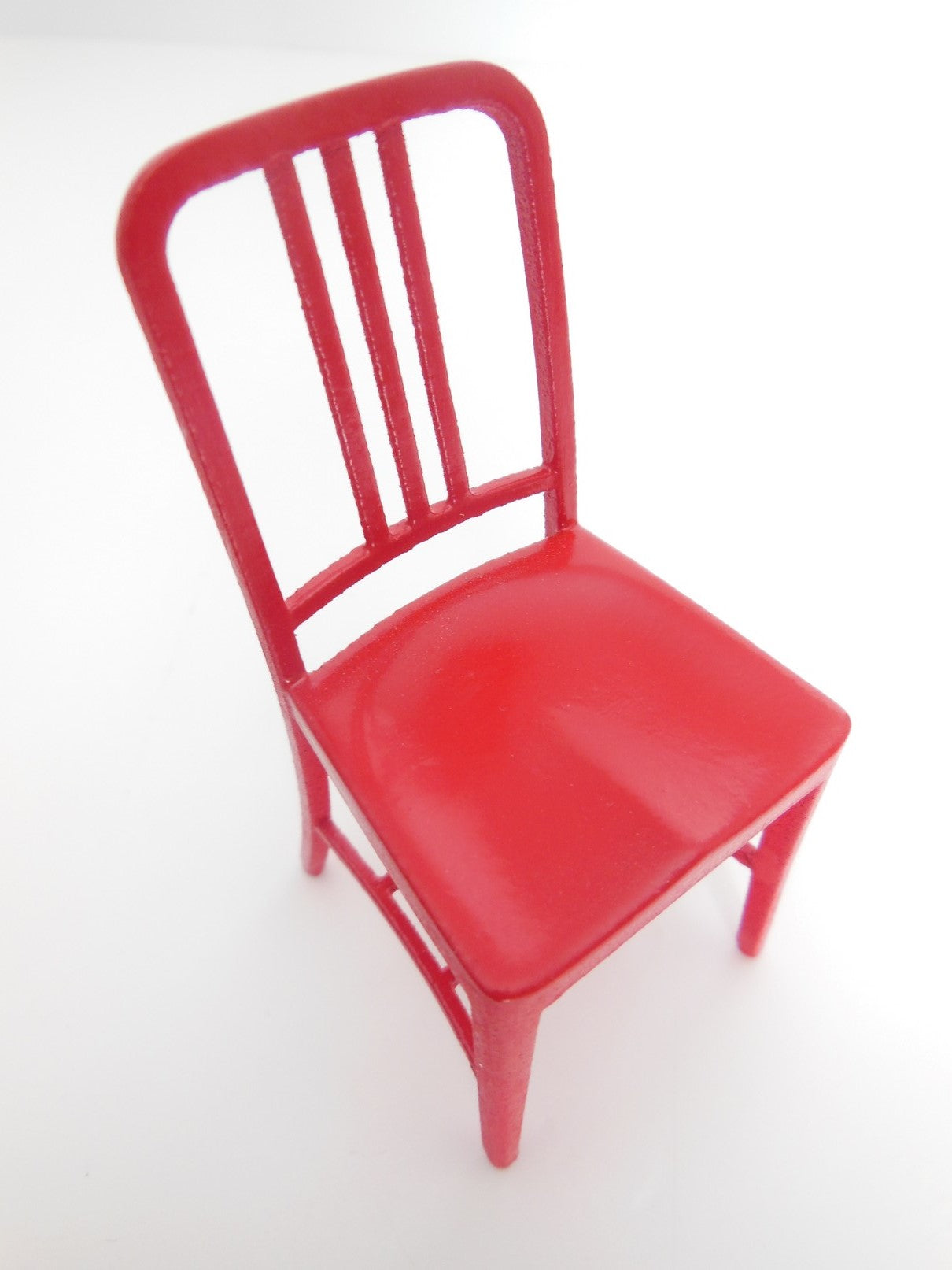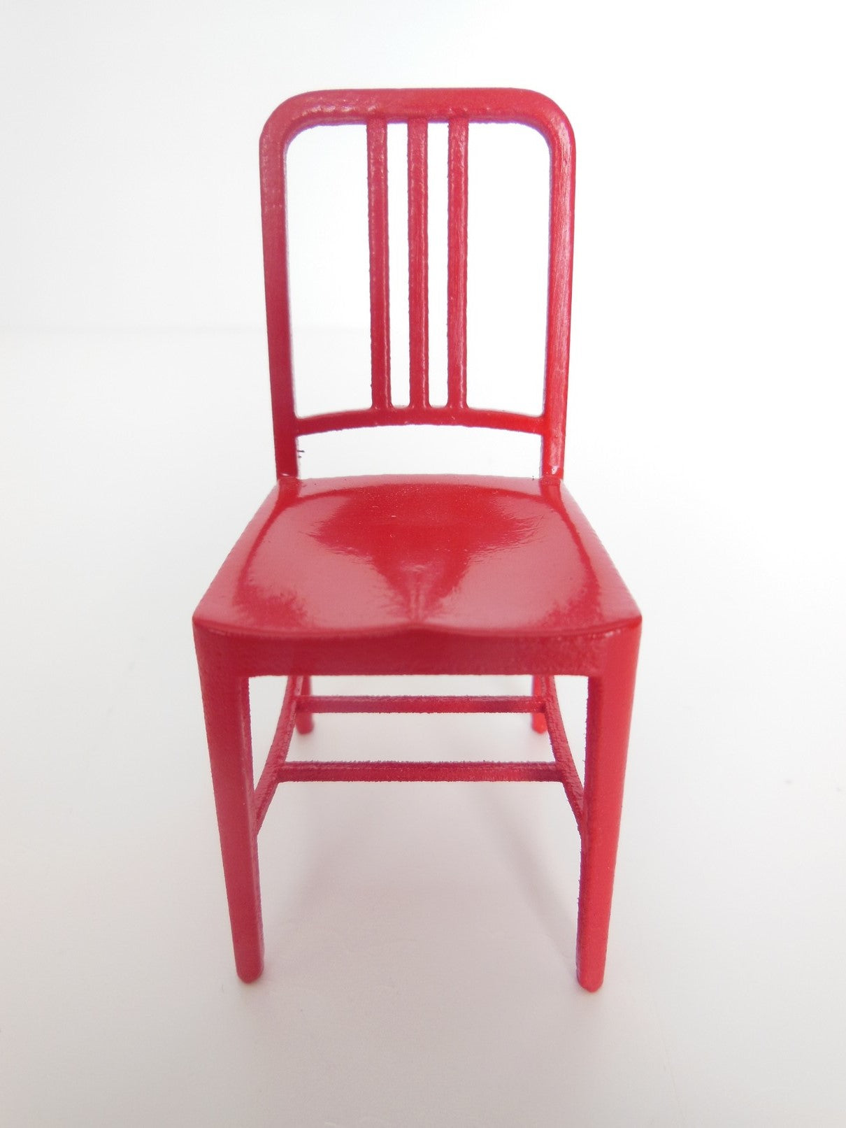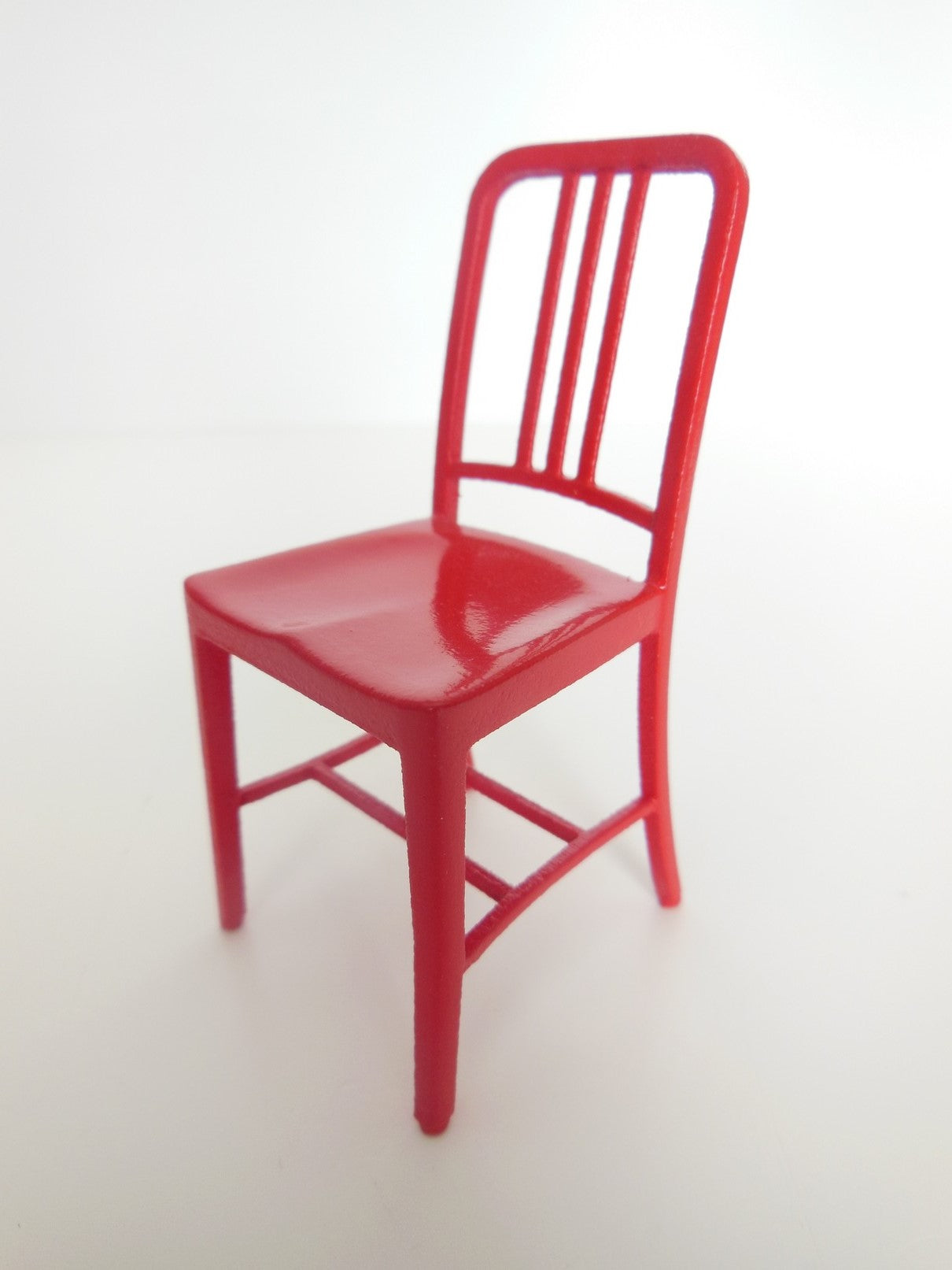 The classic Navy Chair was originally created in 1944 for the US Navy as a lightweight, non-corrosive, fire resistant and super strong chair for ships and submarines. Painted in bright red this will add a pop of color to your dining or living space.