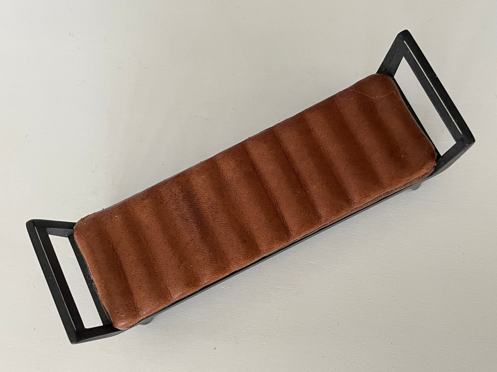 Our Noah Bench is a versatile piece that can fit into any décor from classic/traditional to modern/contemporary to mid-century/farmhouse. Ribbed cushion is finished in a tan leather with brown piping detail and a black frame.