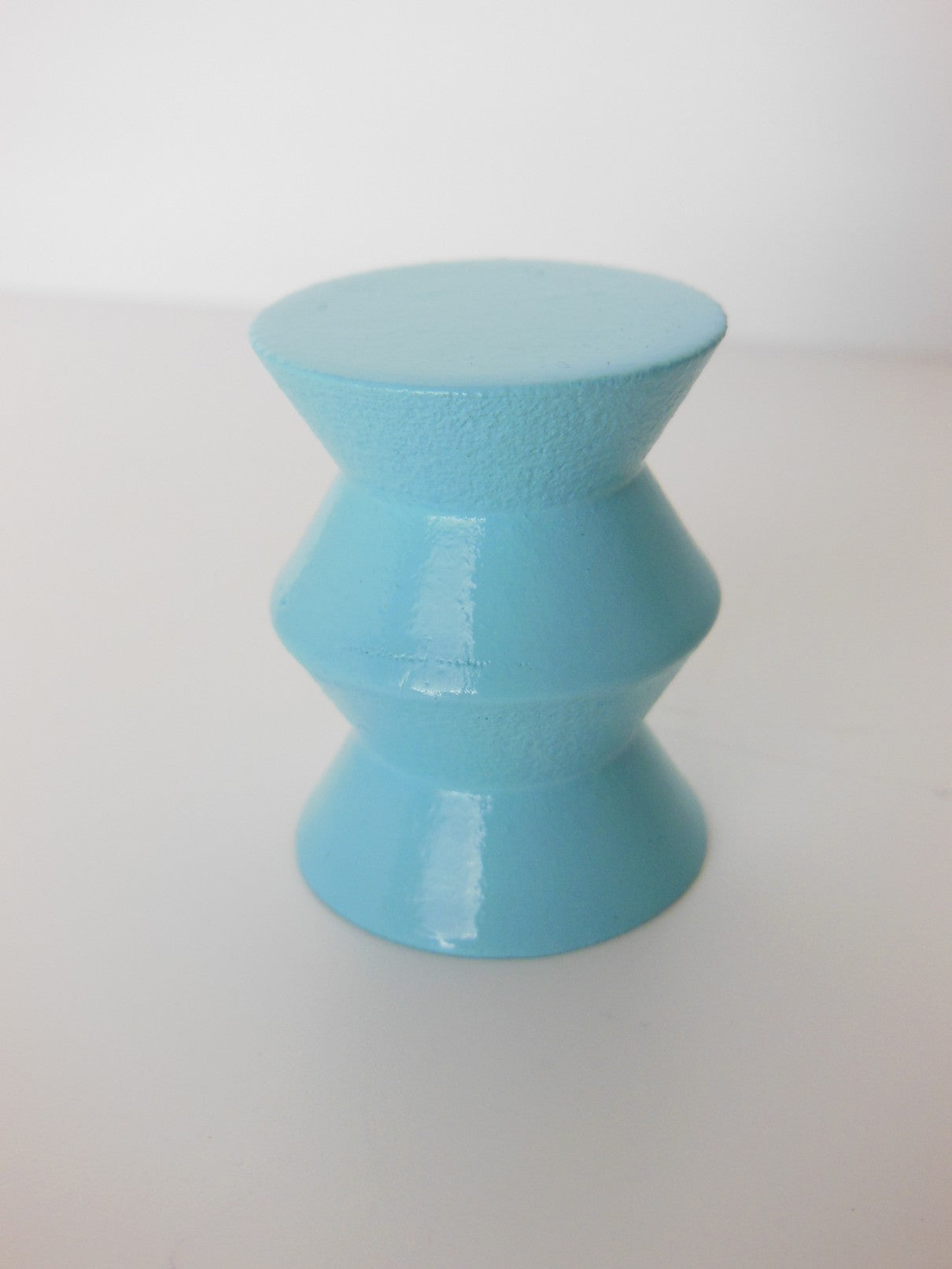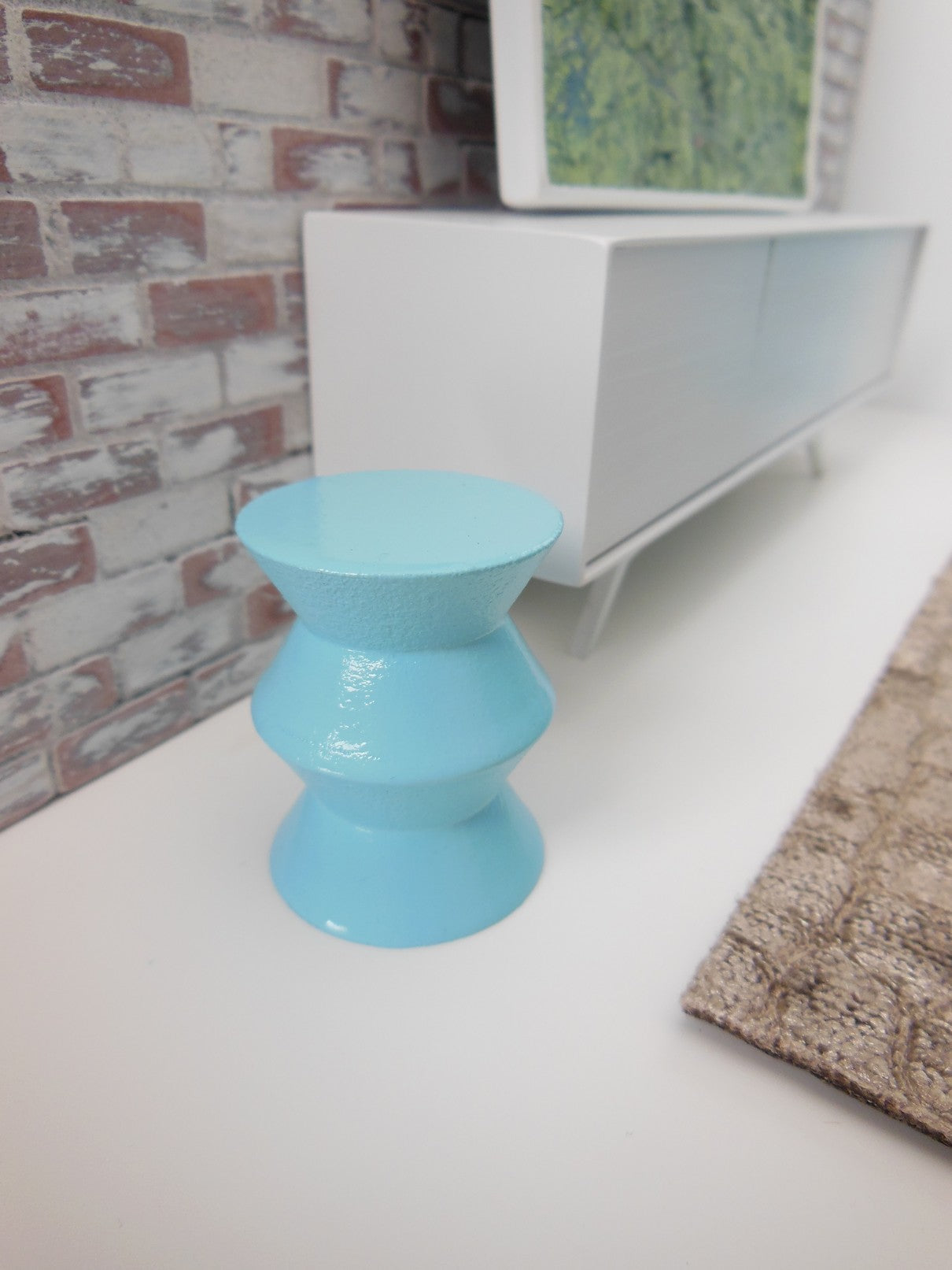 The Nova Stool is a great accent piece to any modern room for extra seating or as a side table. Finished in a light blue gloss paint.