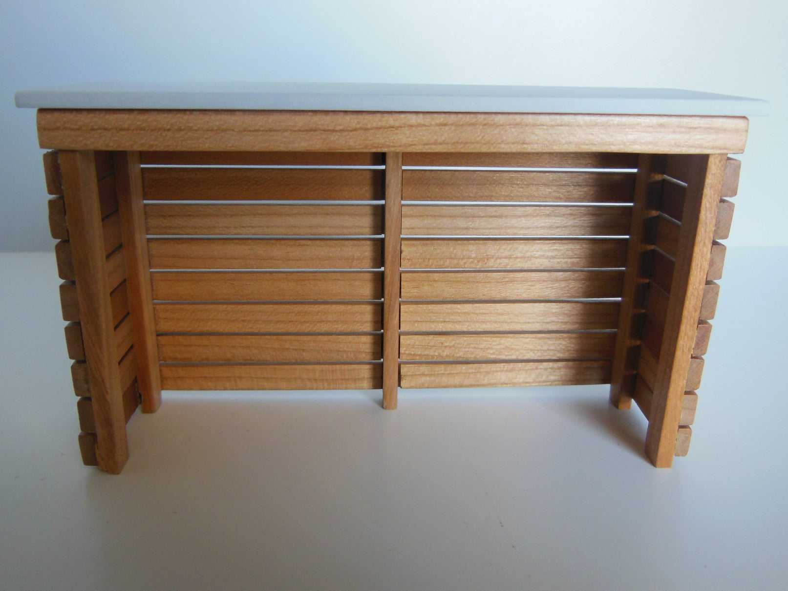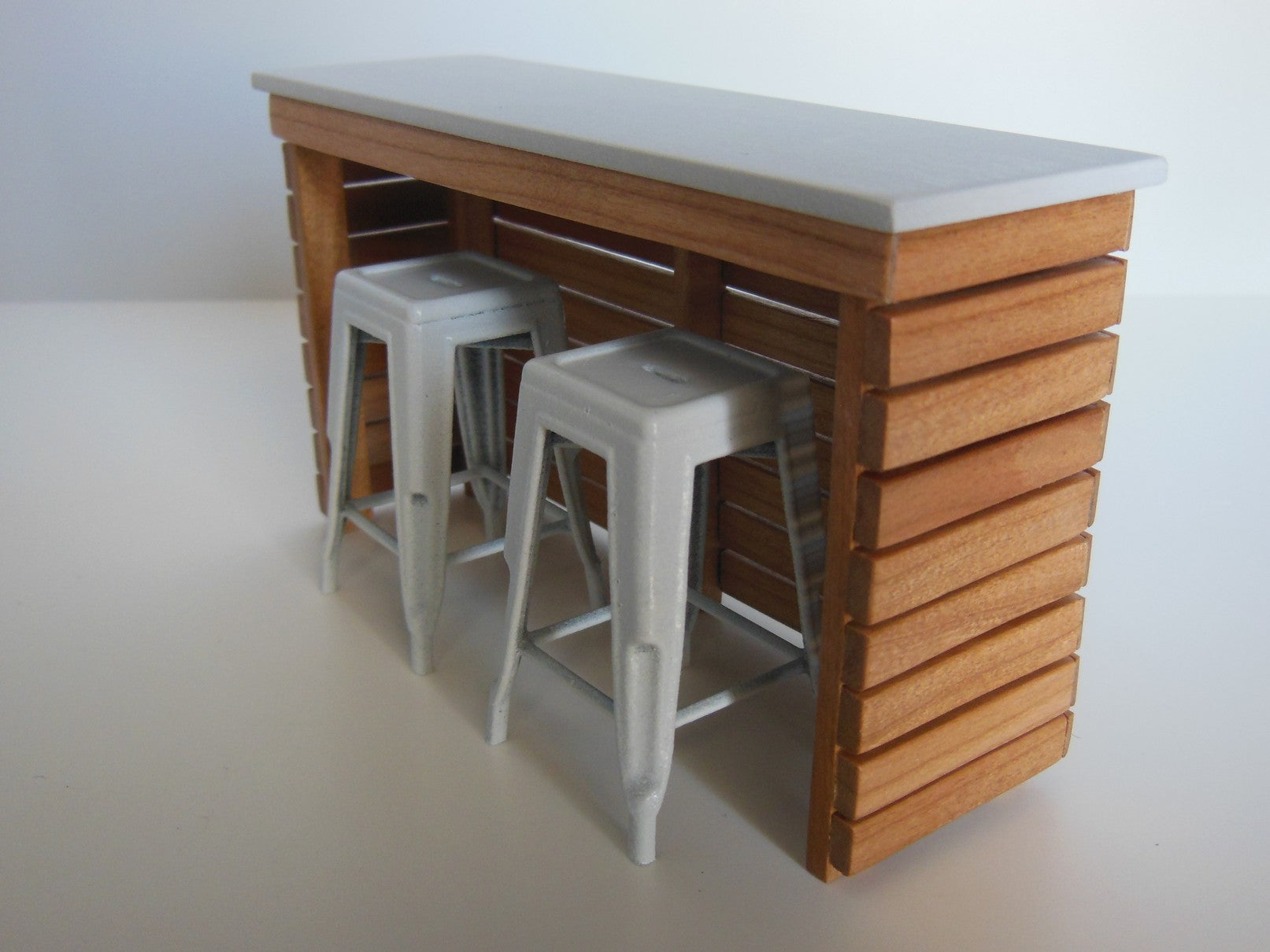 This bar is finished in solid cherry wood with a concrete finished top. Perfect for setting up in your outdoor space. (Stools not included.)
