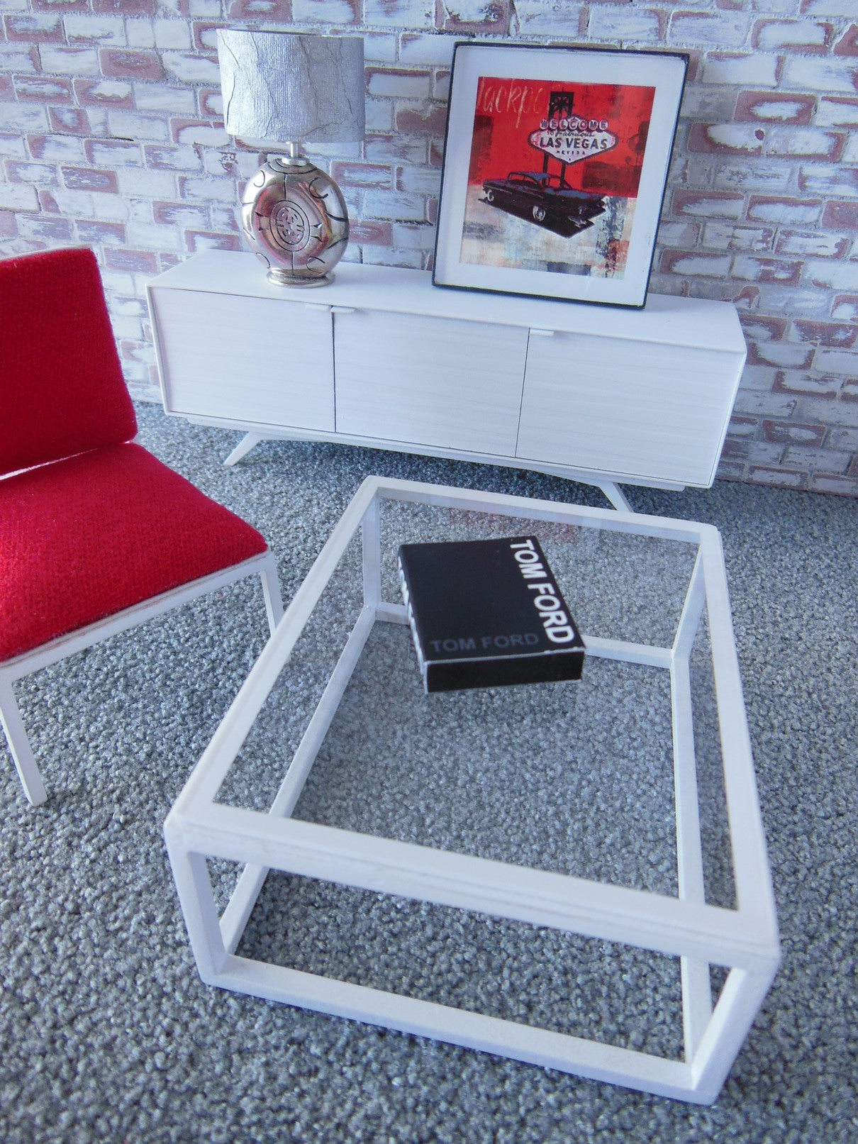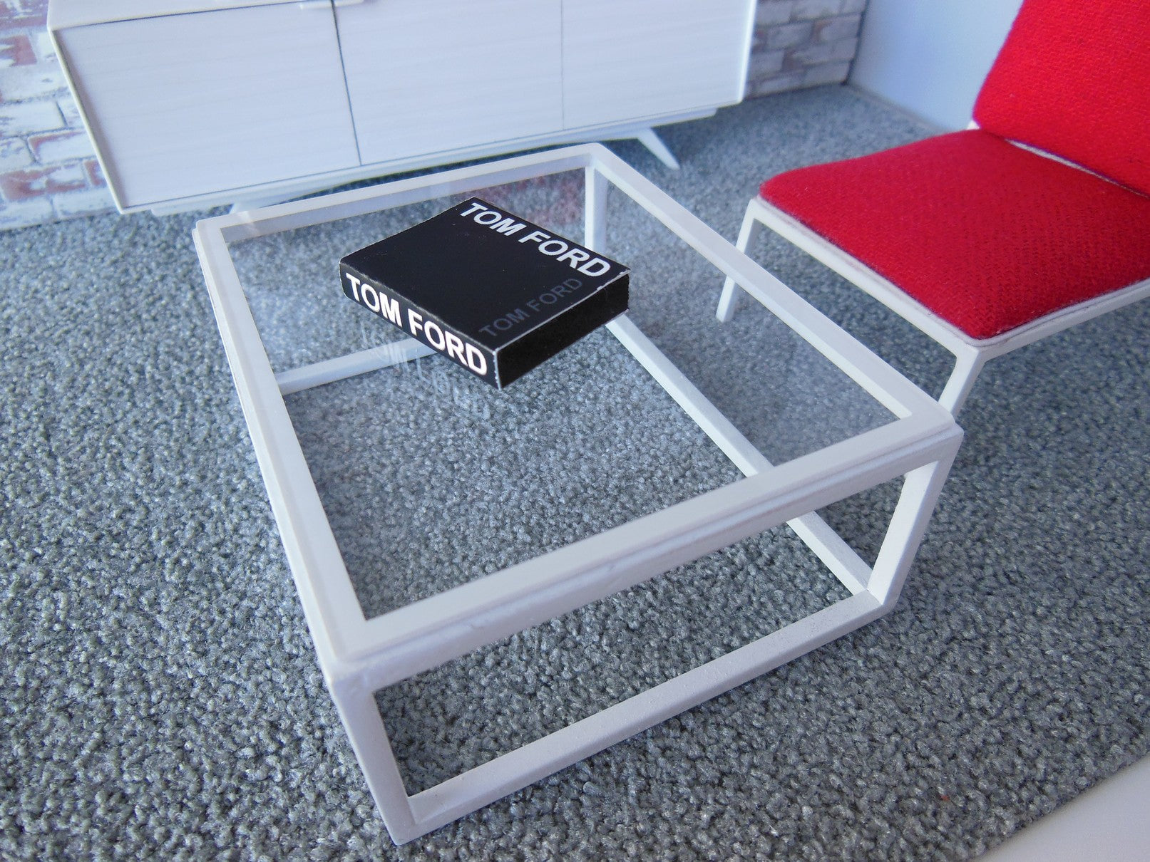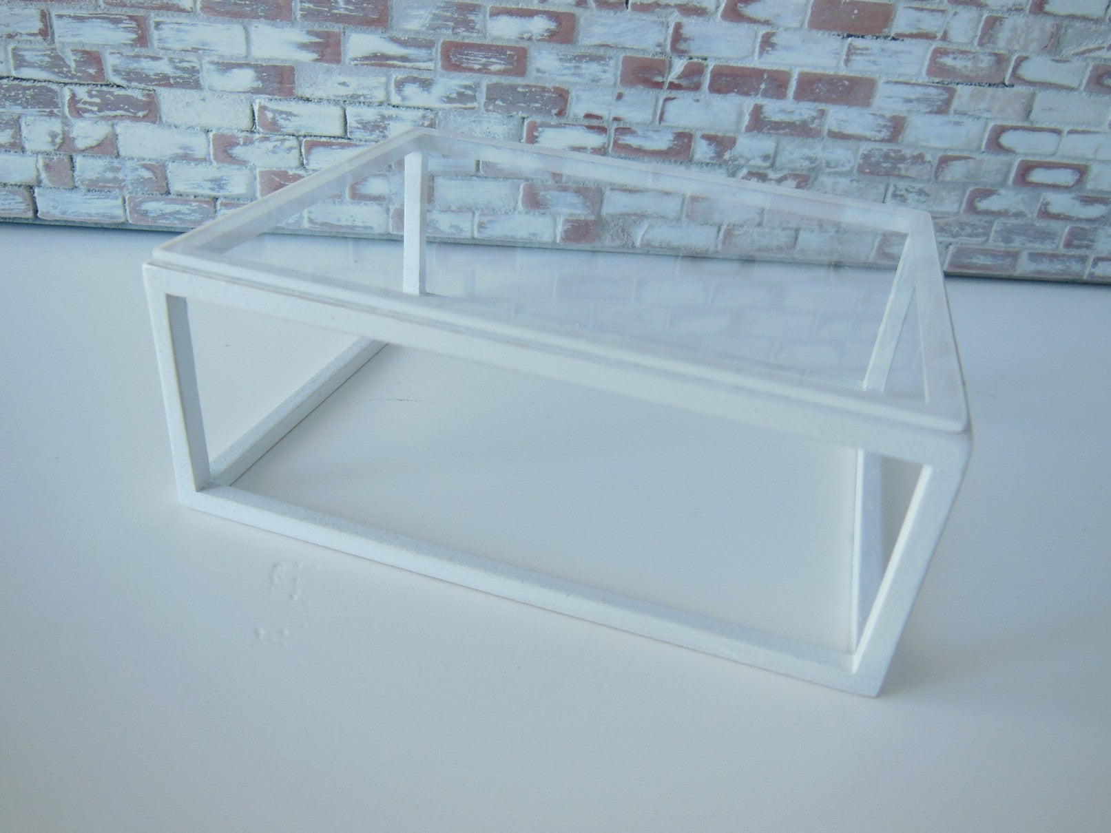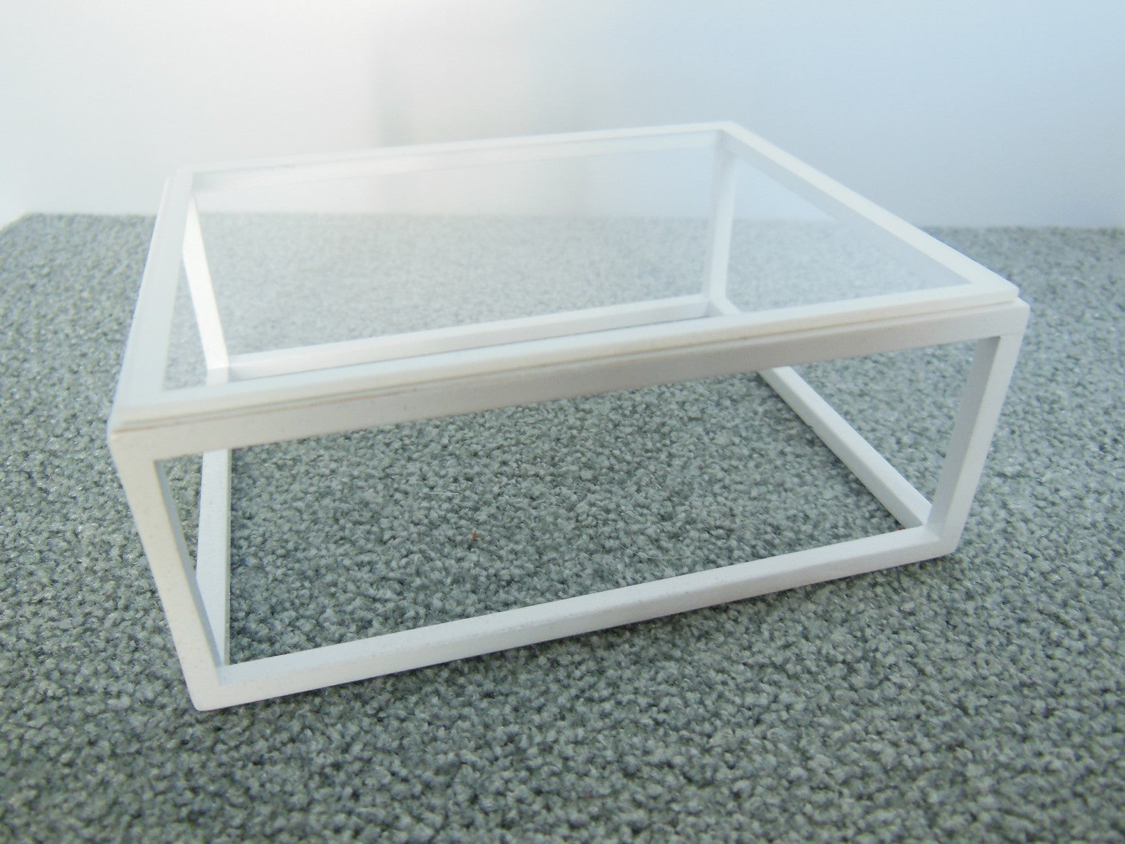 The classic Parsons Coffee Table has a white painted base with a clear acrylic top.