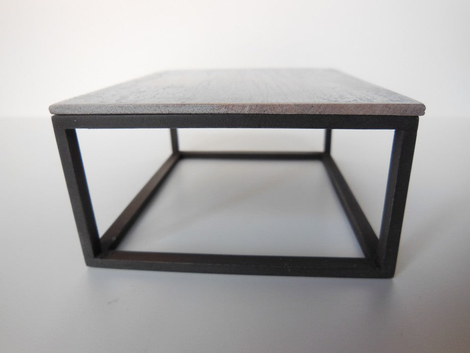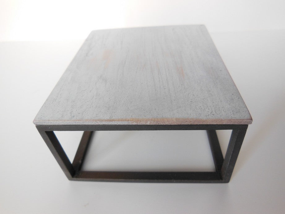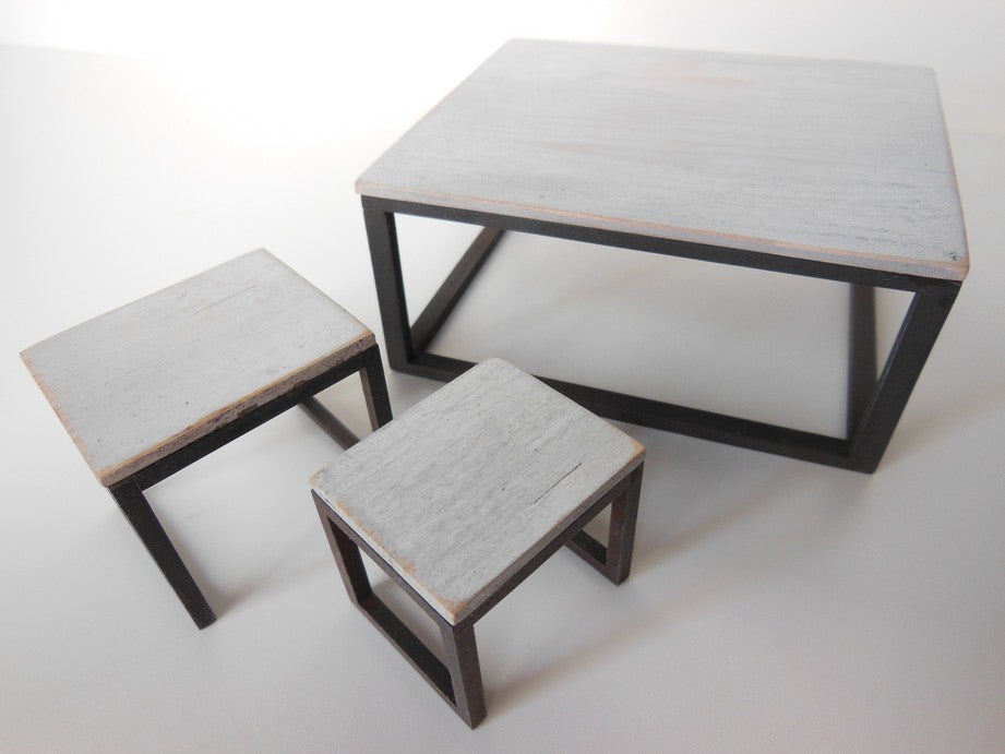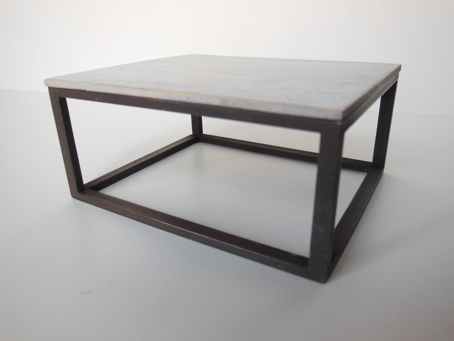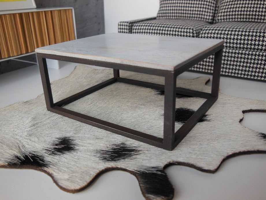 The classic Parsons Coffee Table has a black painted base that is finished to resemble black steel with a white wash wood table top.