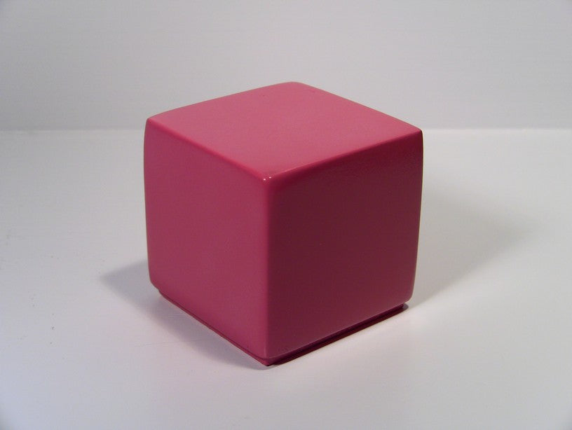 Solid wood cube with pink paint finish - perfect for a side table or extra seating.