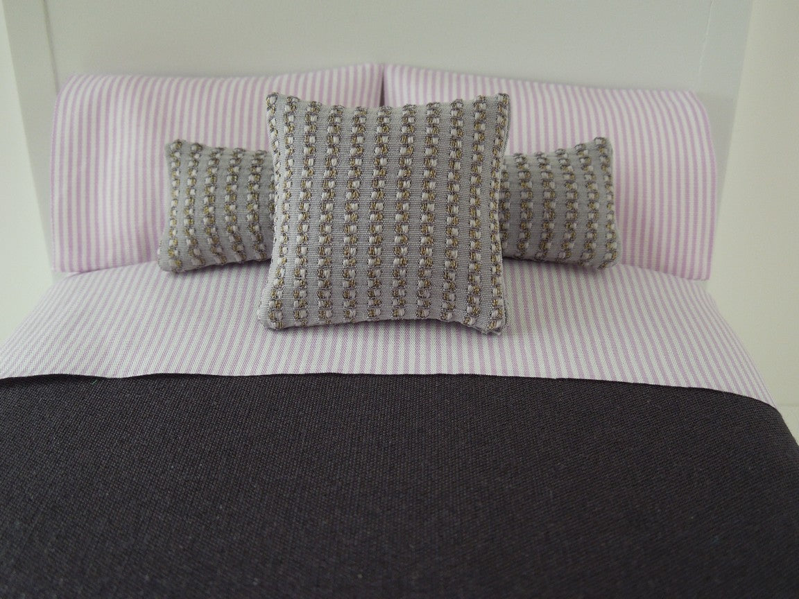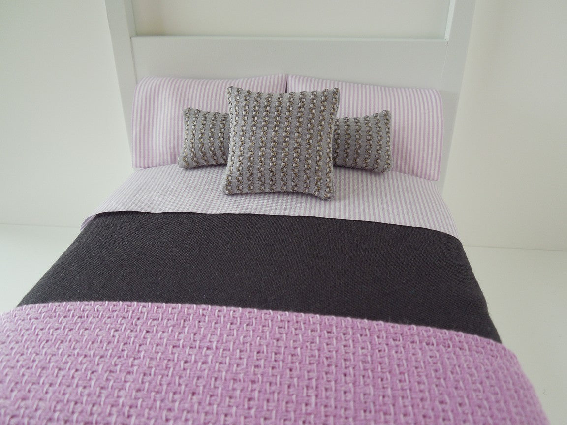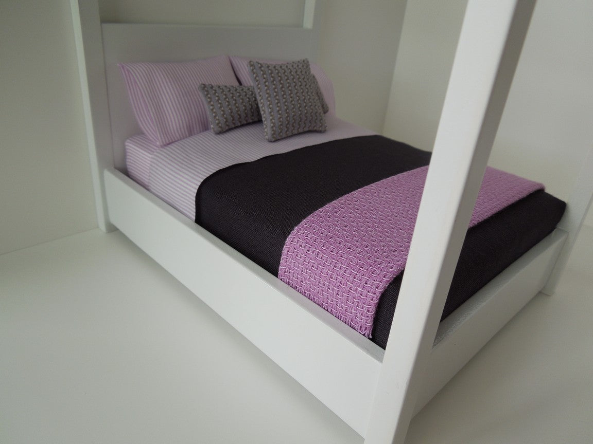 Our Poetic Collection includes our dark plum duvet, lavender stripe sheet set, one gold/lavender long bolster pillow, one gold/lavender medium rectangle pillow, and lilac weave throw. Mattress, standard pillows and bed frame sold separately.