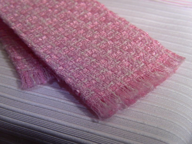 The Pretty in Pink Throw energizes your room with shades of pink and white in a large woven pattern.